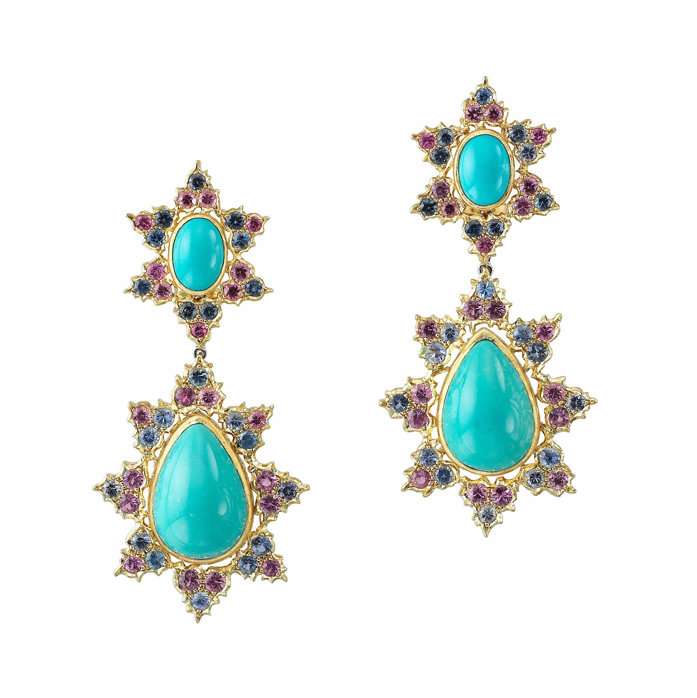 - 138 saphirs bleu ciel facettés ronds cté 14,38. 88 turquoises cts 209,45. 114 saphirs roses facettés ronds cté 20,25.