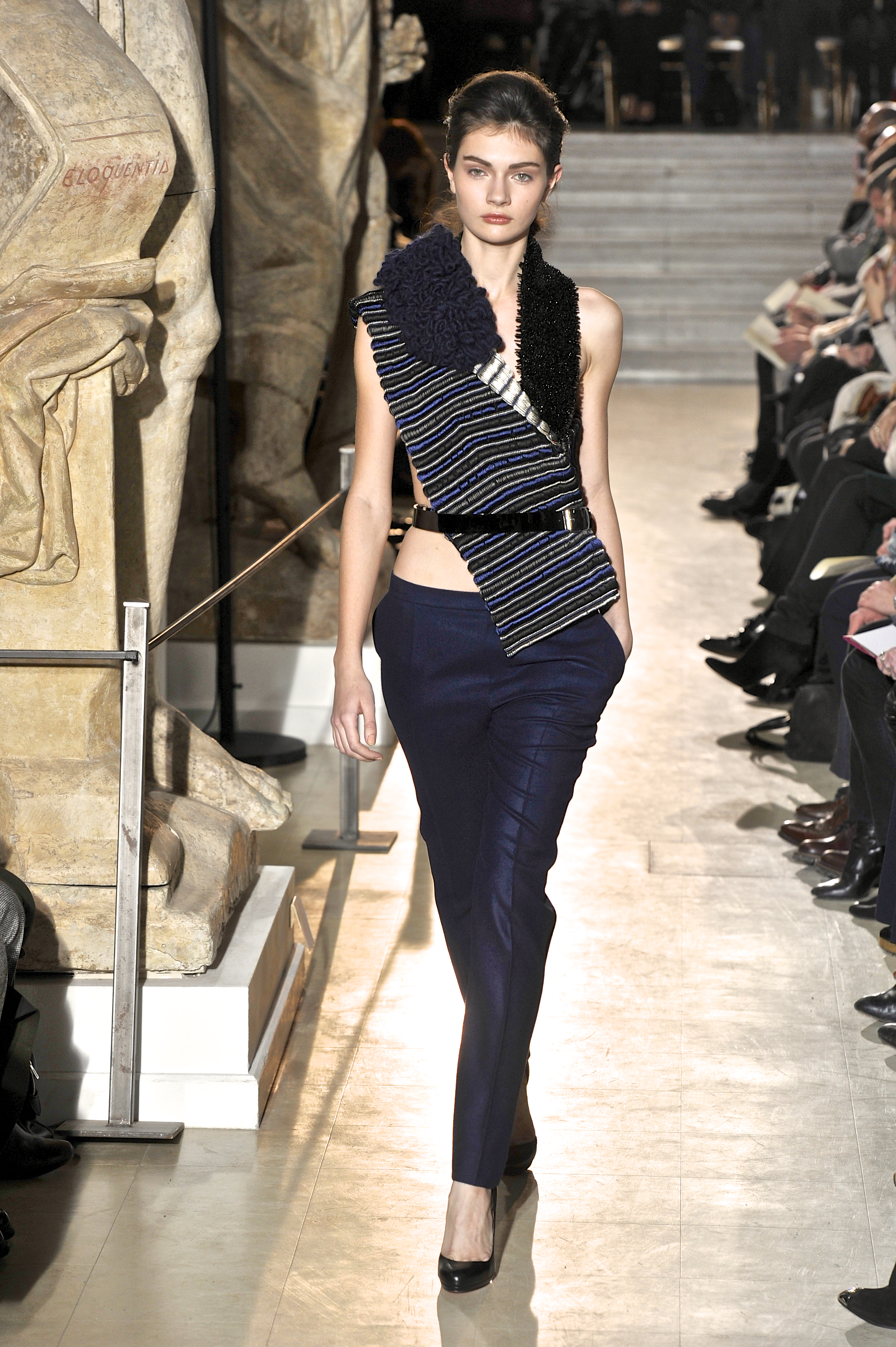 We imagine the Bouchra Jarrar woman in navy, with her little tomboy side and the striped patterns used with the aforementioned hues. The dresses are fluid, recalling the movement of the ocean.