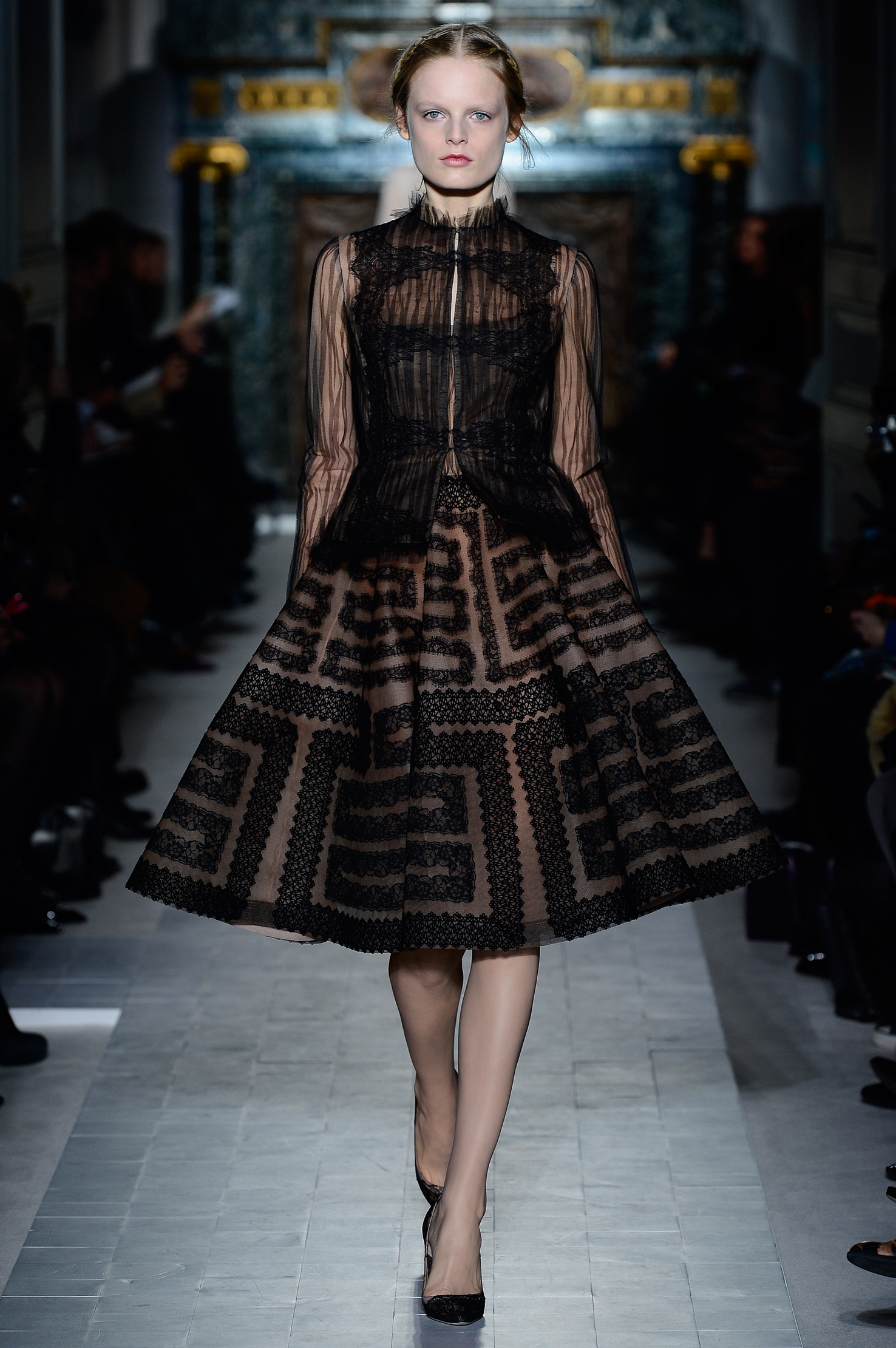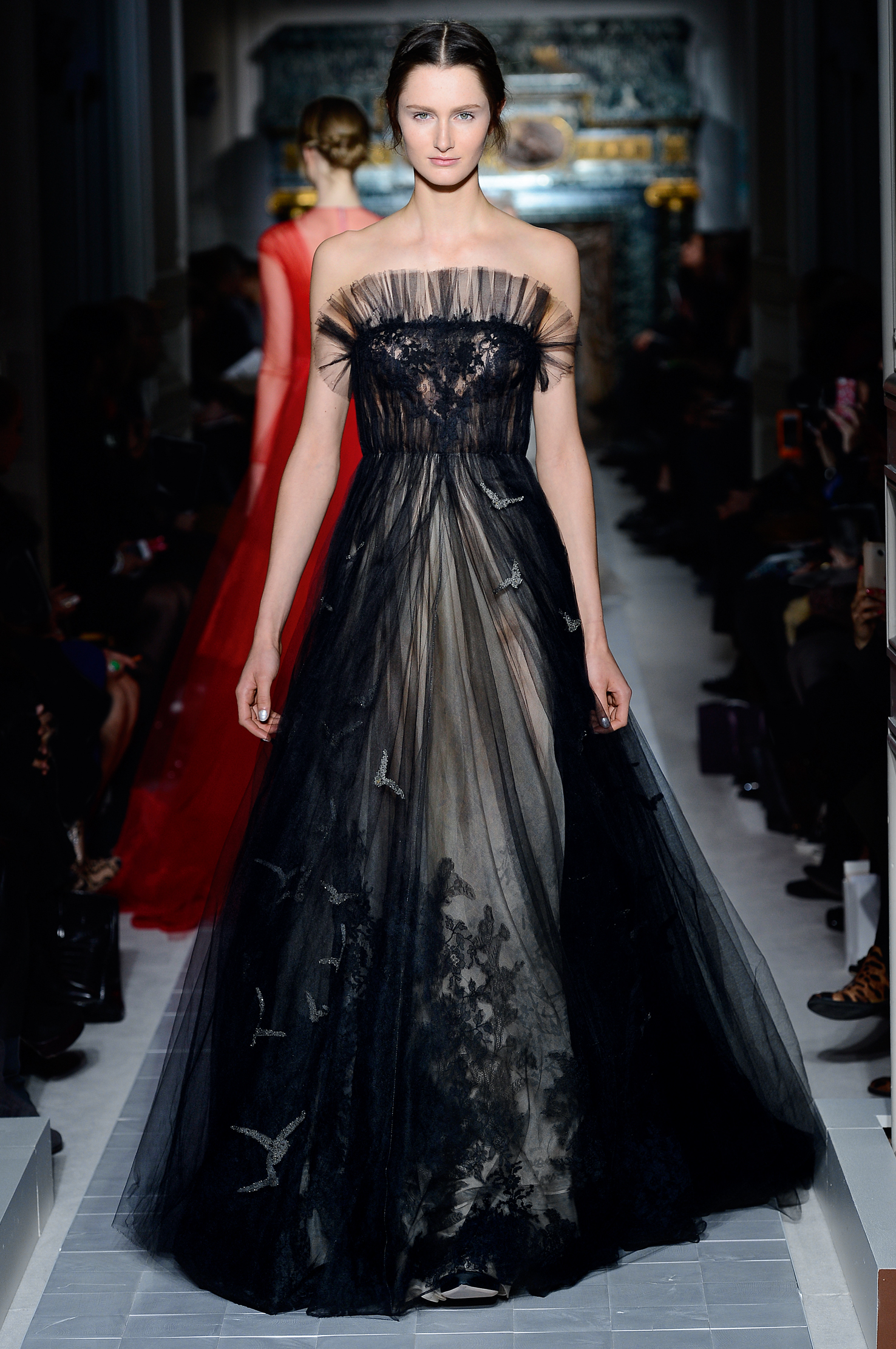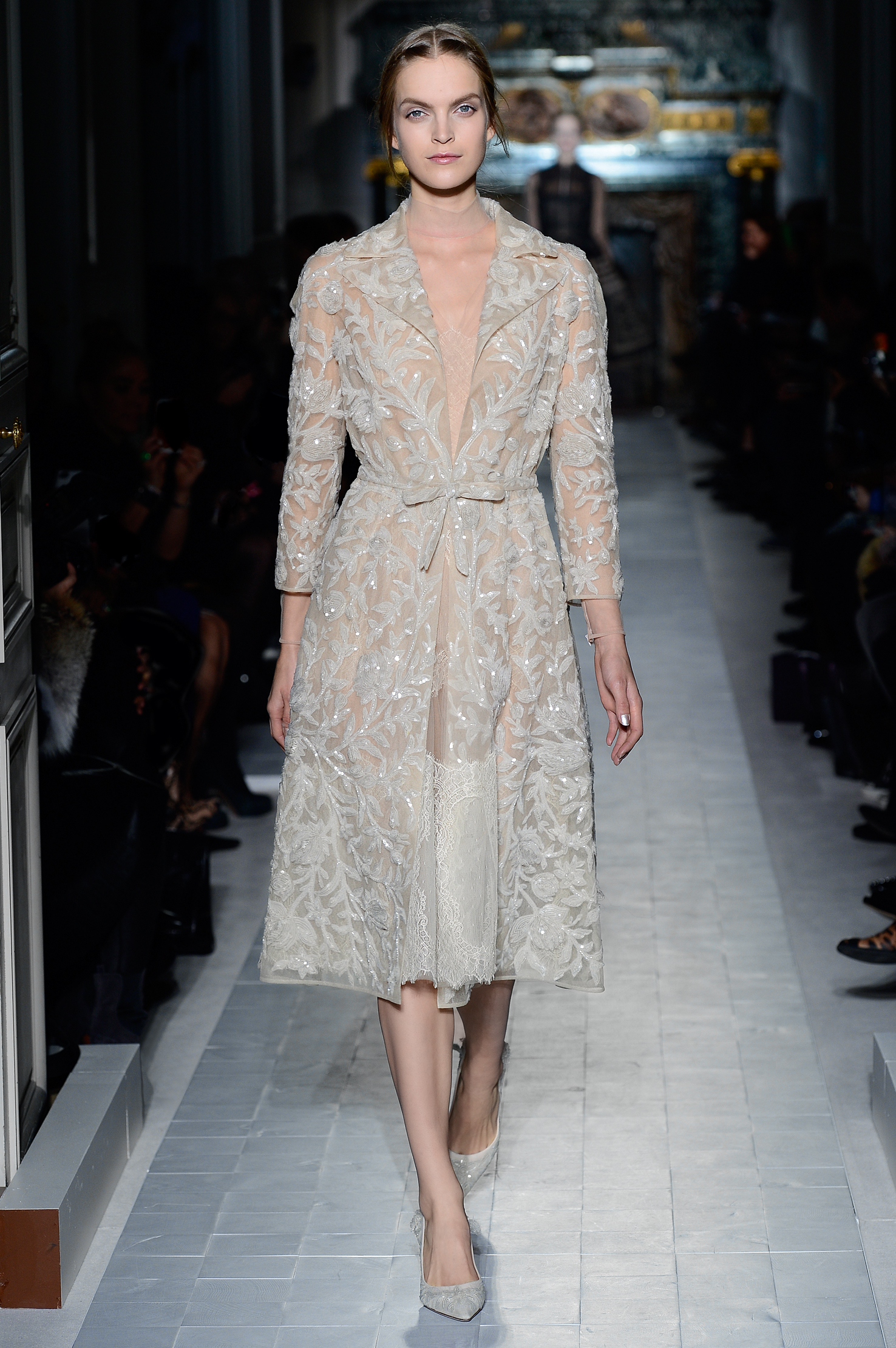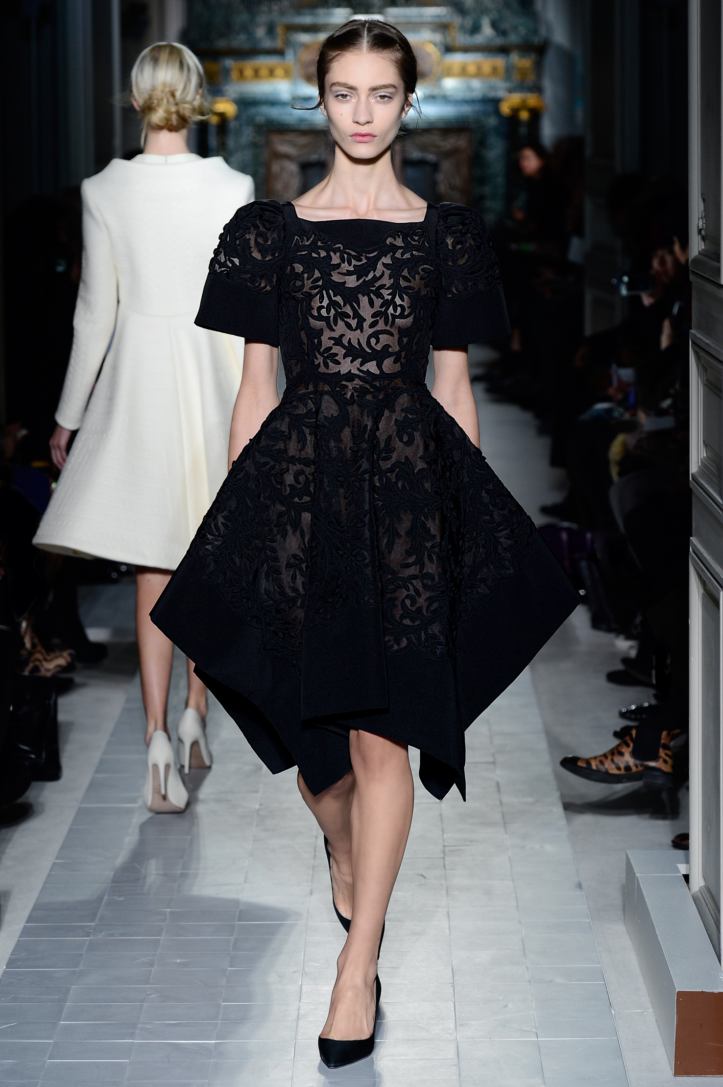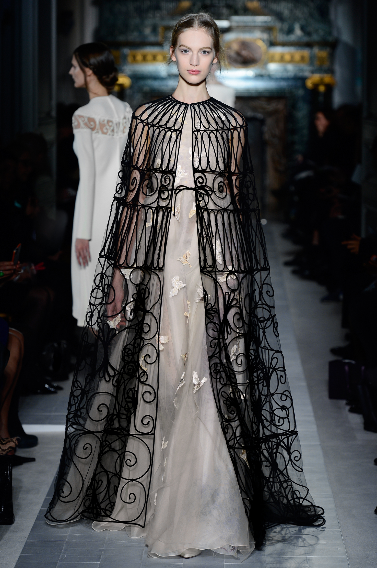 Précision, symétrie, tout dans l’univers de la couture chez Valentino est précis et millimétré. Les transparences sont au rendez-vous mais ne dévoilent jamais rien, c’est aussi ça le chic à l’italienne.