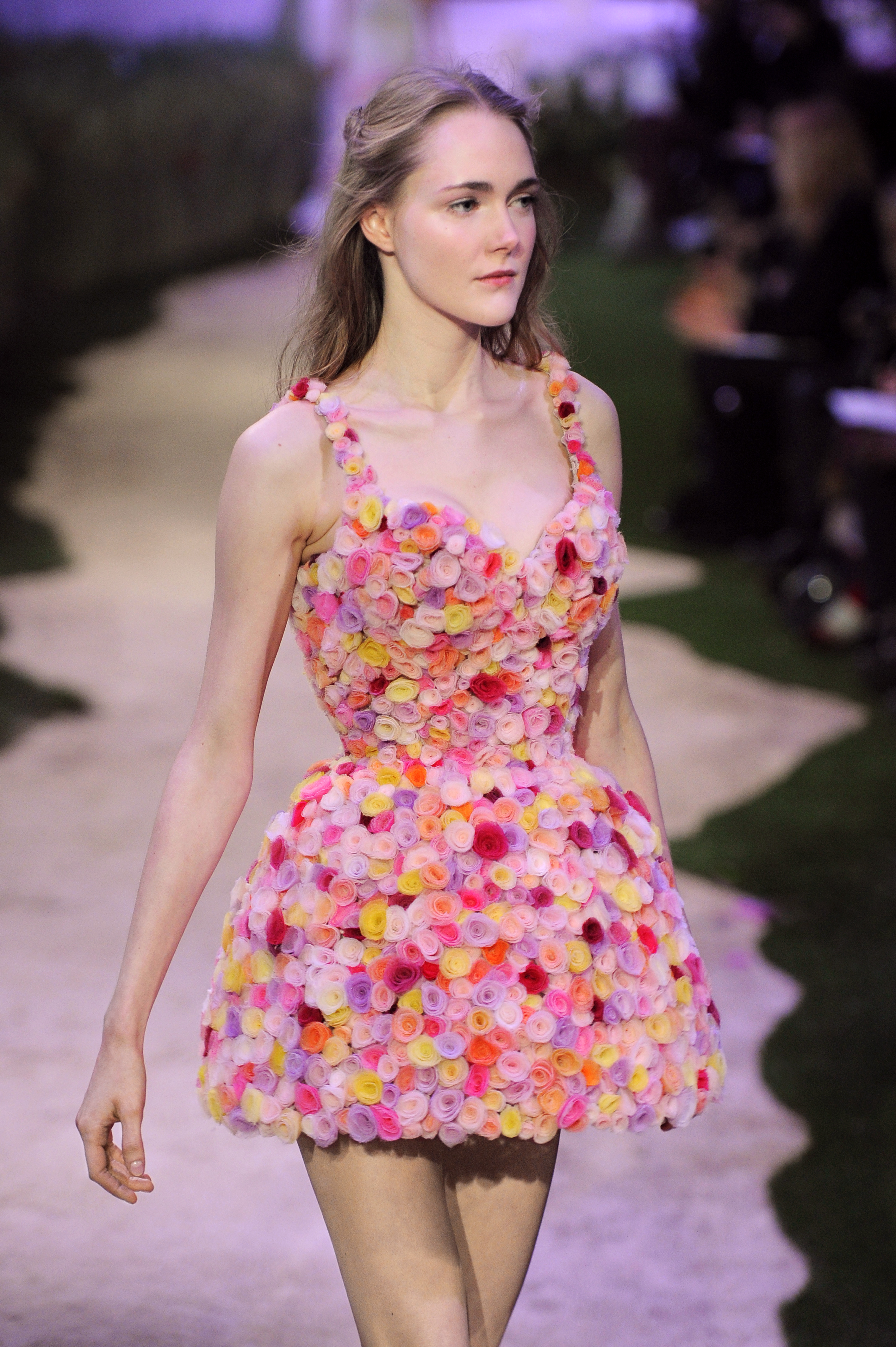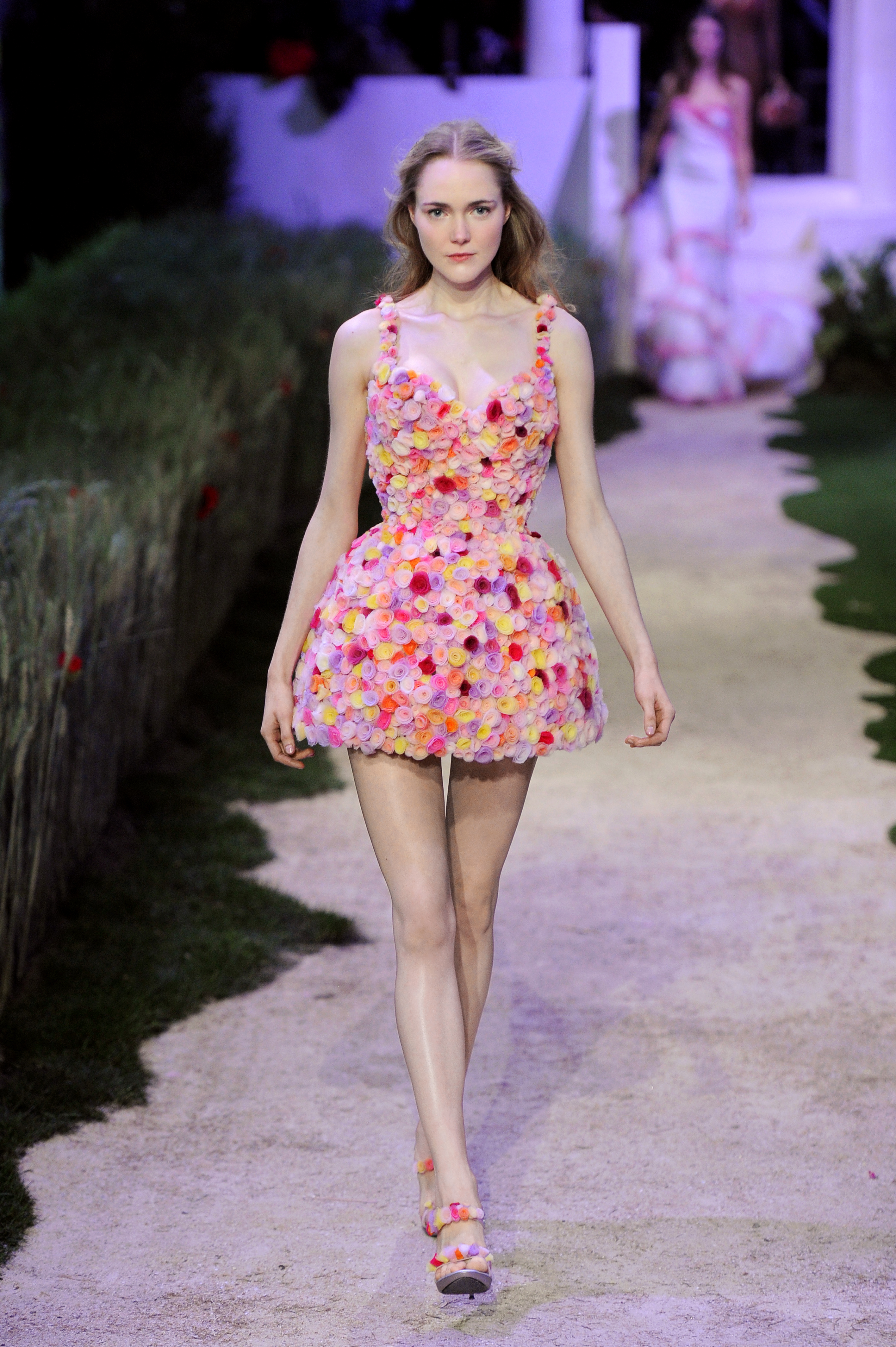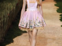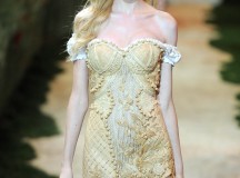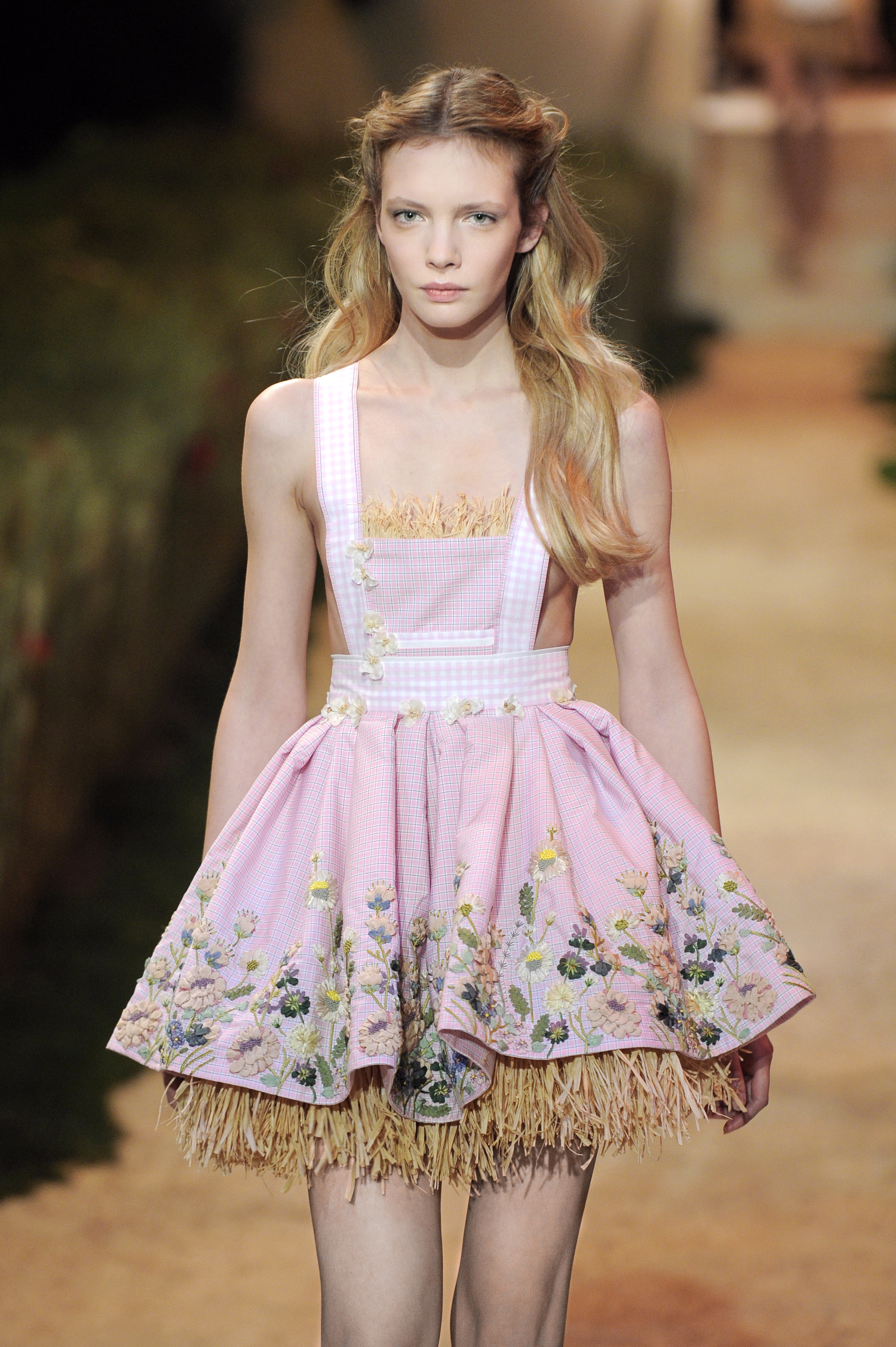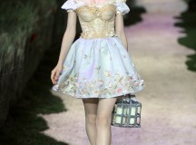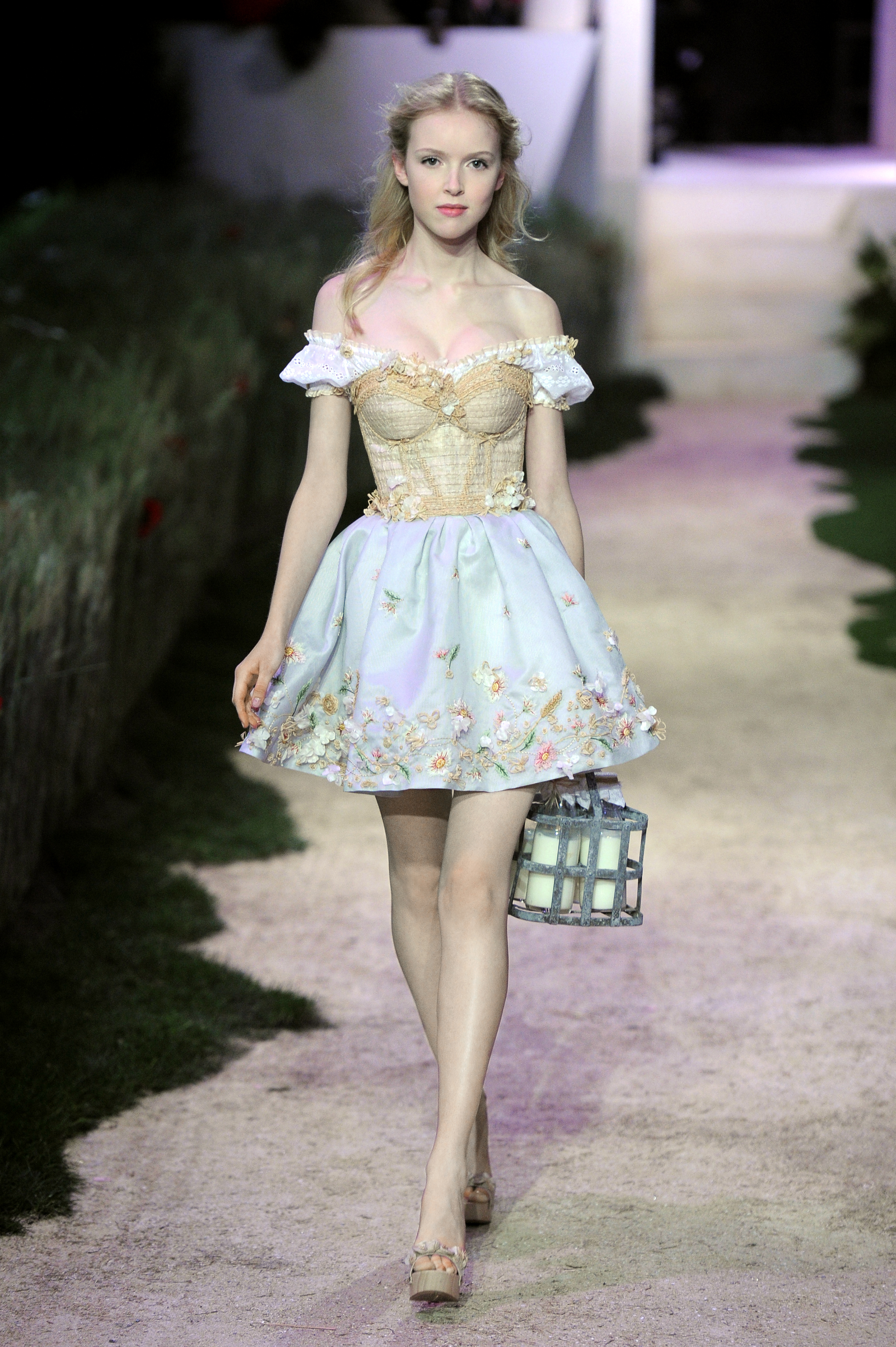 20 modèles pour 20 héroïnes d’un conte de fée, plus le final porté par Zahia Dehar, expriment la fraîcheur et la magie d’un été éphémère. La collection est construite autour d’effets de matières, d’exploits de construction, de centaines d’heures de broderies. Le tout sublimé d’un jeu de teintures dont les variations délicates provoquent des effets en trompe l’oeil…