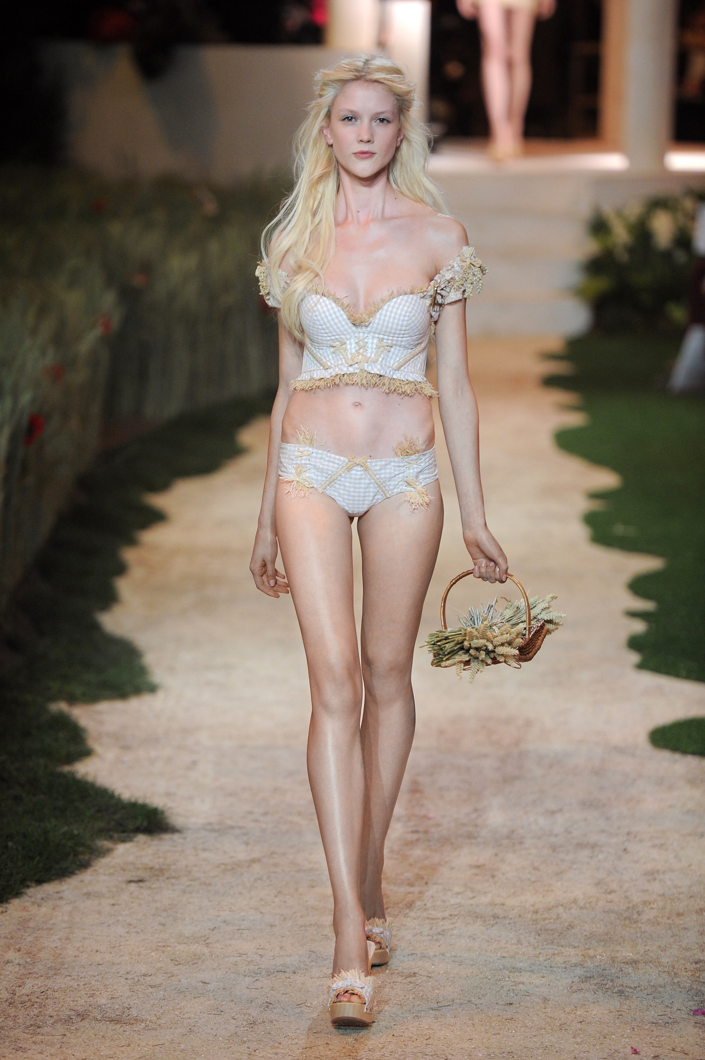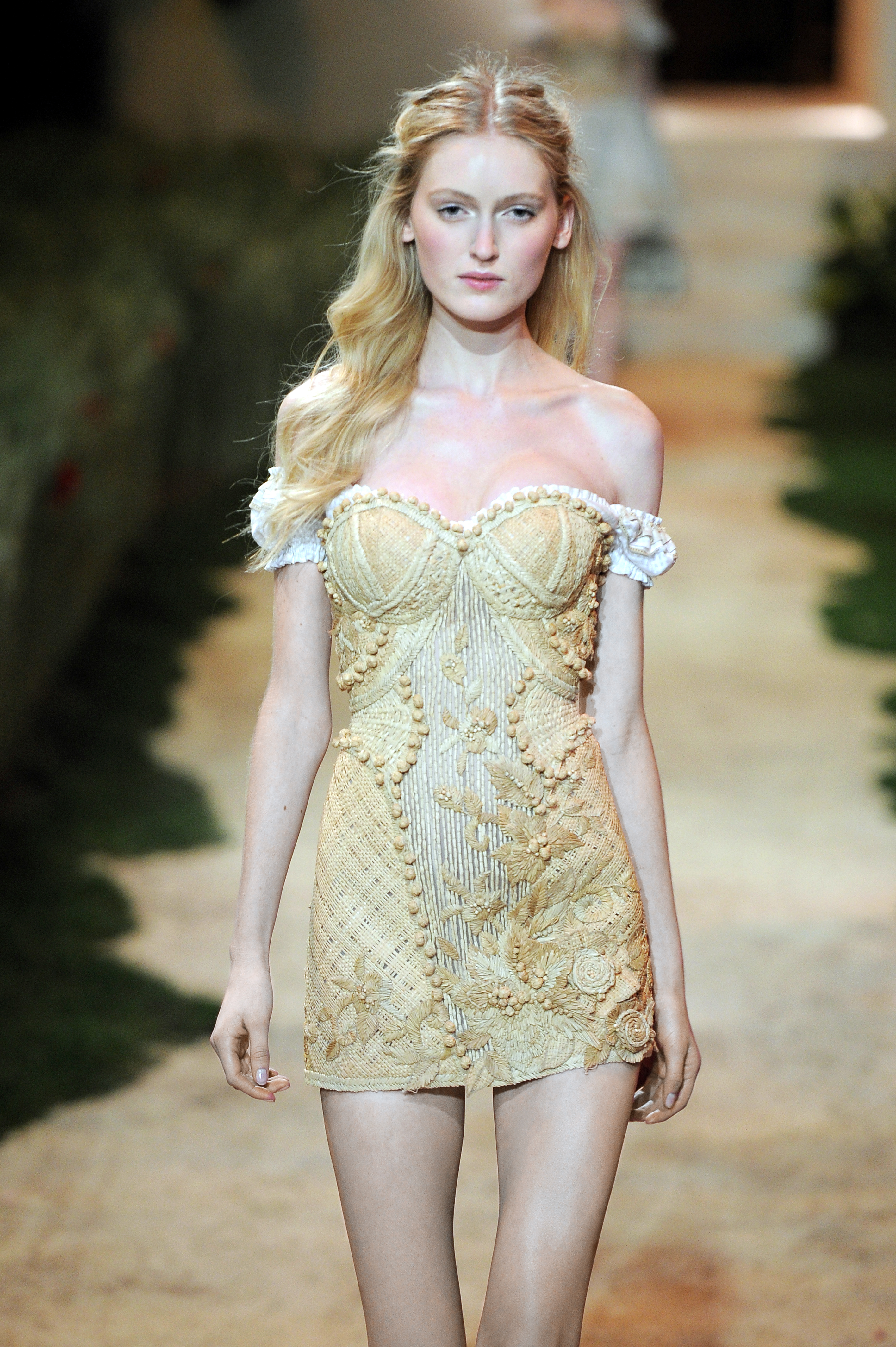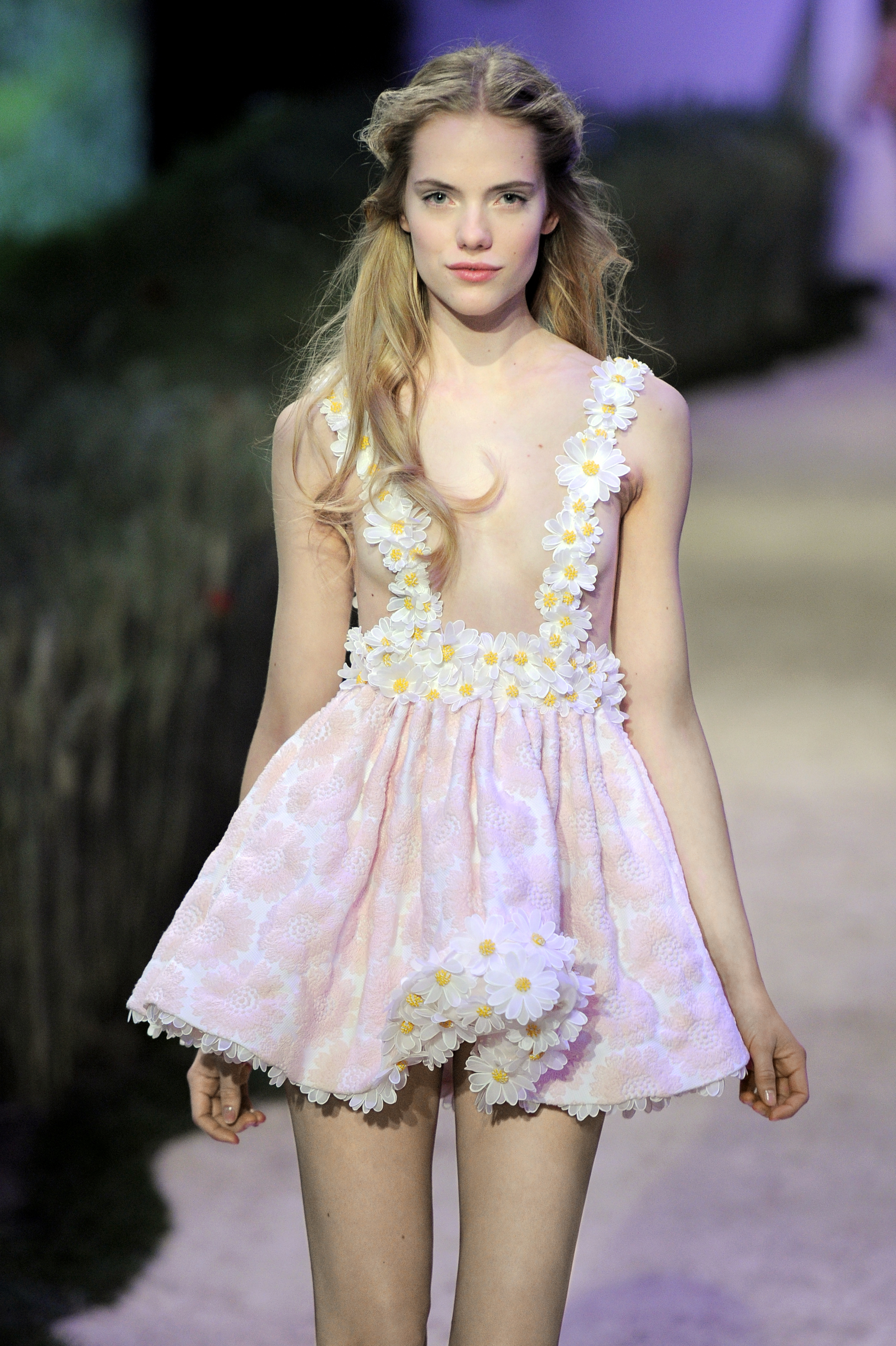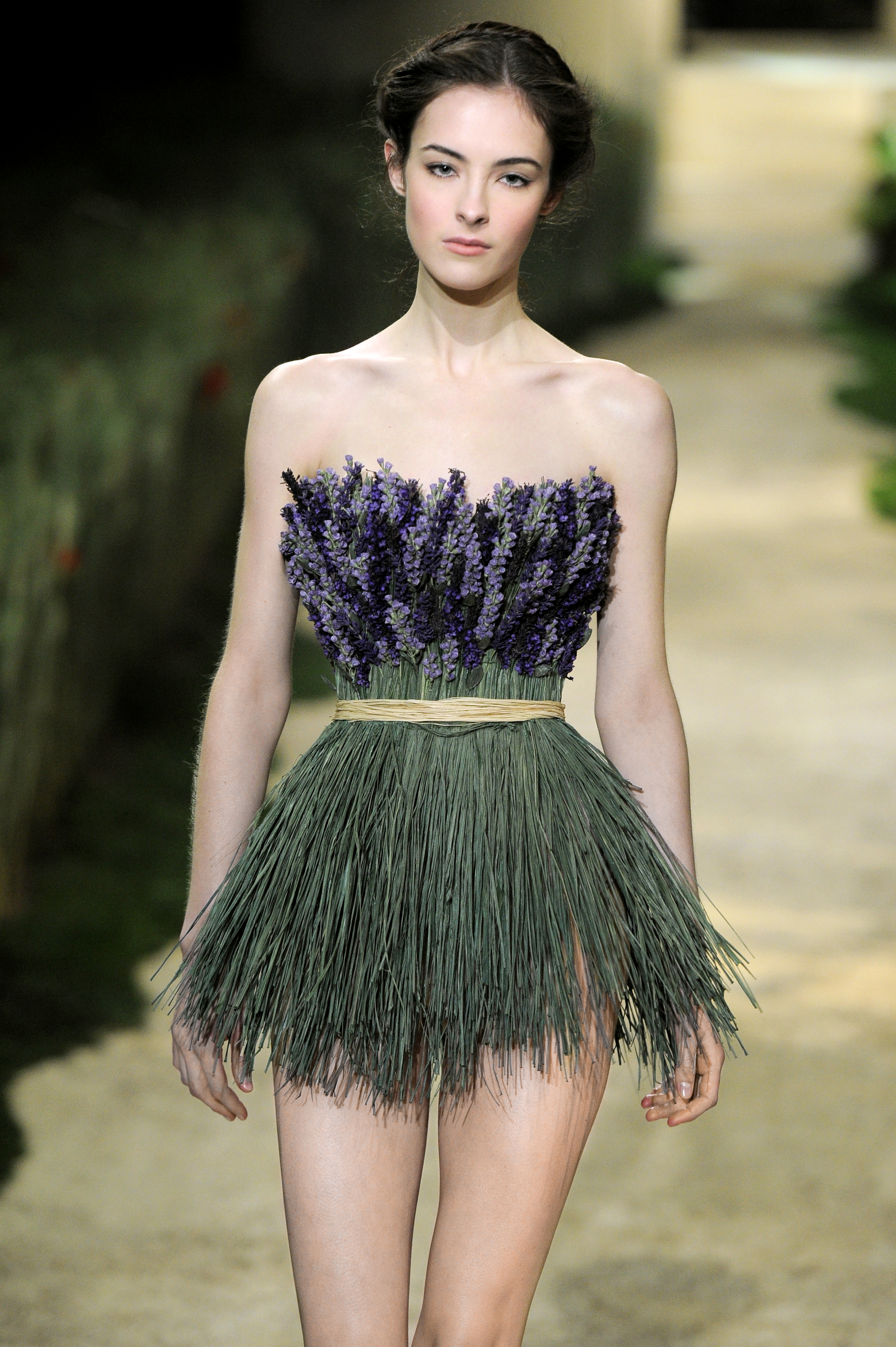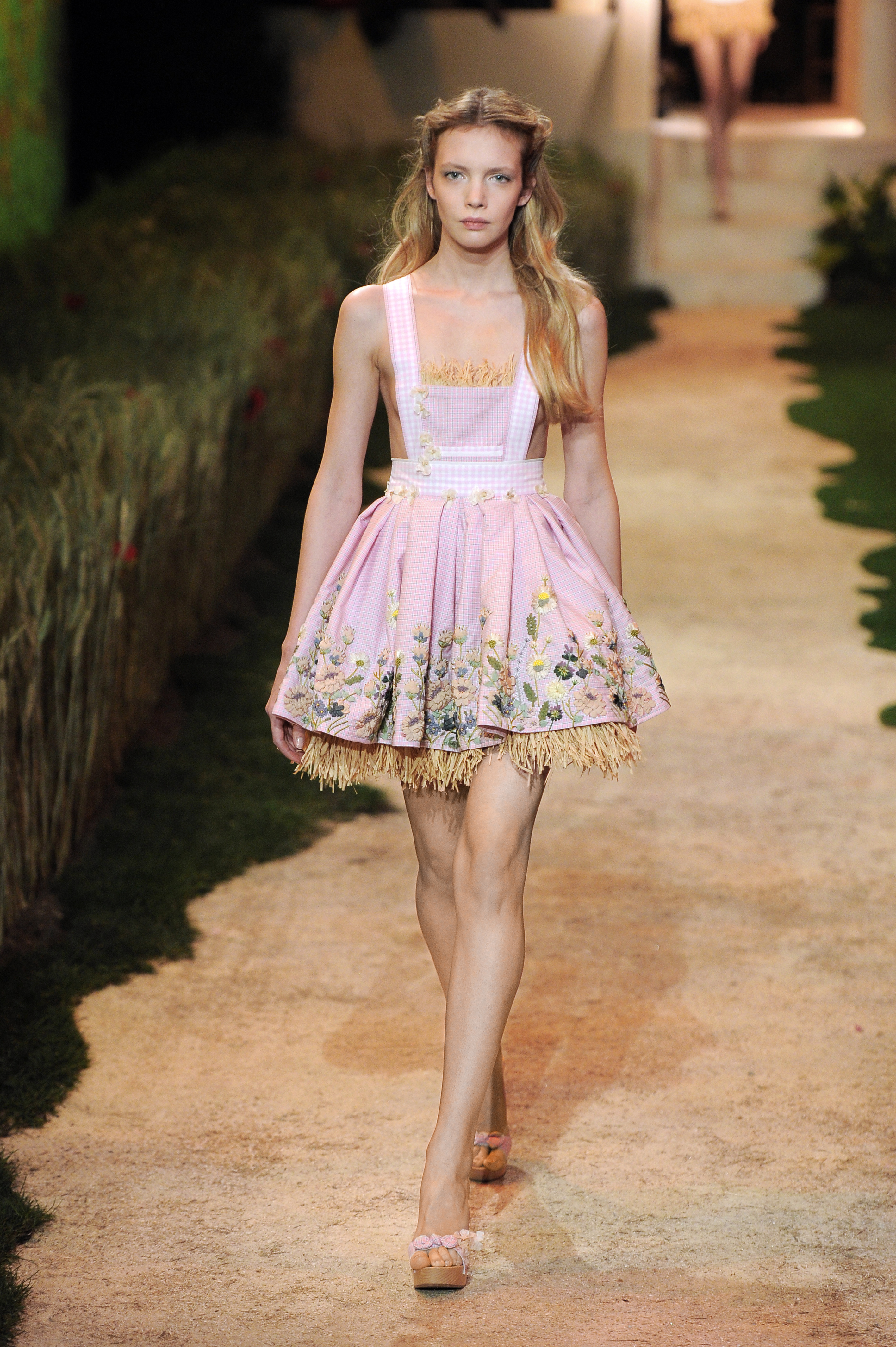 20 modèles pour 20 héroïnes d’un conte de fée, plus le final porté par Zahia Dehar, expriment la fraîcheur et la magie d’un été éphémère. La collection est construite autour d’effets de matières, d’exploits de construction, de centaines d’heures de broderies. Le tout sublimé d’un jeu de teintures dont les variations délicates provoquent des effets en trompe l’oeil…