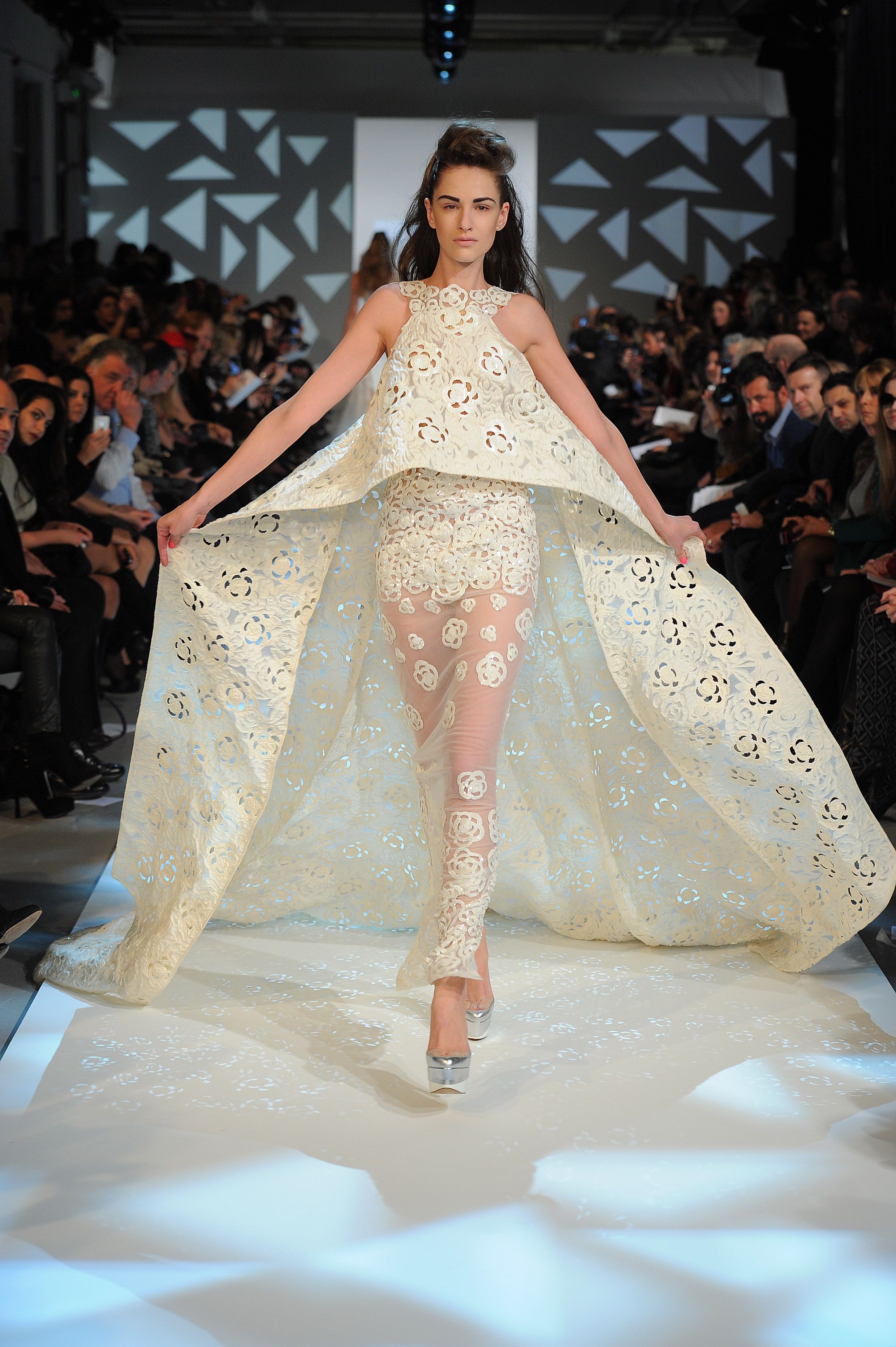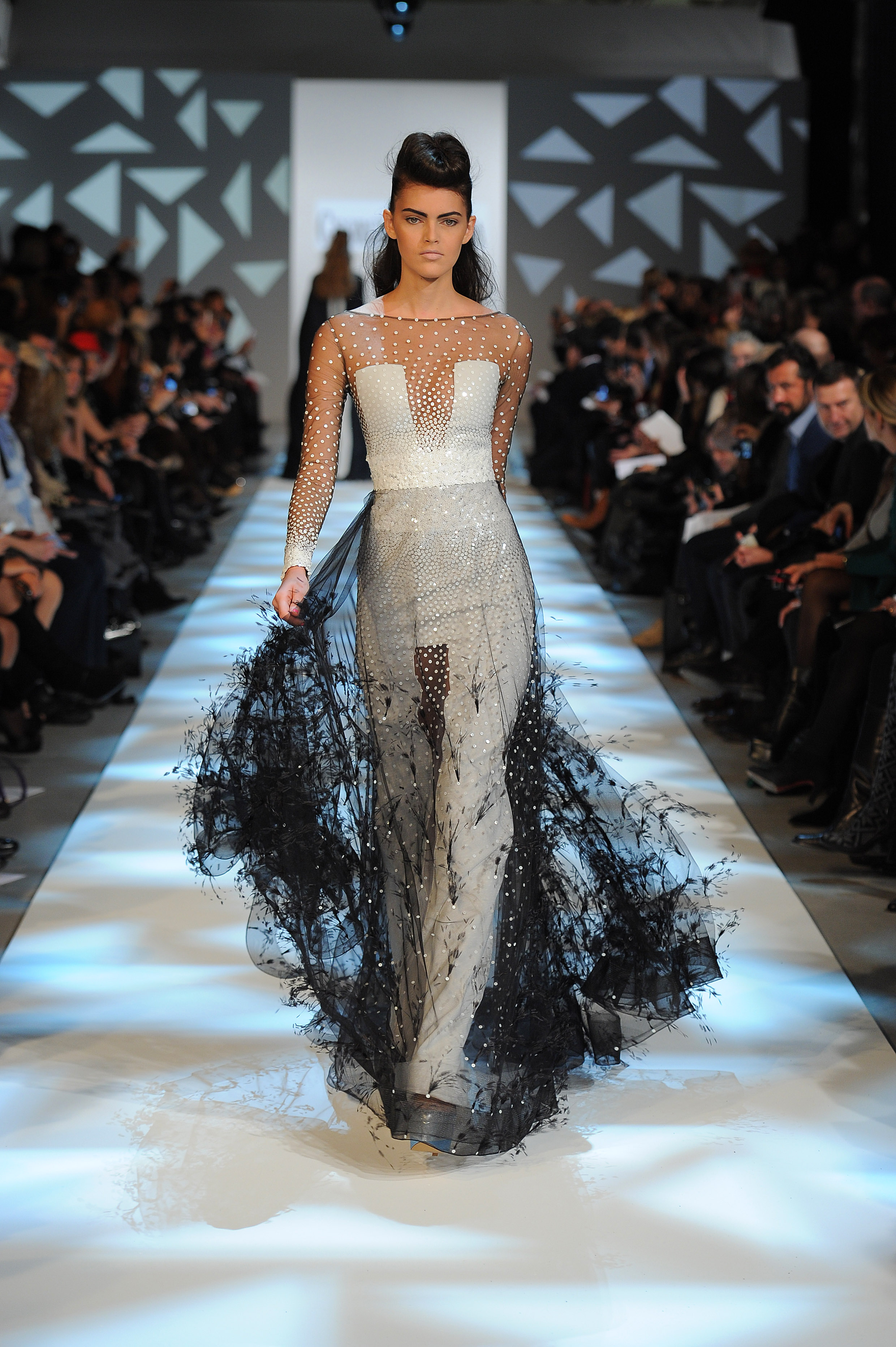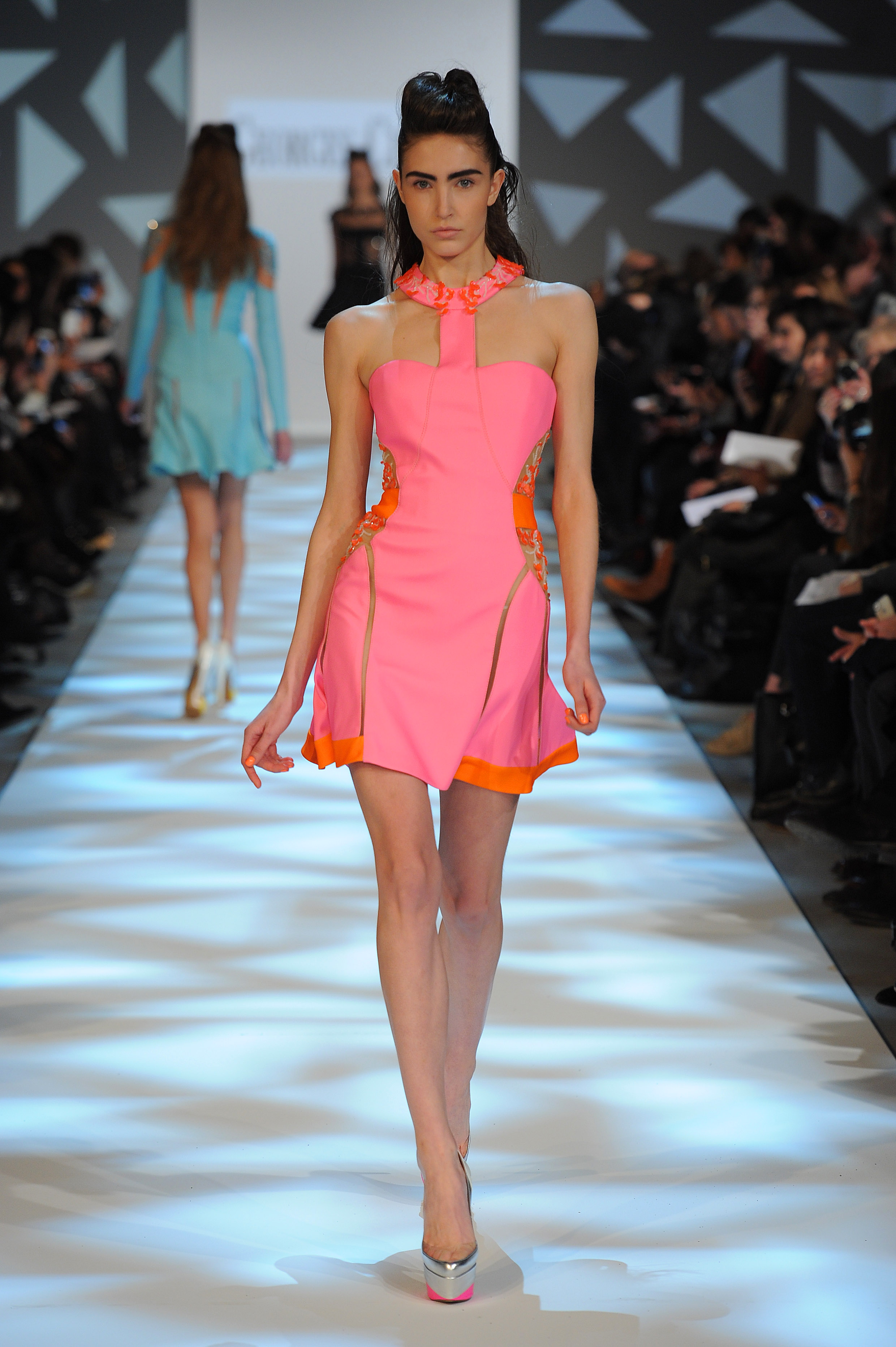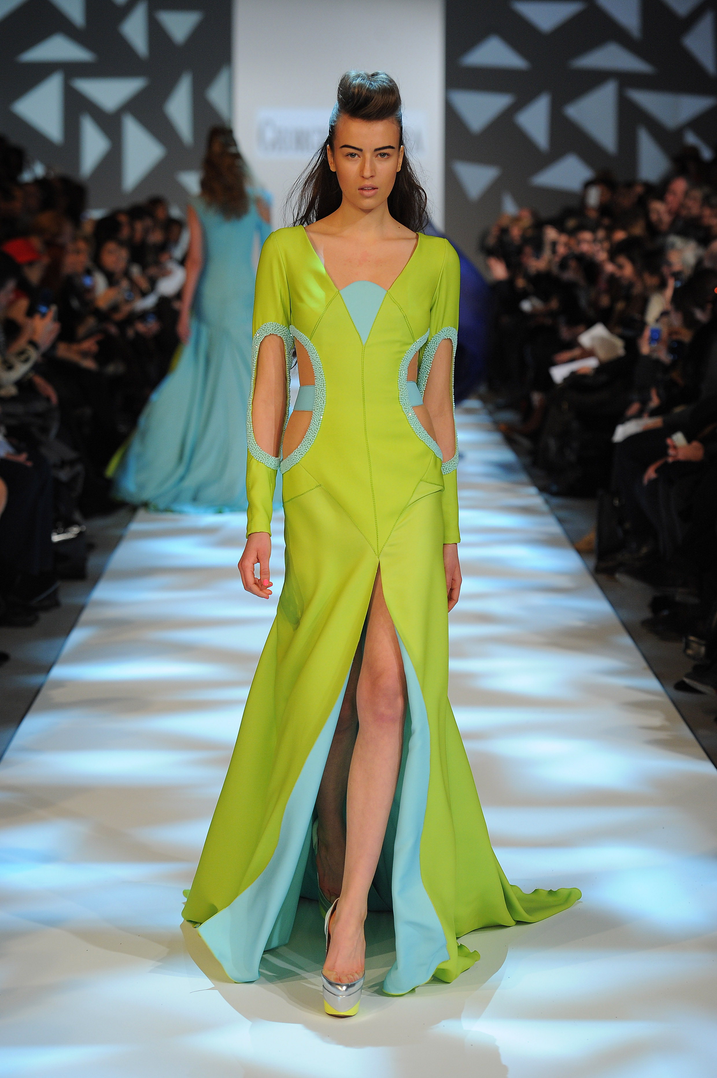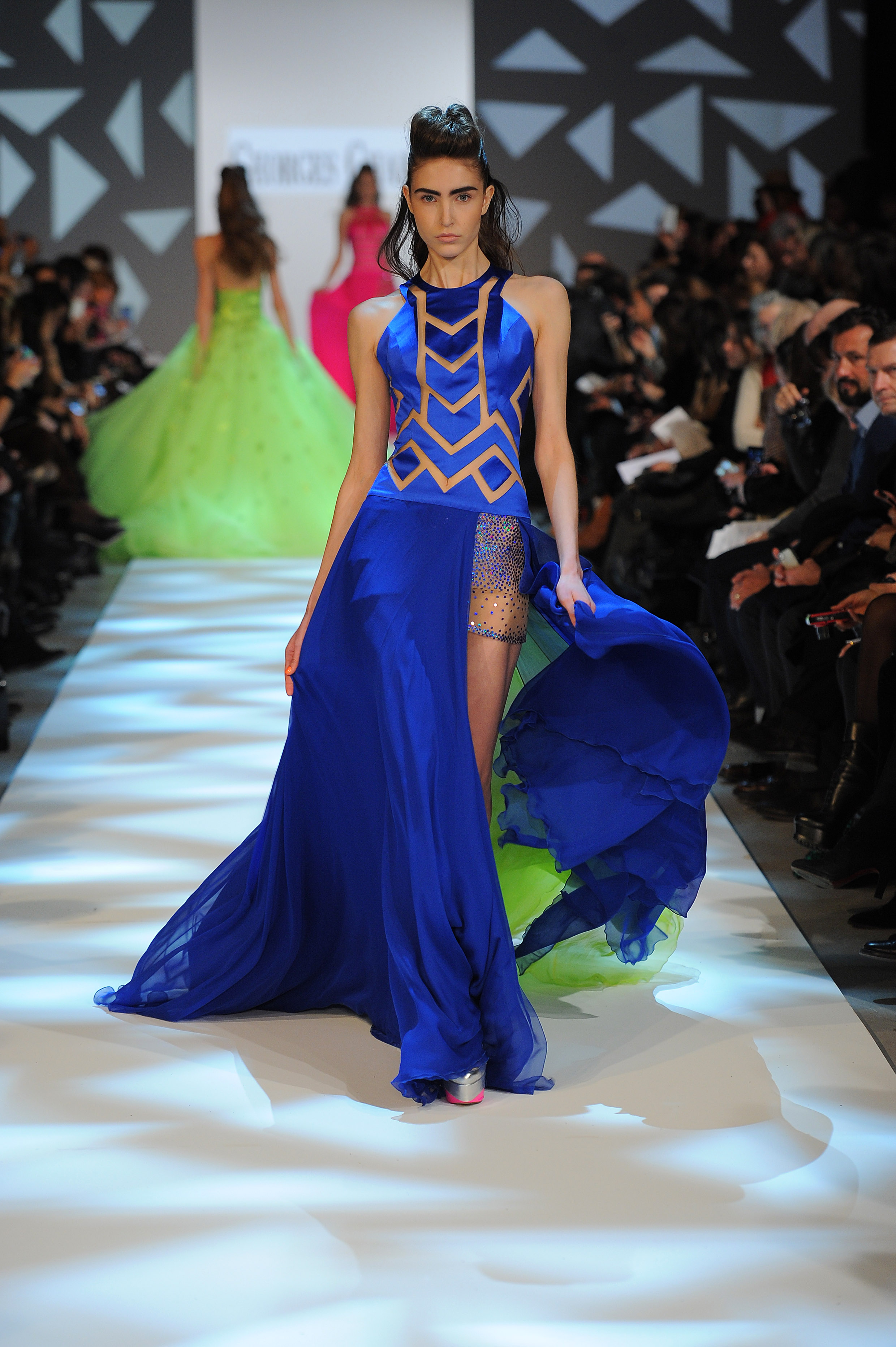 Lines of force. Noon or midnight, mini or maxi…. The mistress attitude dominates: corseted busts and shoulders in the spotlight, haughty asymmetries and vigorous transparencies, straightforward cuts and architectural sheaths… Underlined to the last detail, silhouettes look proud from morning till moonlight, determined to lead the ball and the dance.
