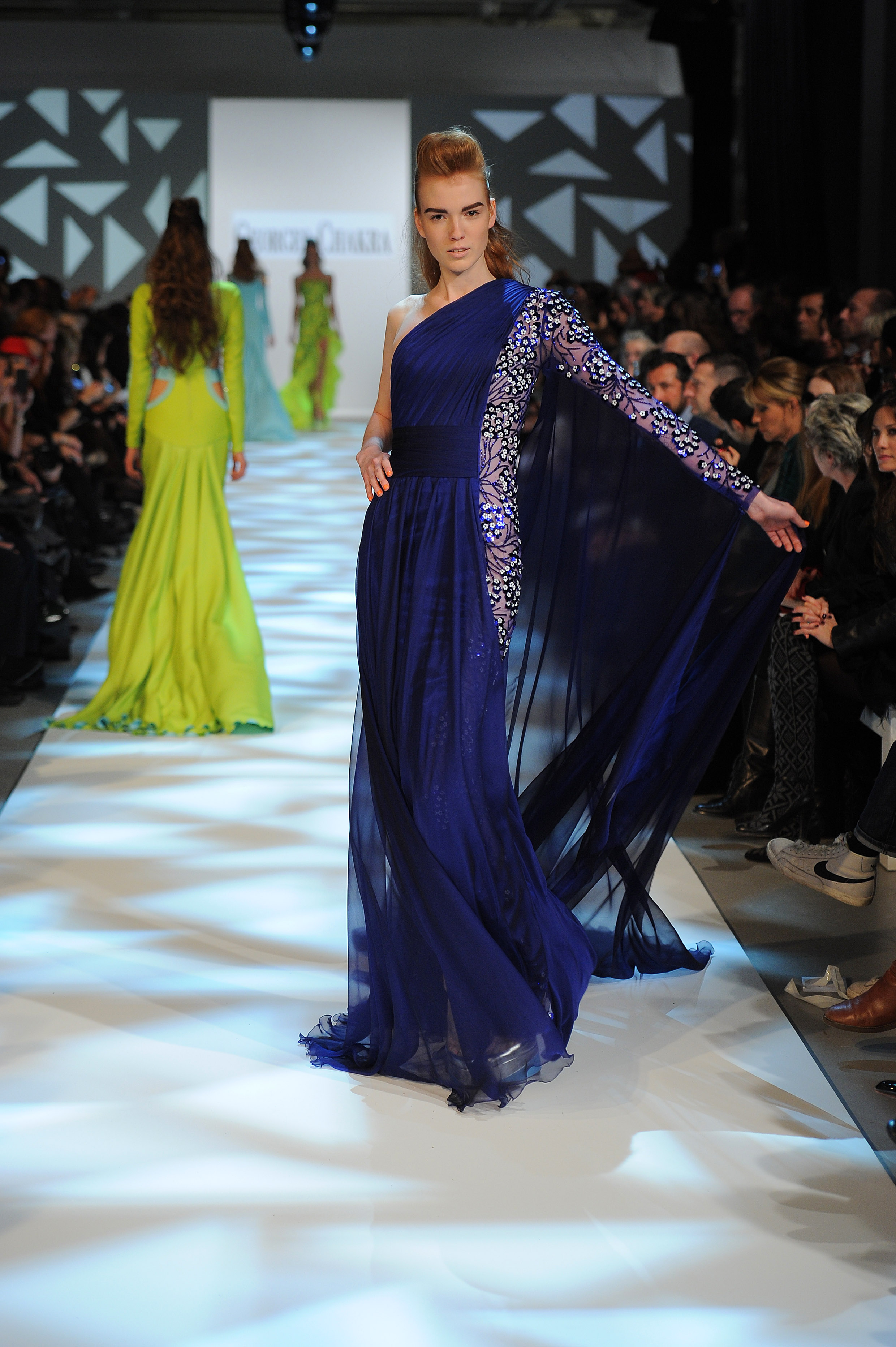 Tomorrow begins this spring… Android beauties inspired by the most futuristic Shanghai, Georges Chakra’s new muses take the lead, with tall, urban profiles at the forefront of femininity, in other words, with full decision-making powers. And seduction.