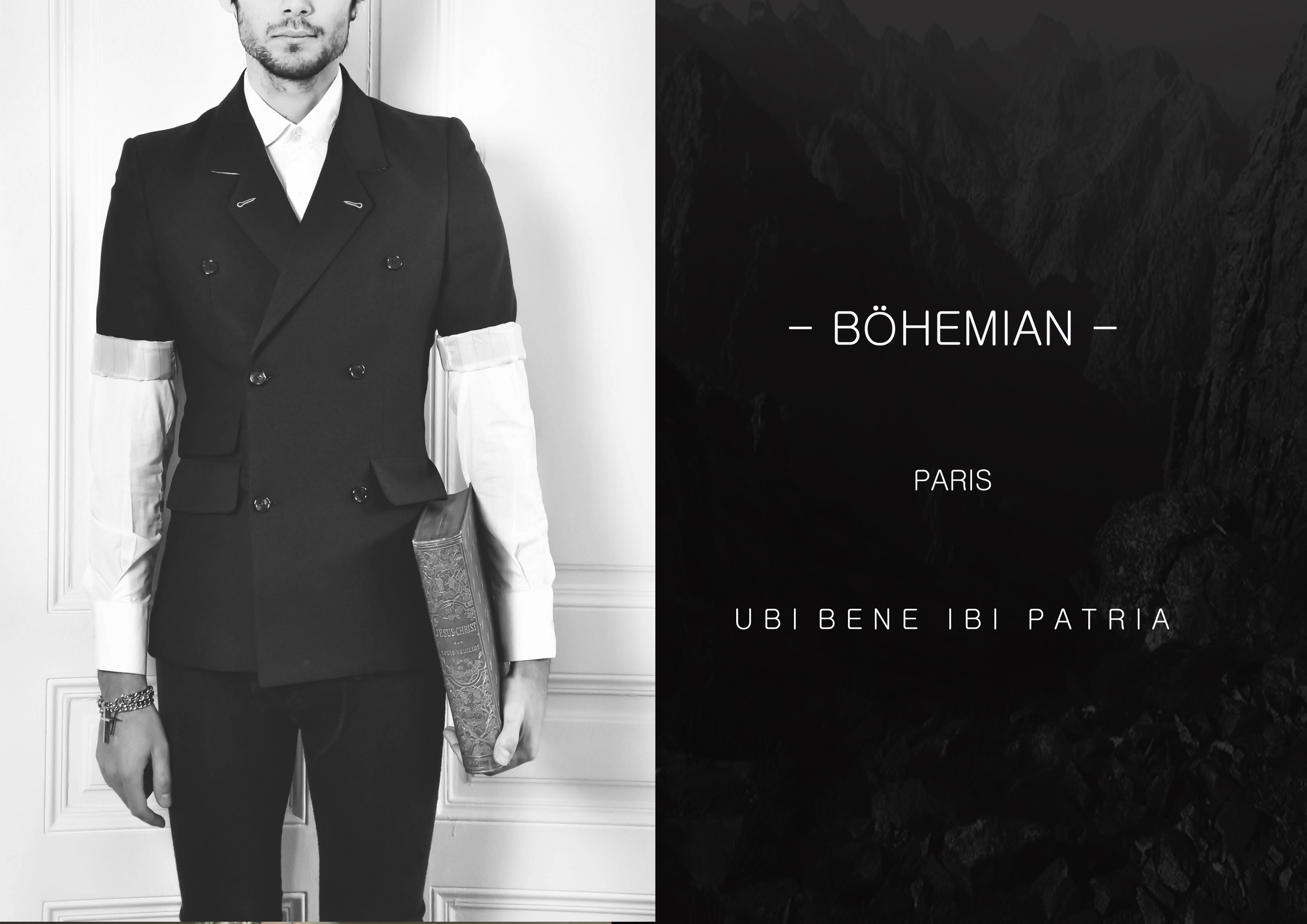 « Ubi Bene Ibi Patria » Que l’on peut traduire par « La patrie est là où l’on se sent bien ». En effet, la notion d’homme contemporain qui voyage et fait face à un monde ou les frontières s’effacent de plus en plus se conjugue parfaitement avec ce que veut représenter BÖHEMIAN, une certaine ouverture sur des approches différentes. Ainsi BÖHEMIAN chasse le traditionnel pour proposer de nouvelles tendances au sein d’une société multiculturaliste.