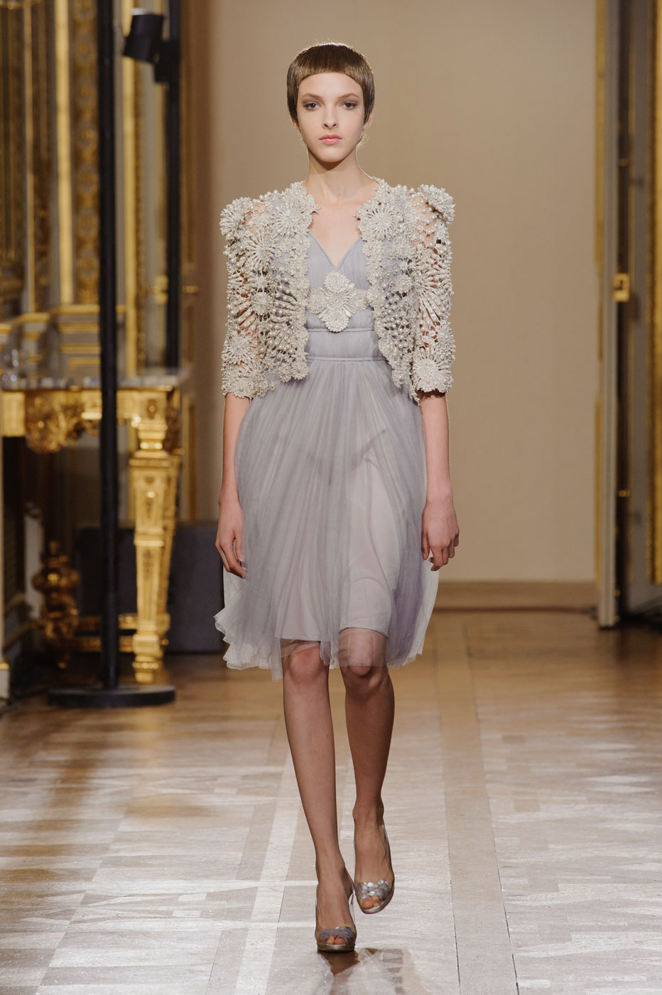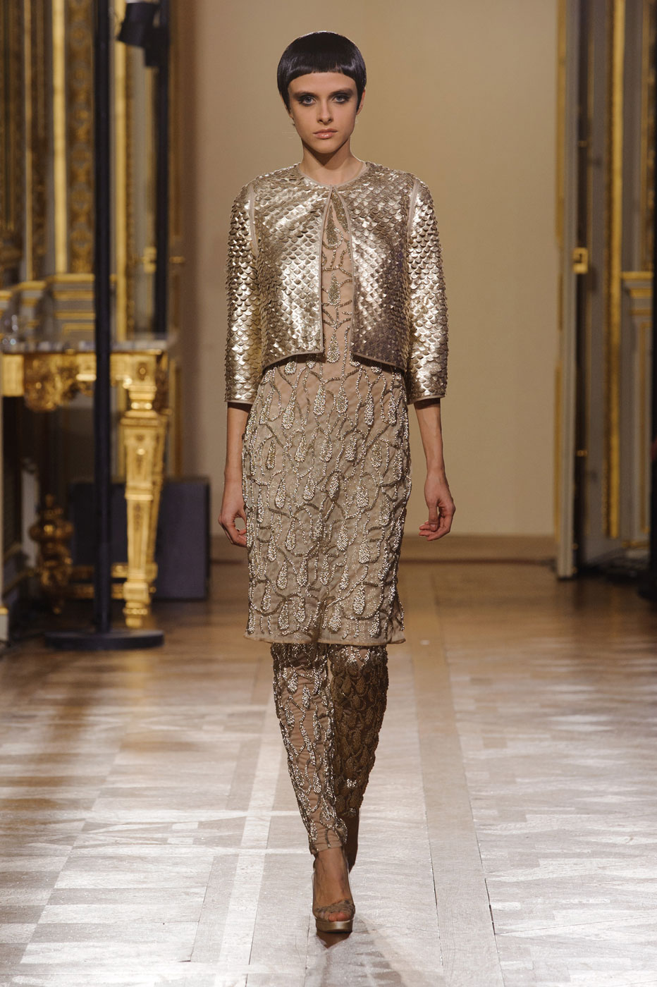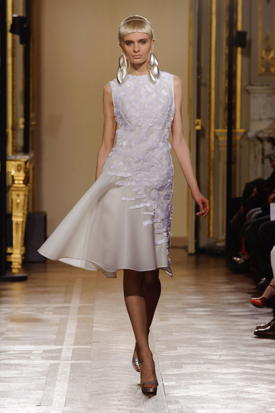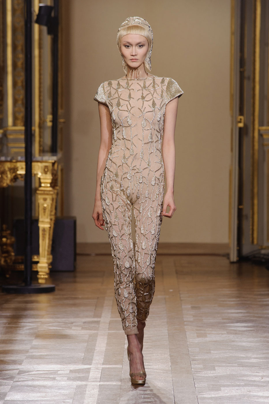 Plonger dans un océan de matières, se laisser porter par les courants d’un idéal insensé, surréaliste et organique; être envoûté par le ballet hypnotique de nageoires de soie , refaire surface un instant, être transpercé par une lumière rose et métallique, replonger, ignorer le danger des écailles de cuir, effleurer un corail de tulle et enfin capituler devant la sensualité extravagante et mystérieuse de la femme poisson.