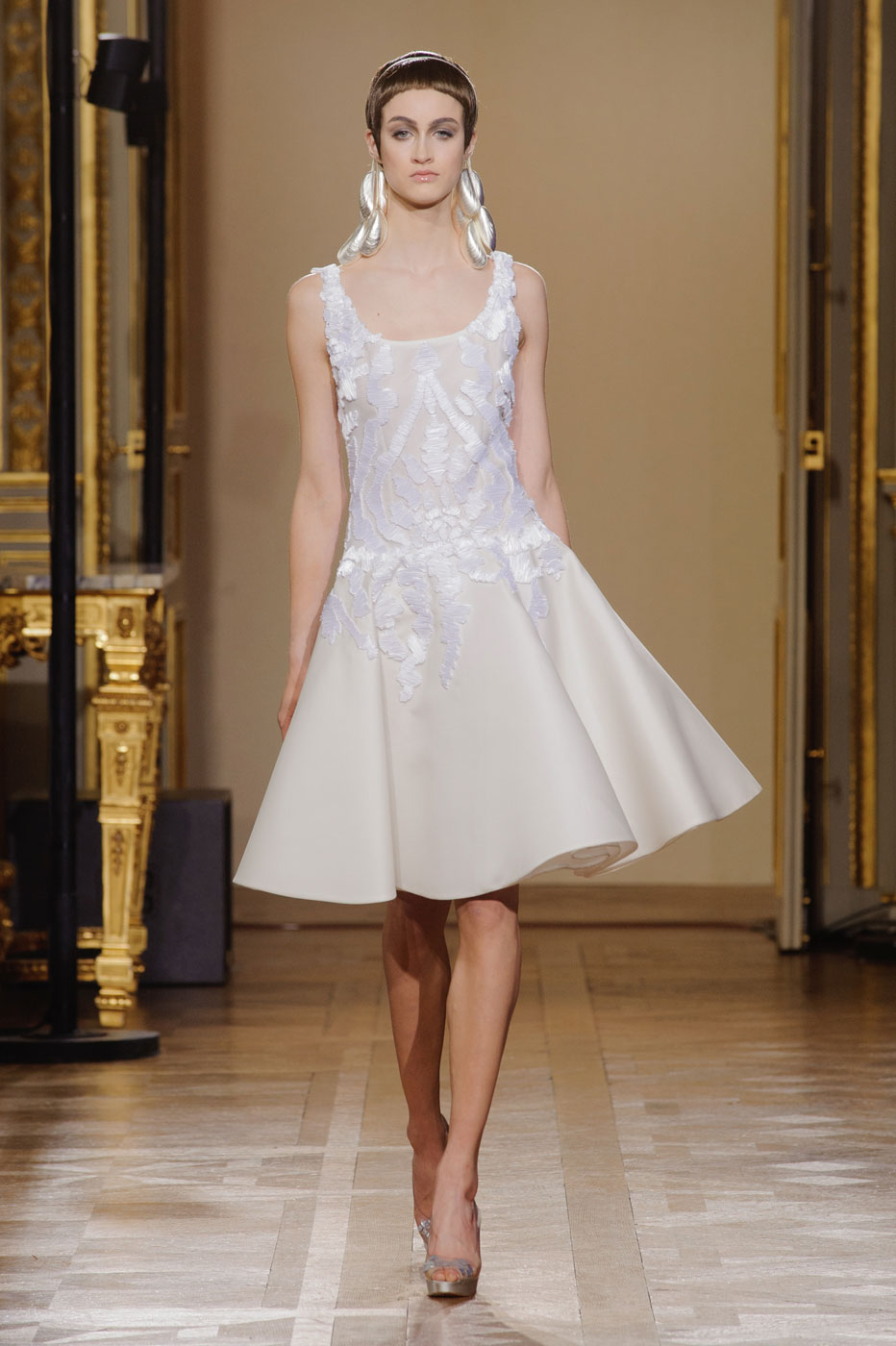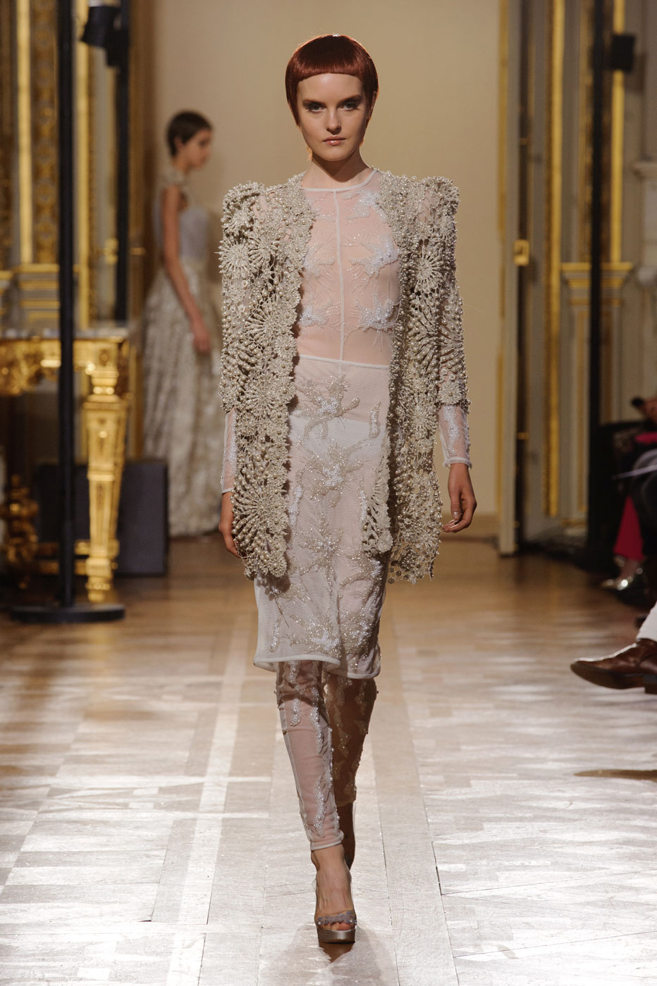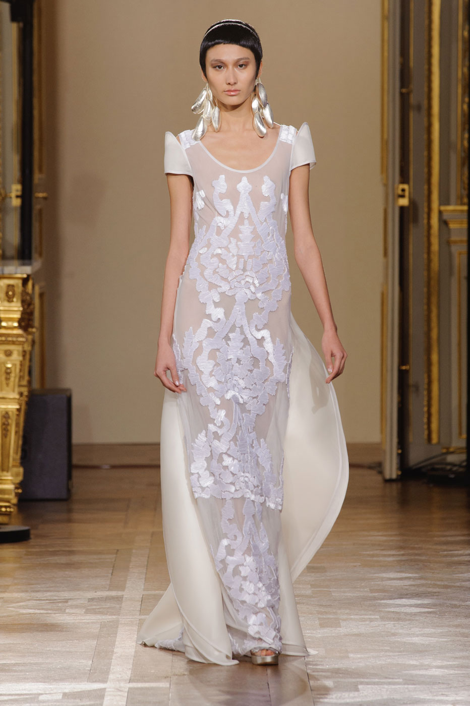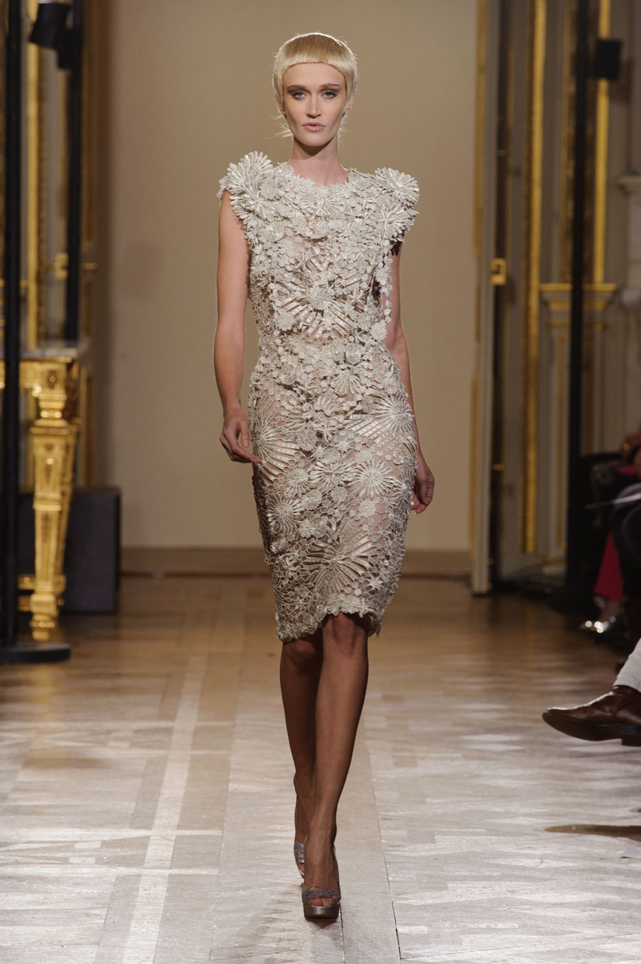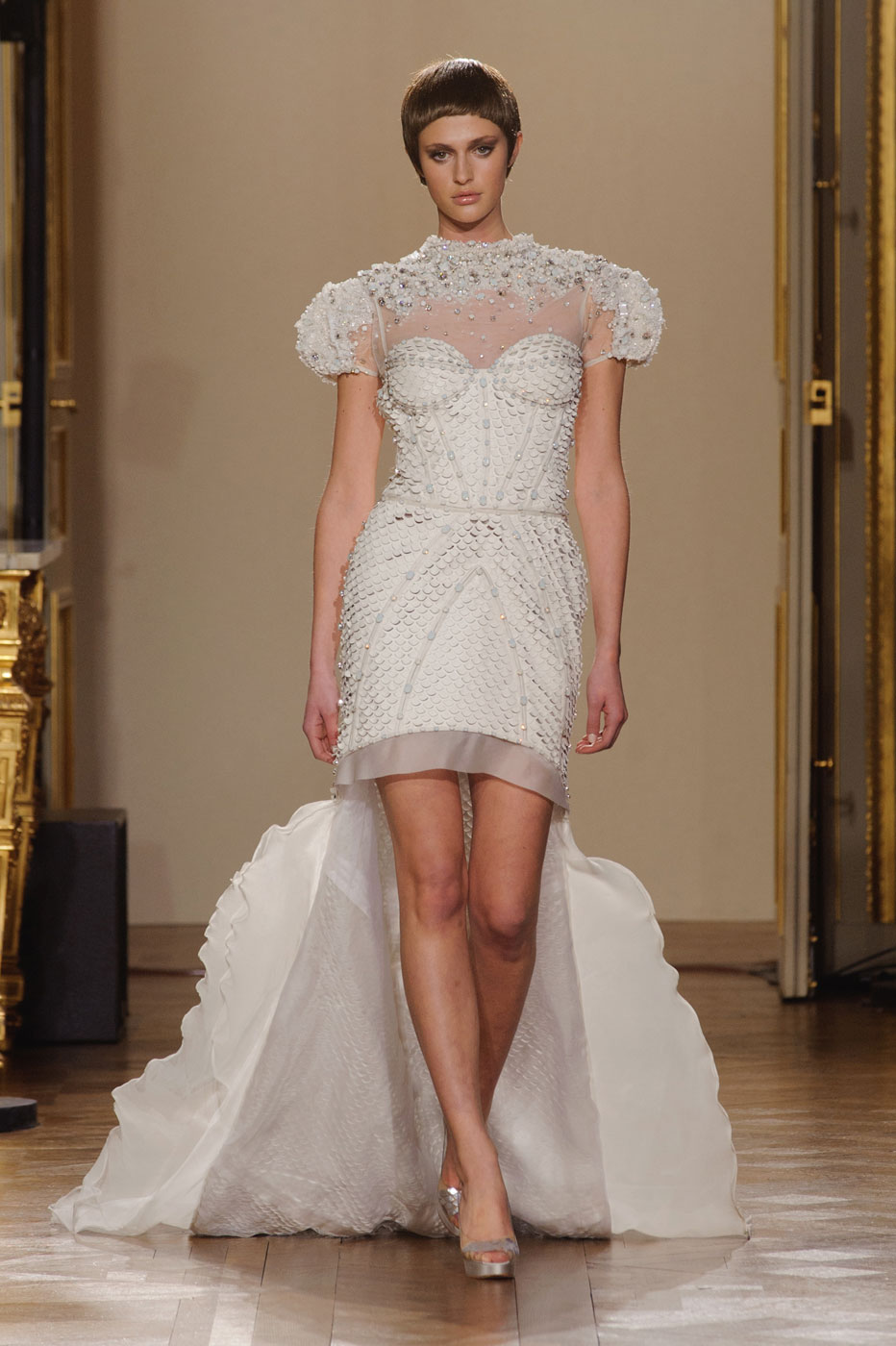Plonger dans un océan de matières, se laisser porter par les courants d’un idéal insensé, surréaliste et organique; être envoûté par le ballet hypnotique de nageoires de soie , refaire surface un instant, être transpercé par une lumière rose et métallique, replonger, ignorer le danger des écailles de cuir, effleurer un corail de tulle et enfin capituler devant la sensualité extravagante et mystérieuse de la femme poisson.