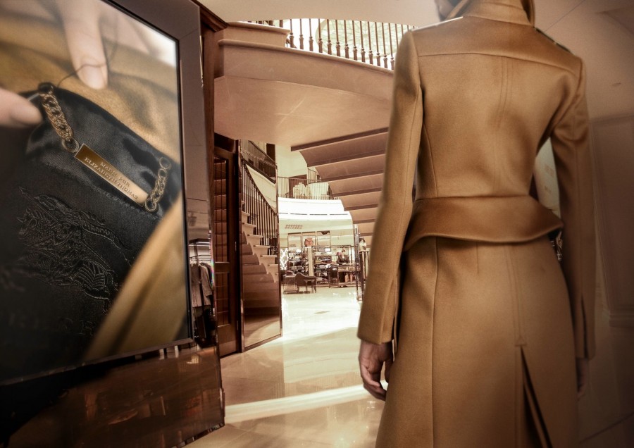 De plus, au sein du flagship Burberry à Londres sur Regent Street, les clients peuvent voir leurs pièces dévoiler leur contenu personnalisé sur de grands miroirs qui se changeront instantanément en écrans.