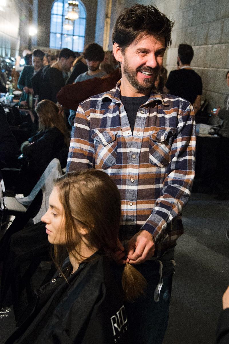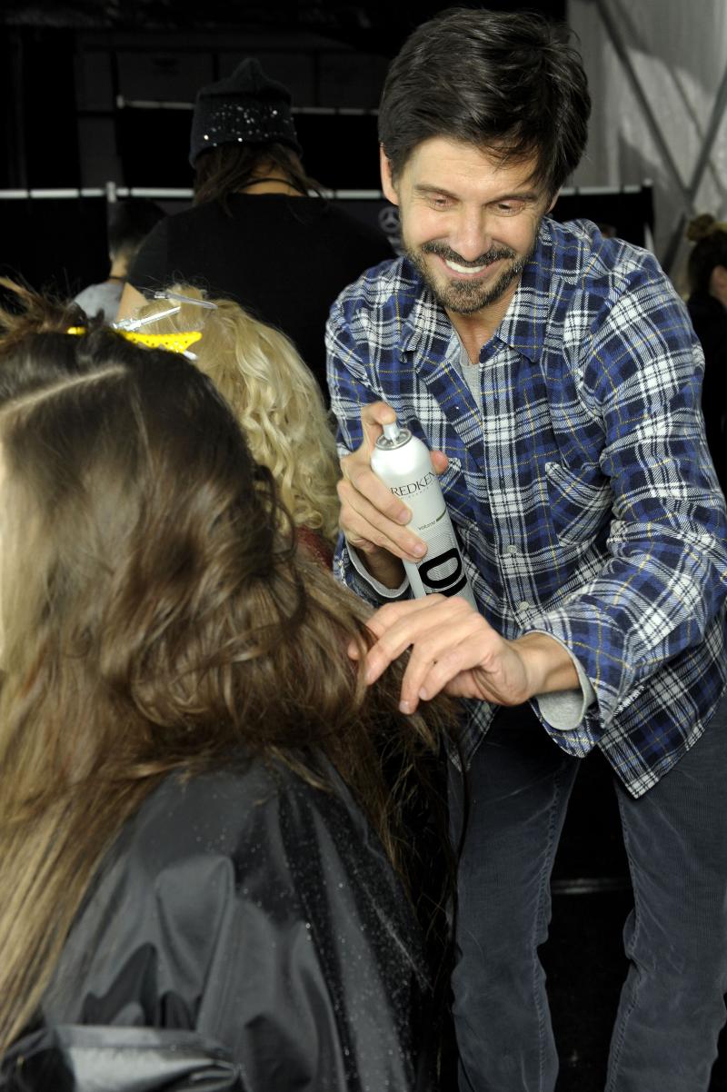 « Nous nous sommes inspirés de la femme des années 40, une femme citadine, mais nous nous sommes amusés avec, façon Marc by Marc Jacobs. Nous ne voulions pas que le look soit trop symétrique, nous souhaitions un peu de folie en déstructurant les boucles. » Guido, coiffeur défilé Redken