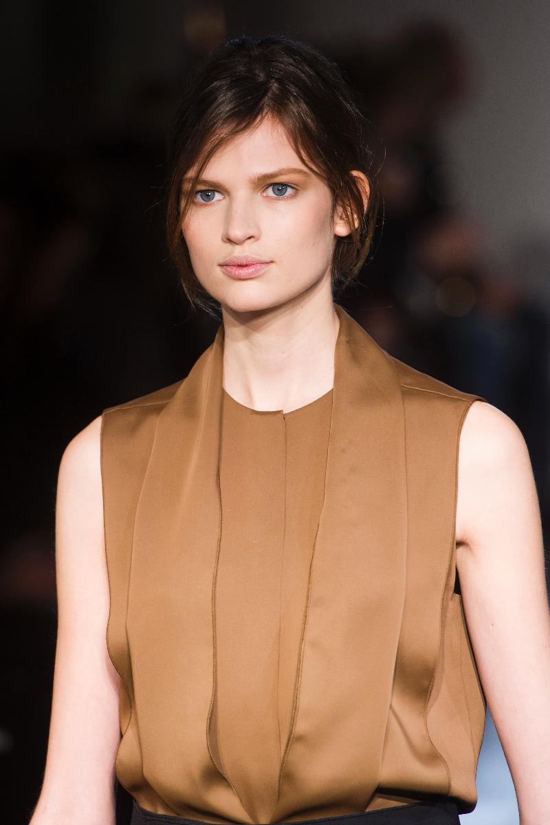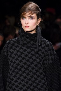 Une raie aléatoire, de légères mèches encadrant le visage, une queue de cheval low sur cheveux longs… déjà vu? Sur Victoria Beckham, ainsi que lors de son défilé new-yorkais à la Public Library. La collection restait fidèle au style de sa créatrice: coupes structurées mais fluides aussi grâce aux matières, et la coiffure venait ajouter une pointe de légèreté pour éviter le côté « too posh »!