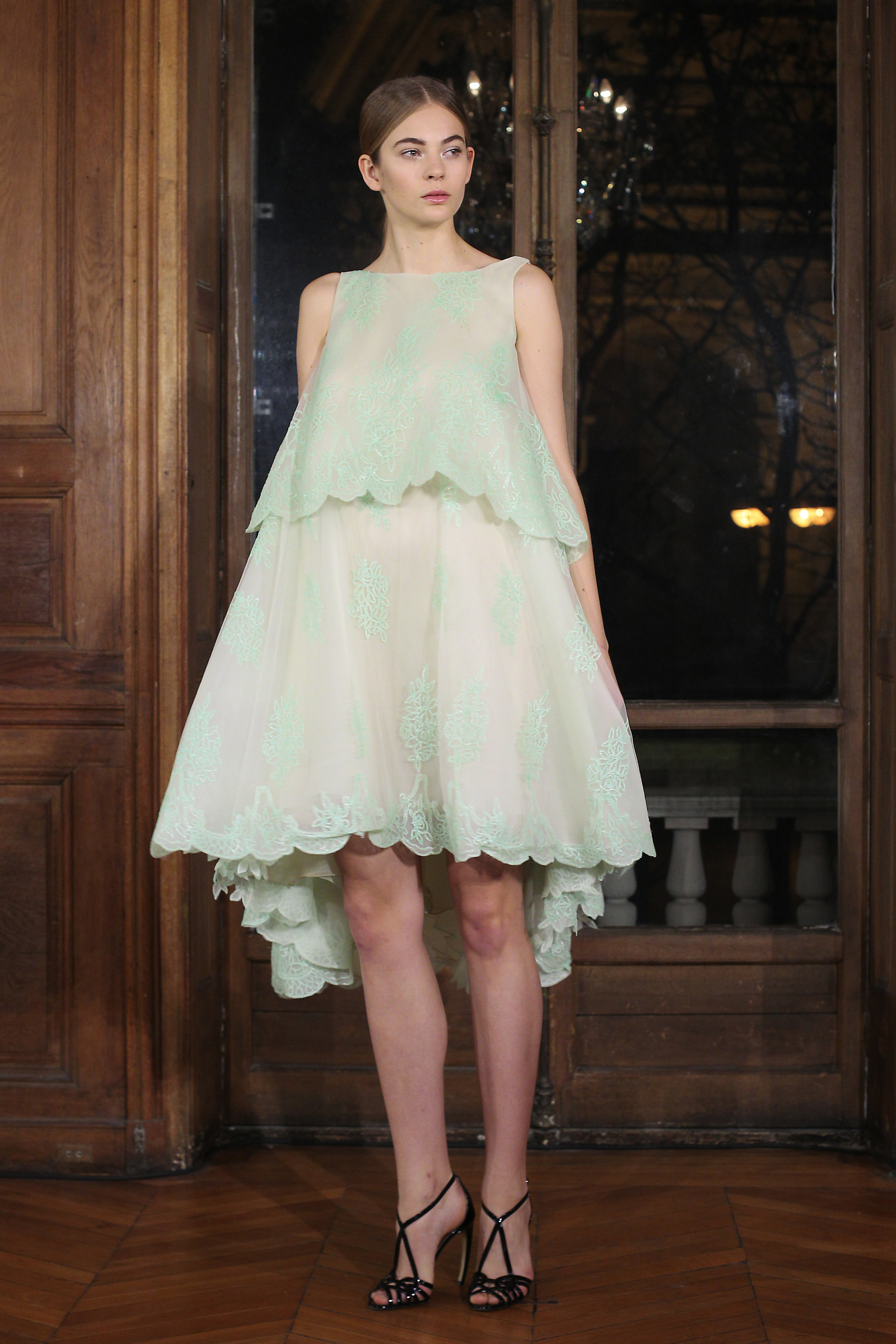 As for the materials so dear to the House, a fairyland of lace, guipure, chiffon and silk organdy with reworked prints using laser cutting and fine embroidery.