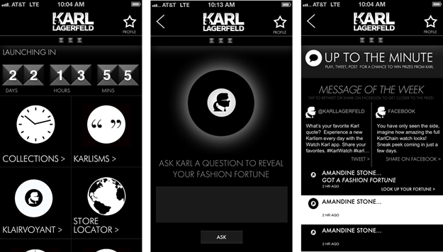 La collection tant attendue de montres KARL LAGERFELD sera lancée, dans le monde entier, le 28 février dans une sélection exclusive de points de ventes. Pour nous faire patienter, la marque a lancé une nouvelle application mobile au contenu exclusif. Elle offre aux utilisateurs un aperçu des coulisses du lancement de la collection KARL LAGERFELD, entre inspirations stylistiques et jeux interactifs.