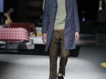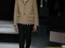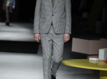 Le détail des cols mal arrangés, comme si la tenue avait été enfilée à la va-vite ne manque pas de faire sourire et évoque un départ matinal précipité des bras de sa bien-aimée (l’homme Prada est un romantique, après tout)