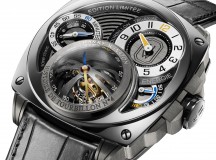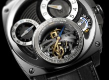 De par sa nature profonde, Histoire de Tourbillon 4 est un concentré de précision magnifié par un design aussi spectaculaire que raffiné. Celui-ci rend hommage aux codes esthétiques traditionnels de l’horlogerie tout en évoquant un style architectural à la pointe de la modernité. Disposées sur plusieurs niveaux, les cages du triple tourbillon sont dotées d’un indicateur de petite seconde qui rappelle les pales affutées d’un avion à hélice. Couleurs sobres et contemporaines, configuration du cadran qui privilégie l’ouverture et met en exergue le mouvement, le ton est donné. Celui de la vigueur créative et de la fonctionnalité, dans le plus pur esprit de l’architecture moderne et du design industriel, tout en marquant le lien avec l’univers du cockpit et ses instruments de mesure. L’agencement des glaces saphir bombées dressées sur plusieurs niveaux, avec celui des mécanismes subtilement imbriqués, suggère une sorte de Métropolis mécanique miniature – un rêve utopique de perfection horlogère.