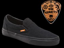 Kirk Hammett – Kirk a choisi de customiser le modèle Slip-On et pour répondre à son côté écologique, cette chaussure est en chanvre. Le talon intérieur reprend le pique de sa guitare Ouija