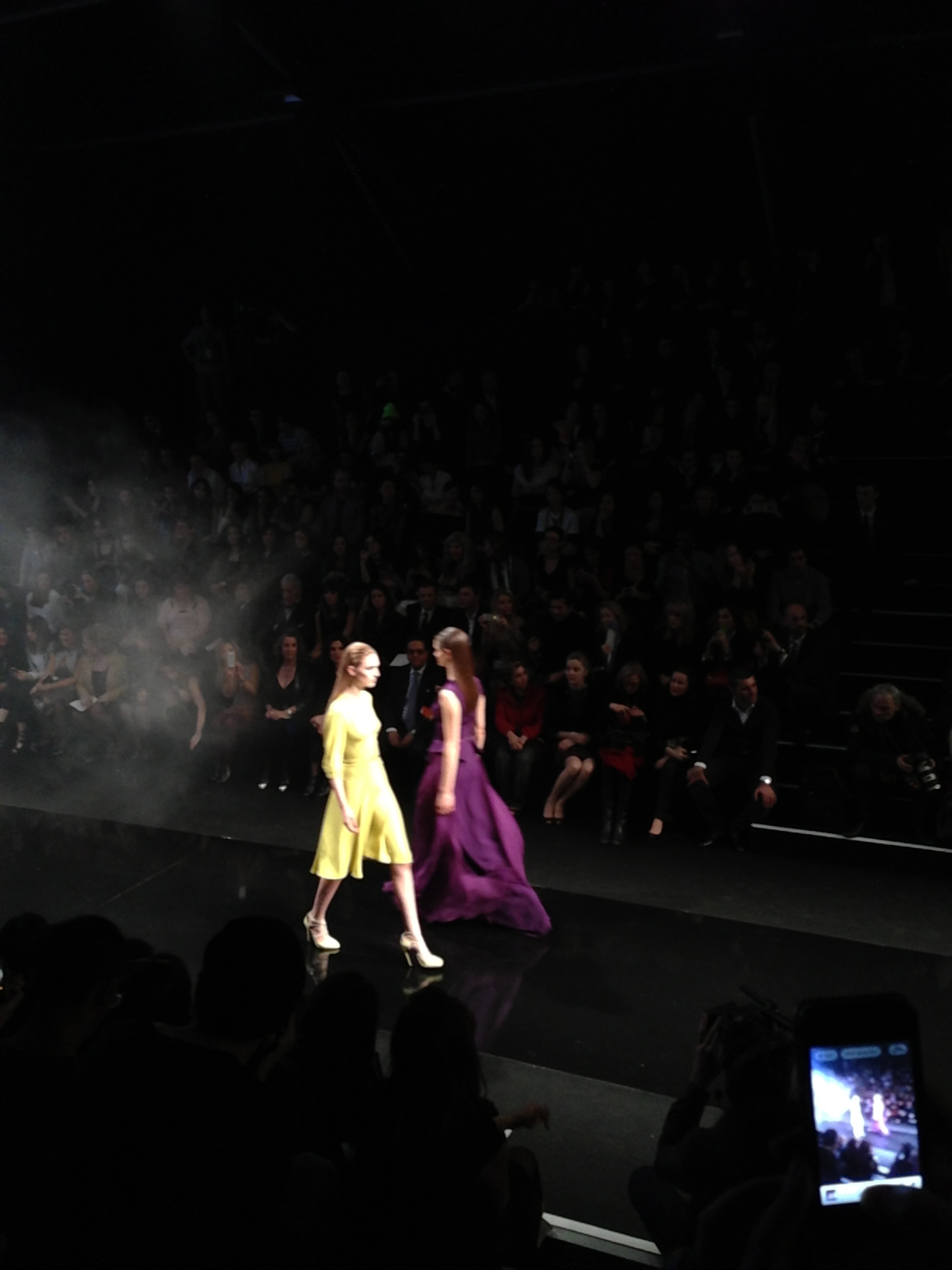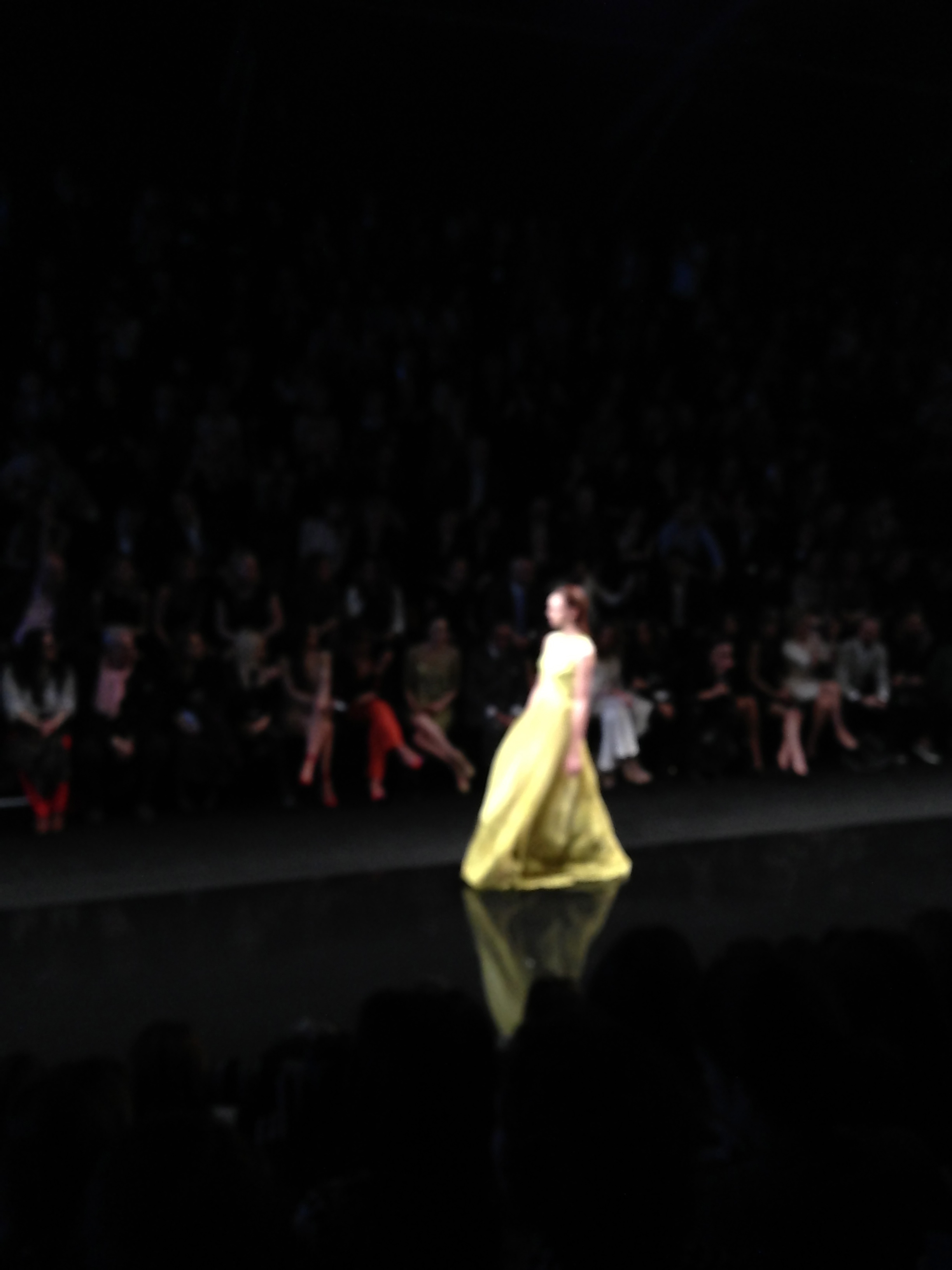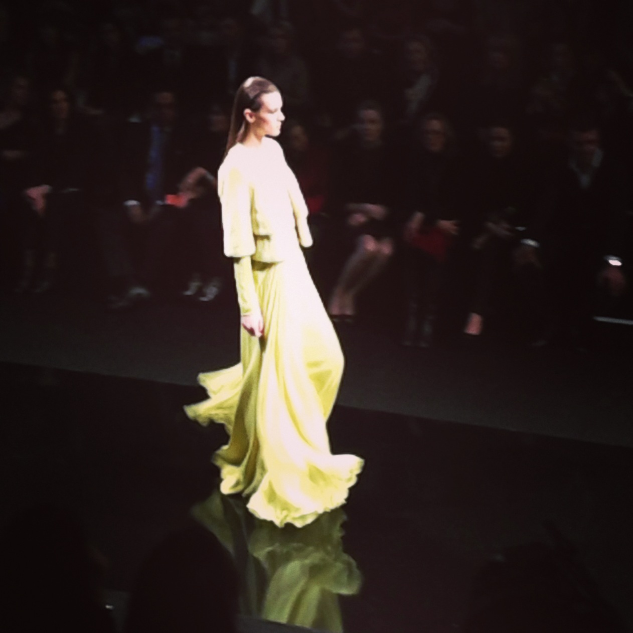 Panelling, colors, lurex and the signature Élie Saab belts are all the ingredients of the Élie Saab recipe for this show. The lace is delicate and emulates the henna tattoos of Oriental people. The colors are either bold (I think of the yellow ones….oh-my!) and clean-cut or black and more serious.