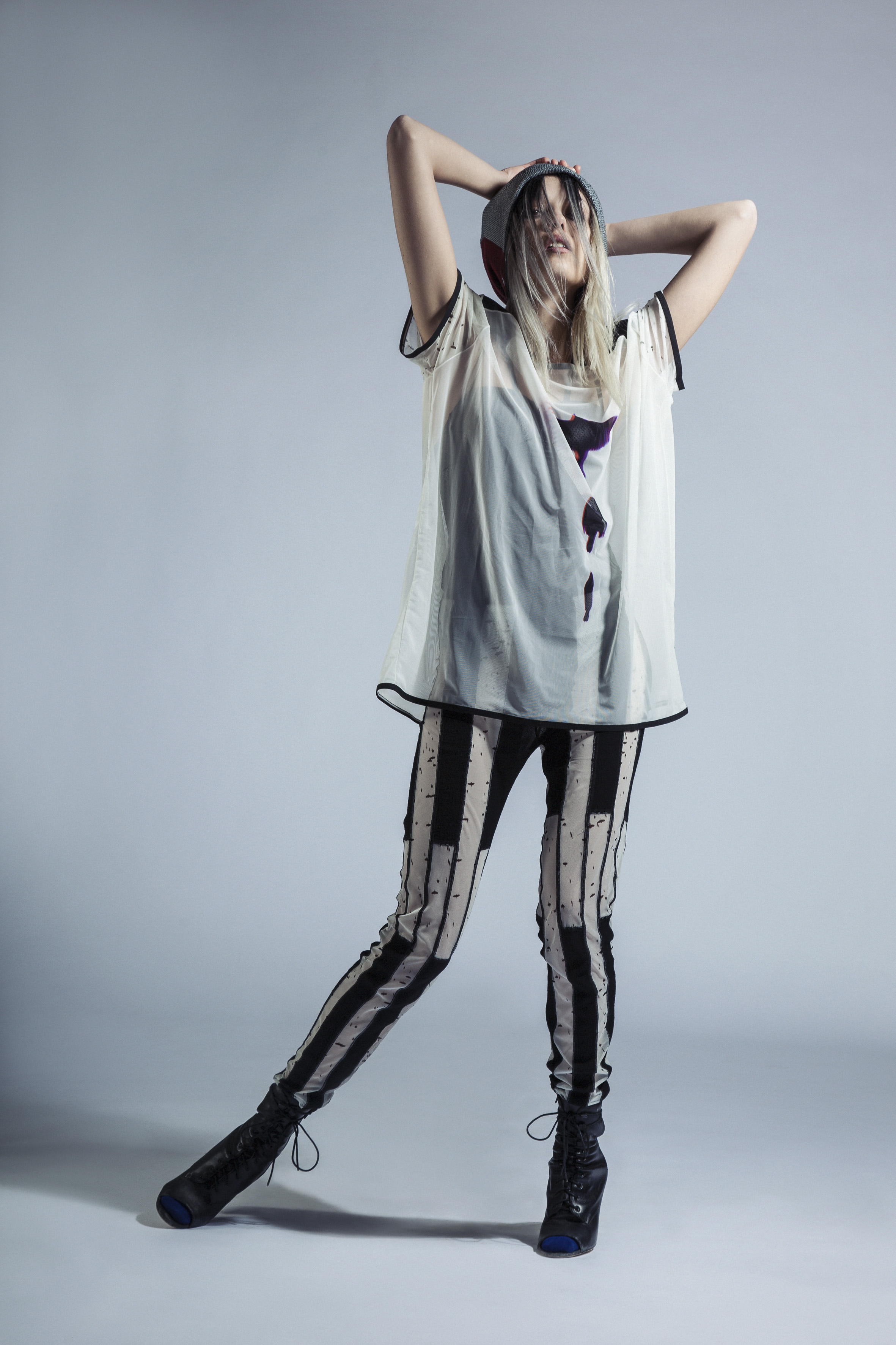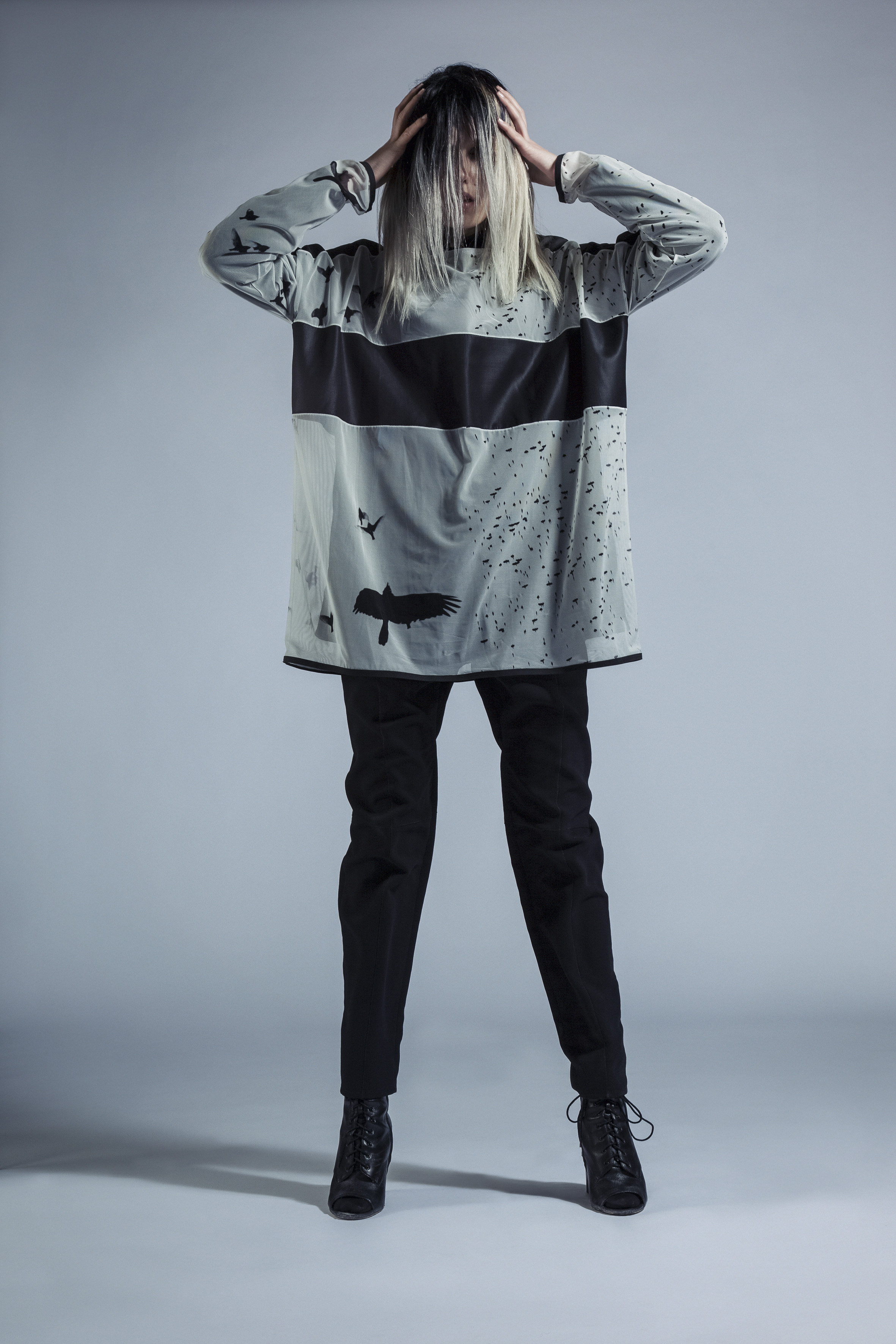 Nino Bollag nous présentait pour cette fashion week une collection automne hiver 2013-2014 inspirée par la fin du monde. Une collection divisée en trois thèmes : l’humanité aujourd’hui, la destruction puis le renouveau.
