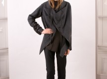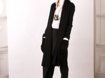 Pour cette nouvelle collection, Gustavo Lins amorce une synthèse des codes qui ont constitué au fil des saisons sa philosophie : les kimonos et drapés, les manches de vestes ont des coutures en “sabres”, torsions et spirales sont inspirées par la musculature du corps humain. Tous ses vêtements sont conçus dans une recherche de confort et de générosité dans les volumes. Pour créer cet univers doux en sensuel, Gustavo Lins sélectionne avec attention les matières au sein de Maisons traditionnelles françaises et italiennes : cashmeres, laines, toiles de coton, soies… L’architecture est omniprésente, elle est interprétée par le très identifié “T” inversé, qui signe graphiquement les collections depuis la création de la marque.
