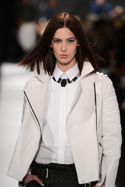 Que fait-on de ses cheveux longs lors du prochain hiver? On les attache en queue basse! Soit on adopte un look sophistiqué avec mèche enroulée pour masquer l’élastique, soit on choisit un élastique noir et fin, en toute simplicité. Chez Alexander Wang, la queue est d’une autre couleur que le reste de la chevelure, idéal pour briser la routine hivernal et faire rentrer un peu de couleur dans son quotidien!