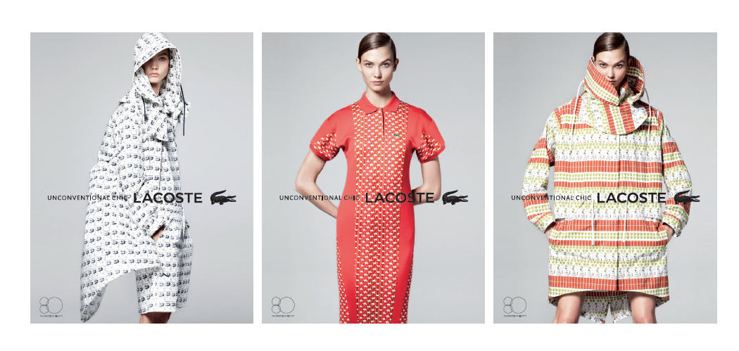 Lacoste met en abîme les imprimés de sa collection Printemps /Été 2013 au sein de trois visuels.