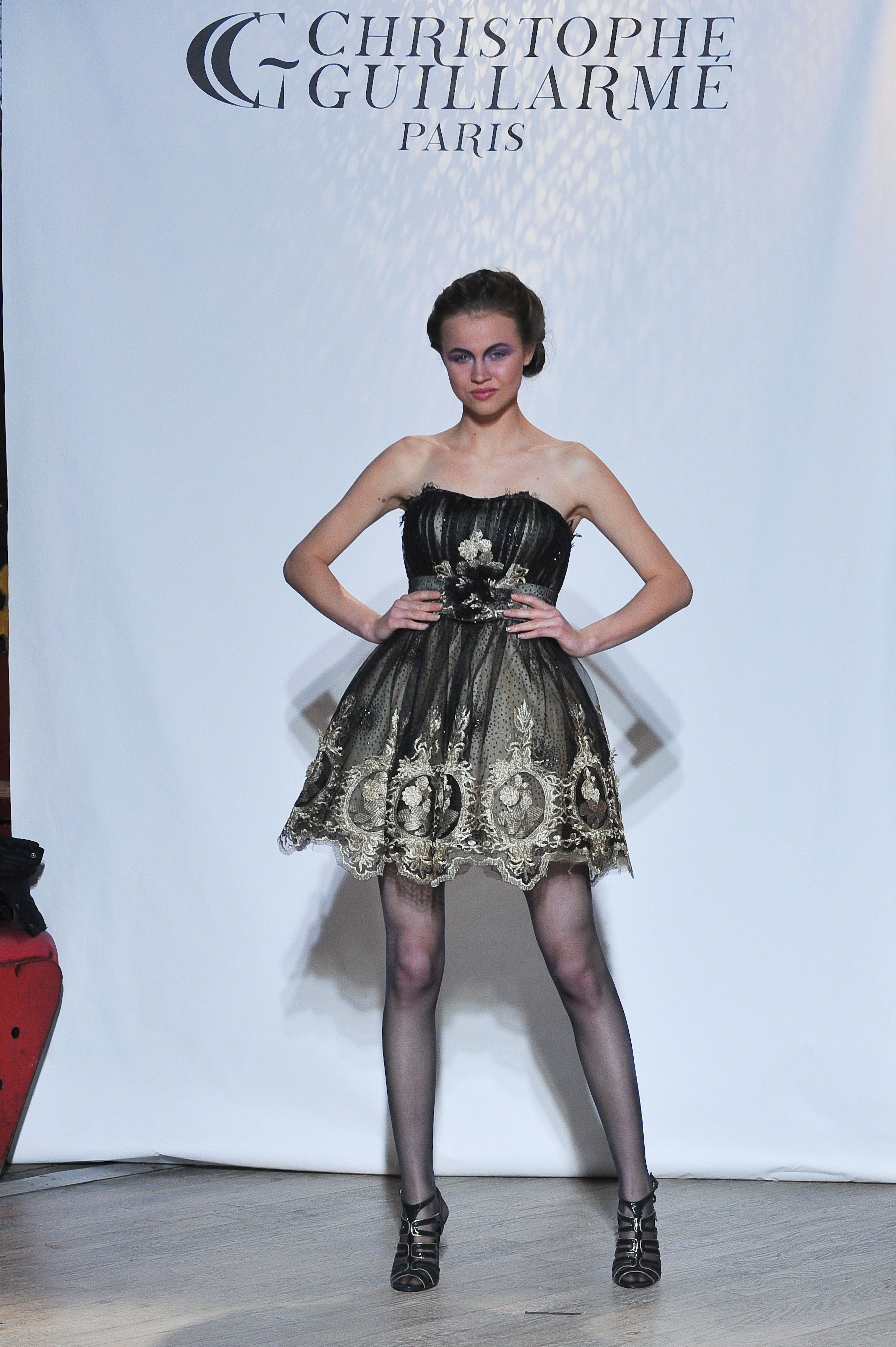 Le créateur Christophe Guillarmé a présenté sa nouvelle collection intitulée « Bohème », dans un lieu Parisien culte le Balajo dans le cadre du calendrier de la Fashion Week de Paris. Les personnalités et amies de Christophe Guillarmé se sont déplacées pour l’occasion, La pétillante animatrice de W9, Karima Charni dans une mini robe en jersey de soie rouge, La comédienne Joséphine Jobert qui avait d’ailleurs représenté Christophe pour le défilé des 20 ans