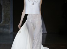 Venus en vogue comme une ode à la féminité contemporaine. Les silhouettes masculin féminin se conjuguent avec des éléments sensuels. Opposant la flamboyante des tons natures à la modernité des formes géométriques taillées au laser. Les influences nomades s’opposent à la modernité citadin proposant à la femme Kaviar Gauche un voyage initiatique et sensuel.