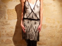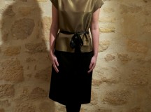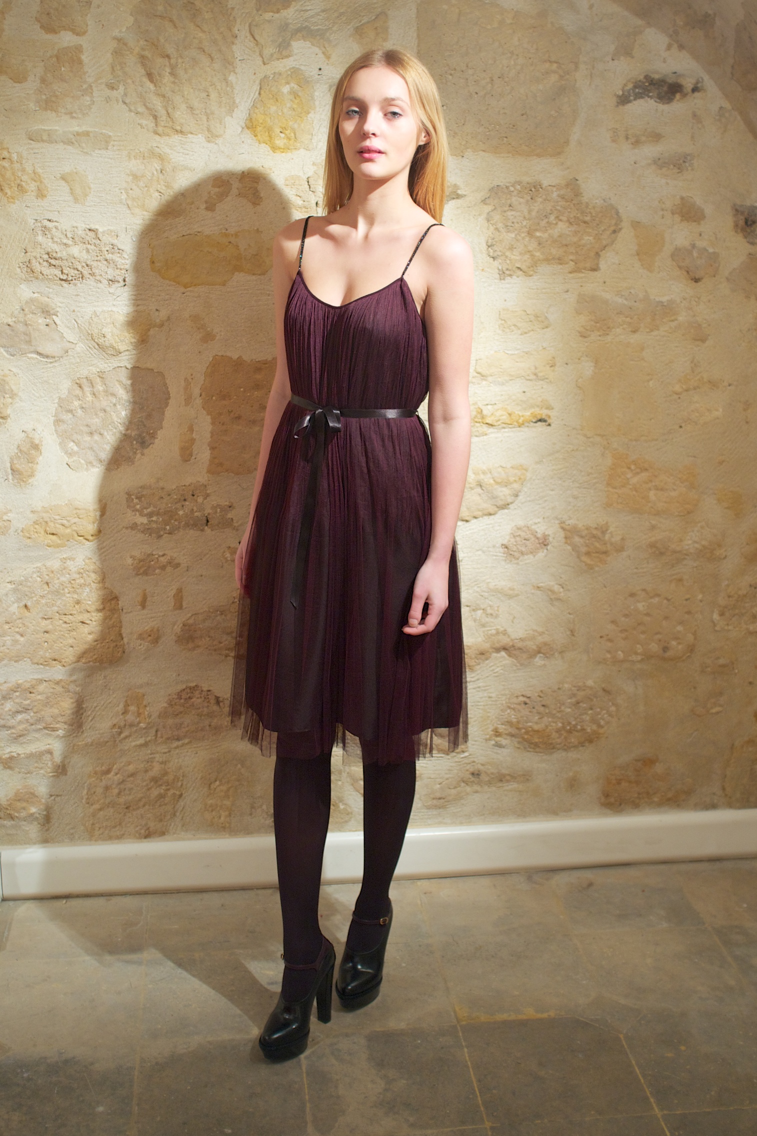 Les robes, les jupes et les tops sont coupés dans des matières nobles, comme le cachemire, le crêpe de laine, le tulle de soie, le satin de soie, la mousseline de soie et la dentelle de Calais.