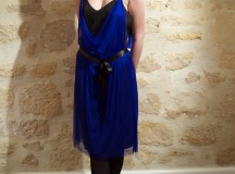 La silhouette longiligne est mise en valeur par des lignes fluides, et de subtiles drapés, rehaussés par la coupe en biais, la taille par des rubans et des ceintures en cuir raffinés.