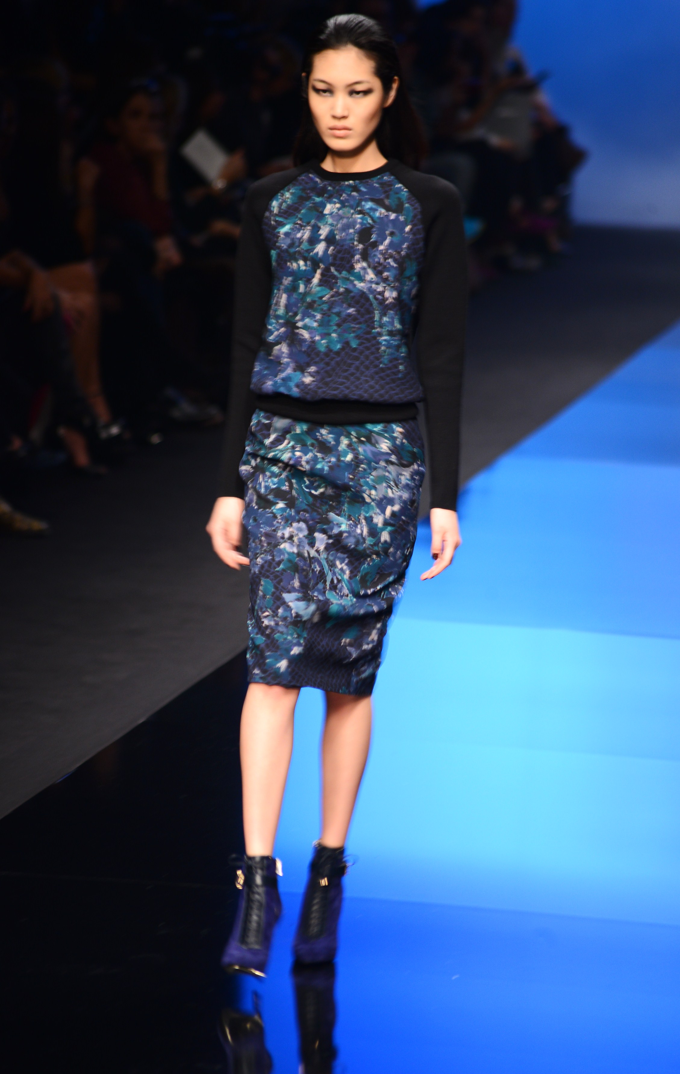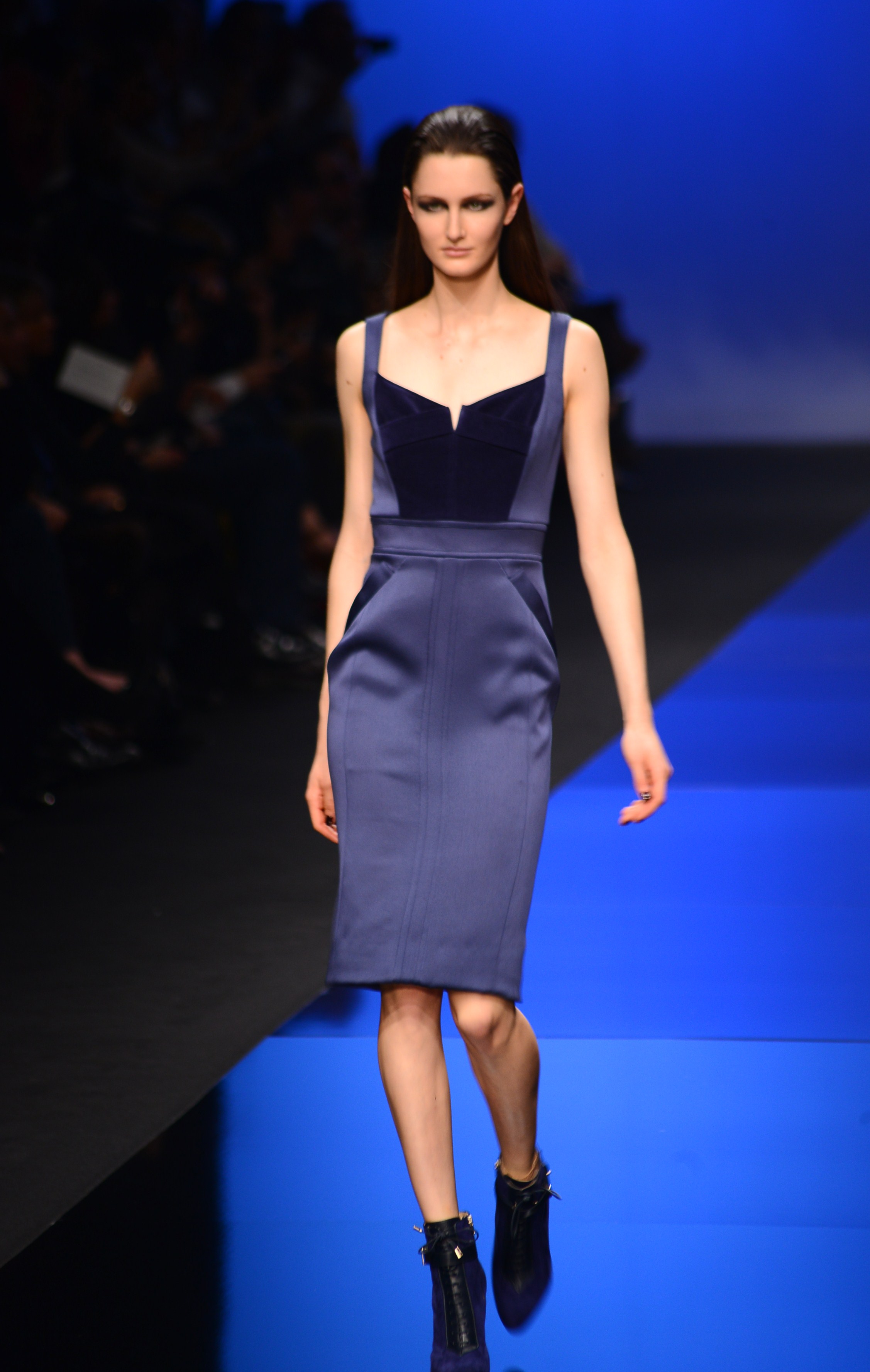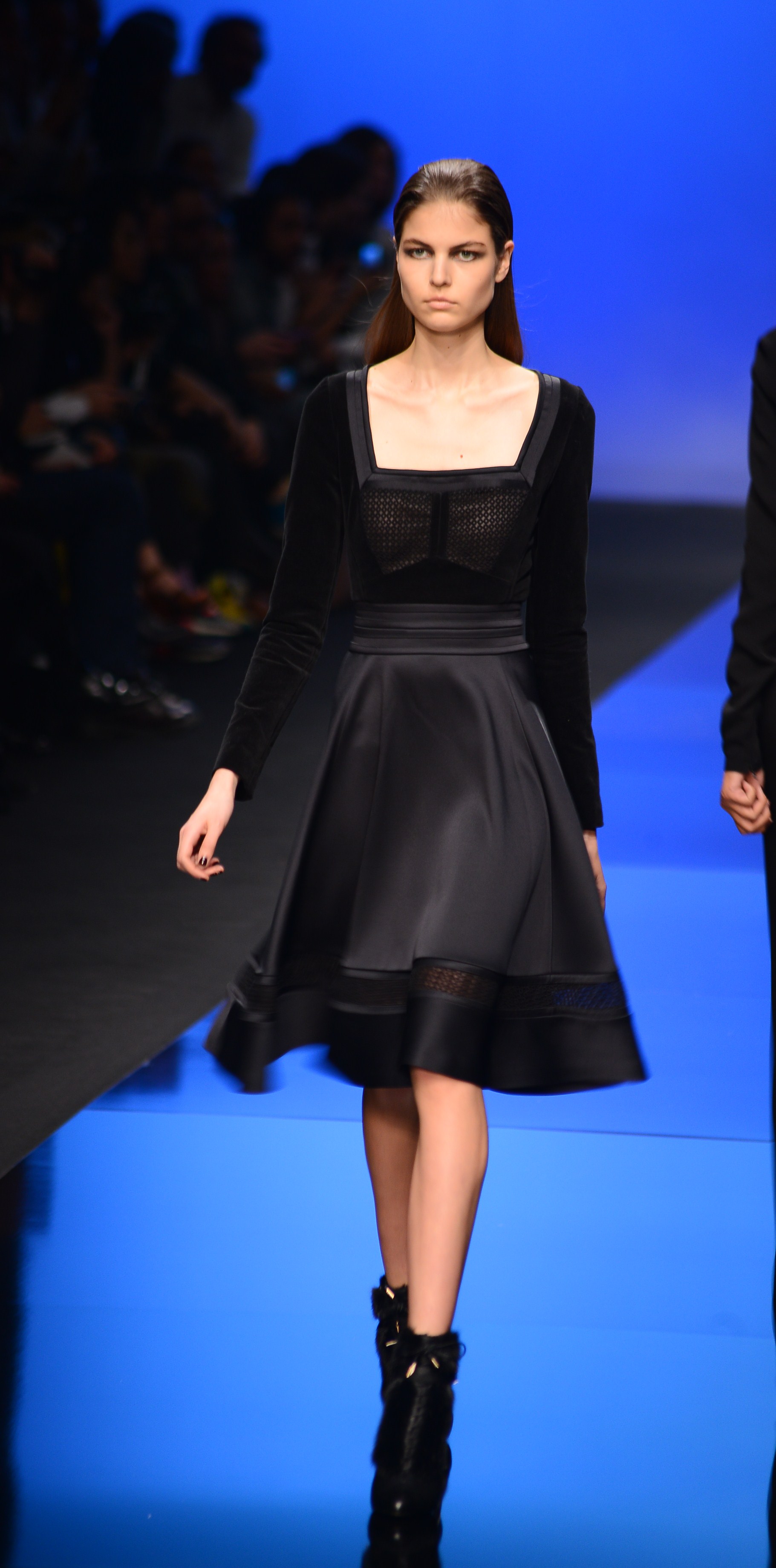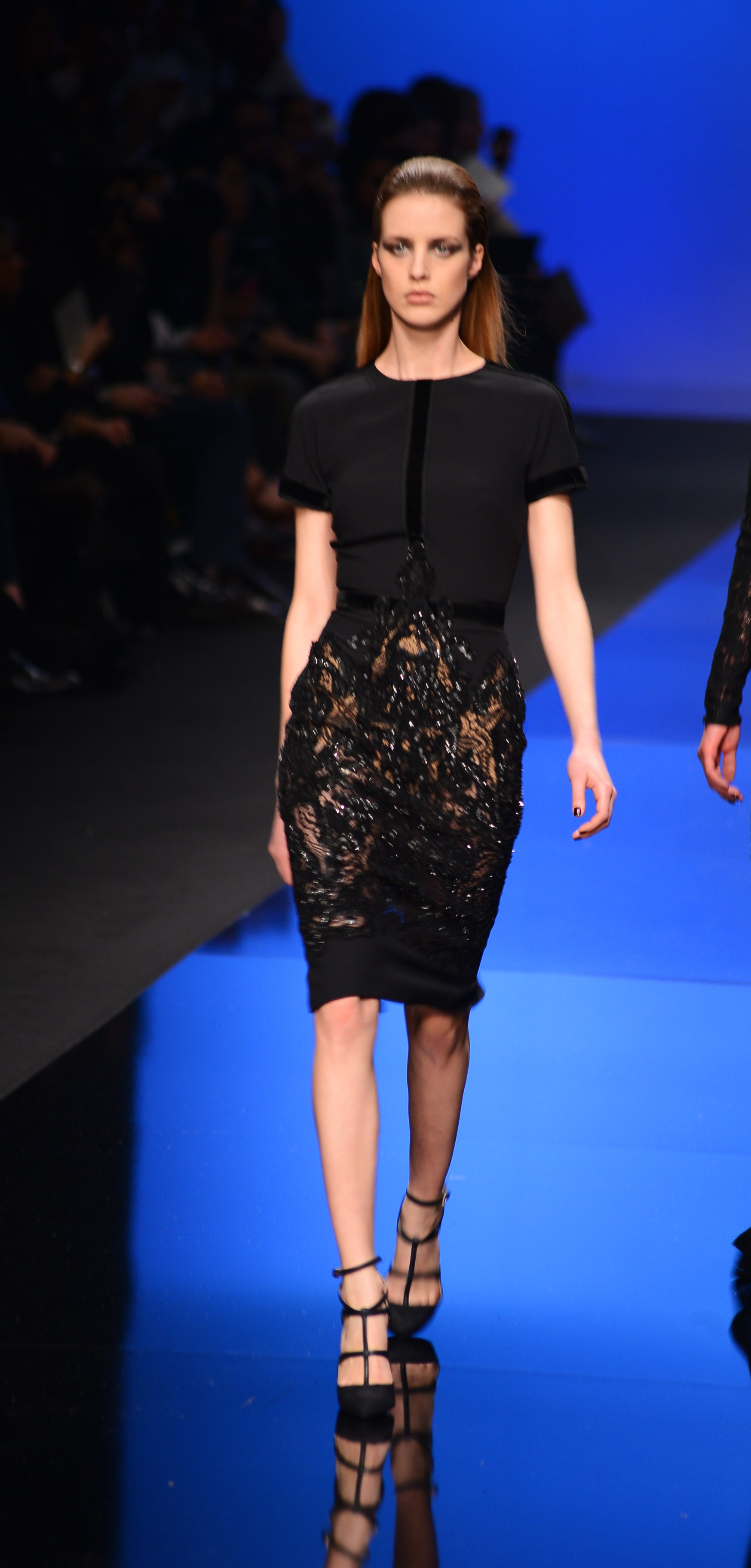 La longueur est de rigueur, nous sommes bien en présence d’une collection d’hiver, et le mouvement s’en retrouve souligné de façon quasi-chorégraphique. Les vêtements en sont d’autant plus dramatiques et théâtraux car cette longueur si chère à Élie Saab dégage une aura de sophistication et de noblesse monstre, comme venant d’une autre époque, une époque de glamour.