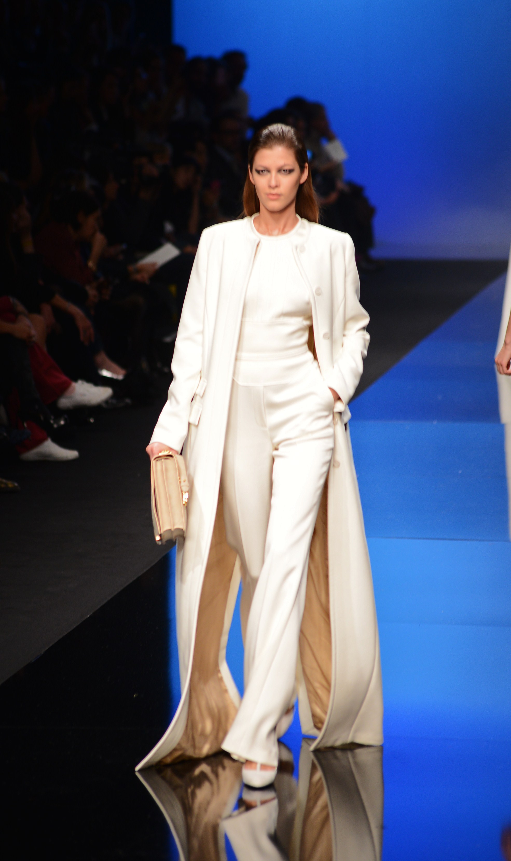 Élie Saab n’a plus à prouver qu’il est un génie de l’evening wear, ses robes mettent en valeur le corps féminin d’une façon presque magique, ses créations sont carrées, parfaites, comme envoyées du ciel. Les looks blancs ferment le défilé. Un blanc lumineux et virginal, pur et symbole des différentes émotions et attitudes qu’embrasse la femme Élie Saab.