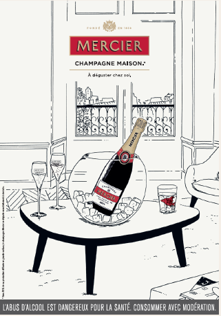 Un look contemporain teinté de vintage, une campagne de communication décalée, une collection de vins qui exprime la gourmandise et la fraîcheur, le Champagne Mercier se modernise en puisant dans ses gènes pour exprimer tous les instants informels et spontanés qu’il souhaite accompagner. Loin des codes académiques habituellement attribués au Champagne, Mercier privilégie aujourd’hui l’humour et l’impertinence sous les traits d’un jeune illustrateur, issu de la skate culture, David Lanaspa. Proche des us et coutumes de la génération Y, le Champagne Mercier se veut authentique et accessible, audacieux et spontané.