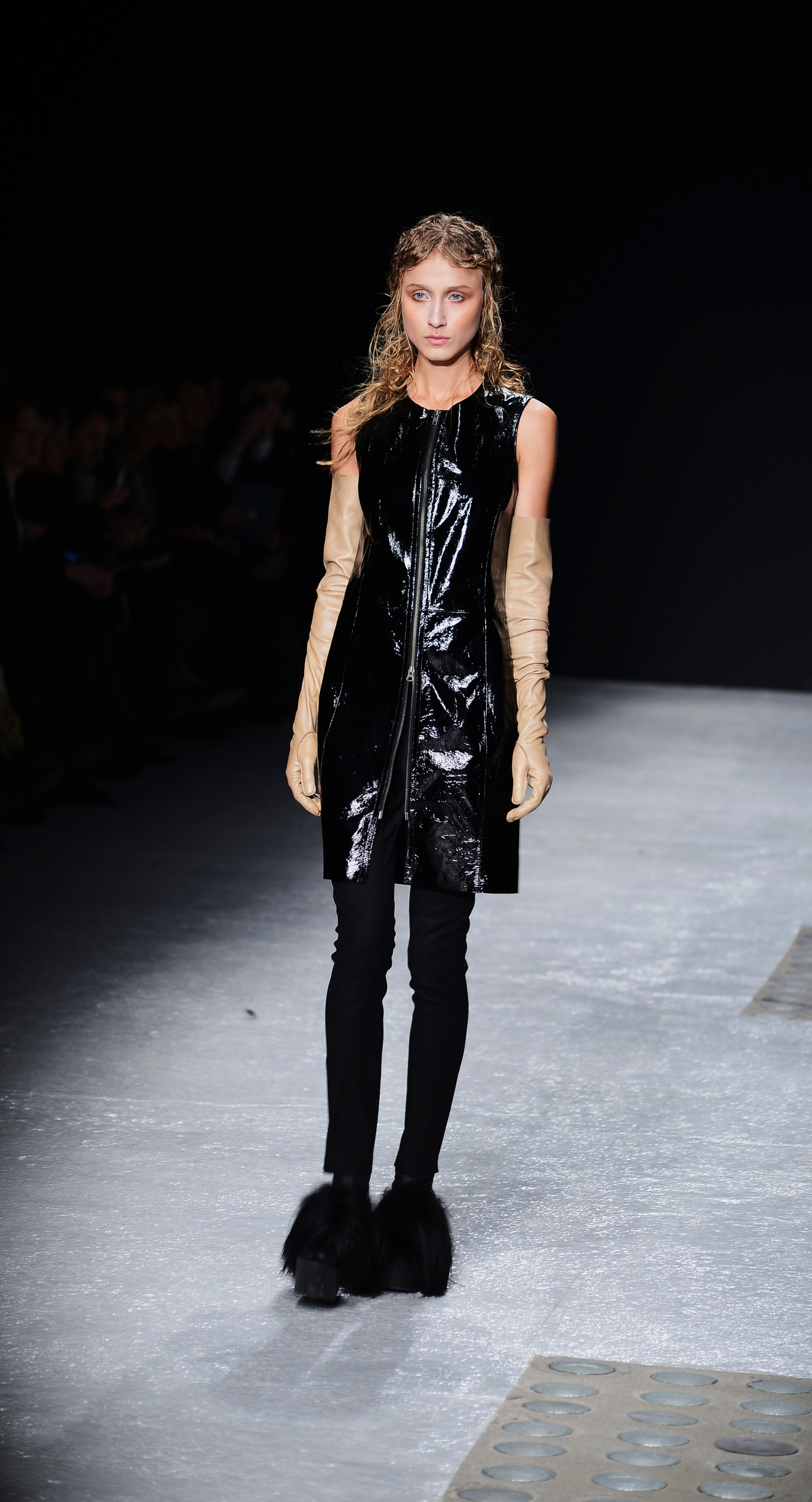 Mélange de matières : voici comment résumer en deux mots la collection automne/hiver 2013/2014 du duo Peachoo+Krejberg. D’ailleurs on a quasiment l’impression que ce sont deux collections qui nous ont été présentées au sein du même défilé : une pour la journée, l’autre pour le soir.