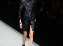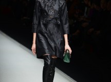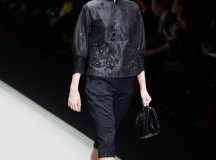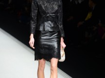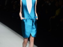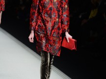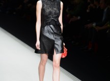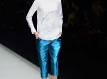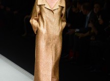 La soie est délicate chez Shiatzy et elle est utilisée comme base solide de la collection. Des nœuds, des plissés, des broderies….la soie peut être travaillée et retravaillée de façon infinie et la designer l’a bien compris. L’exécution est poétique et rappelle par moment ses collections passées avec des looks très jeunes (minijupes, nœuds, …) et à d’autres démontrent la nouvelle direction prise par la créatrice.