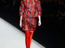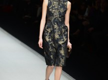 La fourrure est présente sur certains looks, les imprimés d’inspiration asiatique seront rares, les imprimés ne sont pas la fondation de cette collection. Les techniques de drapés on ne peut plus présentes rappellent par moment Marchesa.