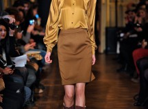 La jupe crayon est revisitée et portée avec des bottes au genou, les blouses sont volumineuses et romantiques lorsqu’elles sont associées aux pantalons taille-haute.