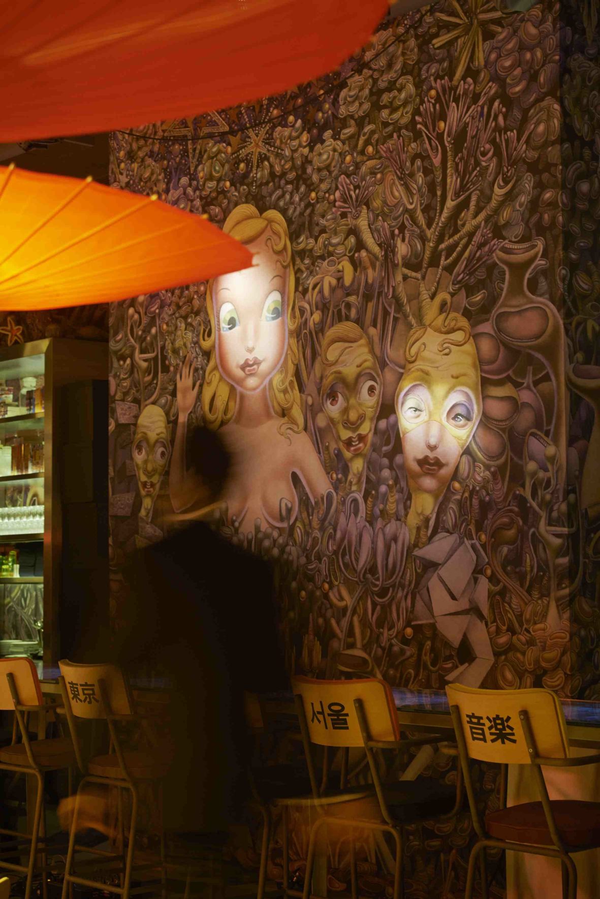 Miss Kō est un objet de curiosité autant qu’une invitation à la curiosité. Du décor à la carte, tout ici la stimule et l’interpelle. Le lieu est polymorphe, pensé pour devenir un happening perpétuel. Une galerie d’impressions filantes, de rencontres et de moments intenses.