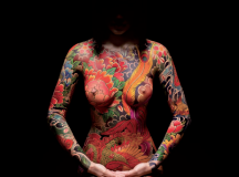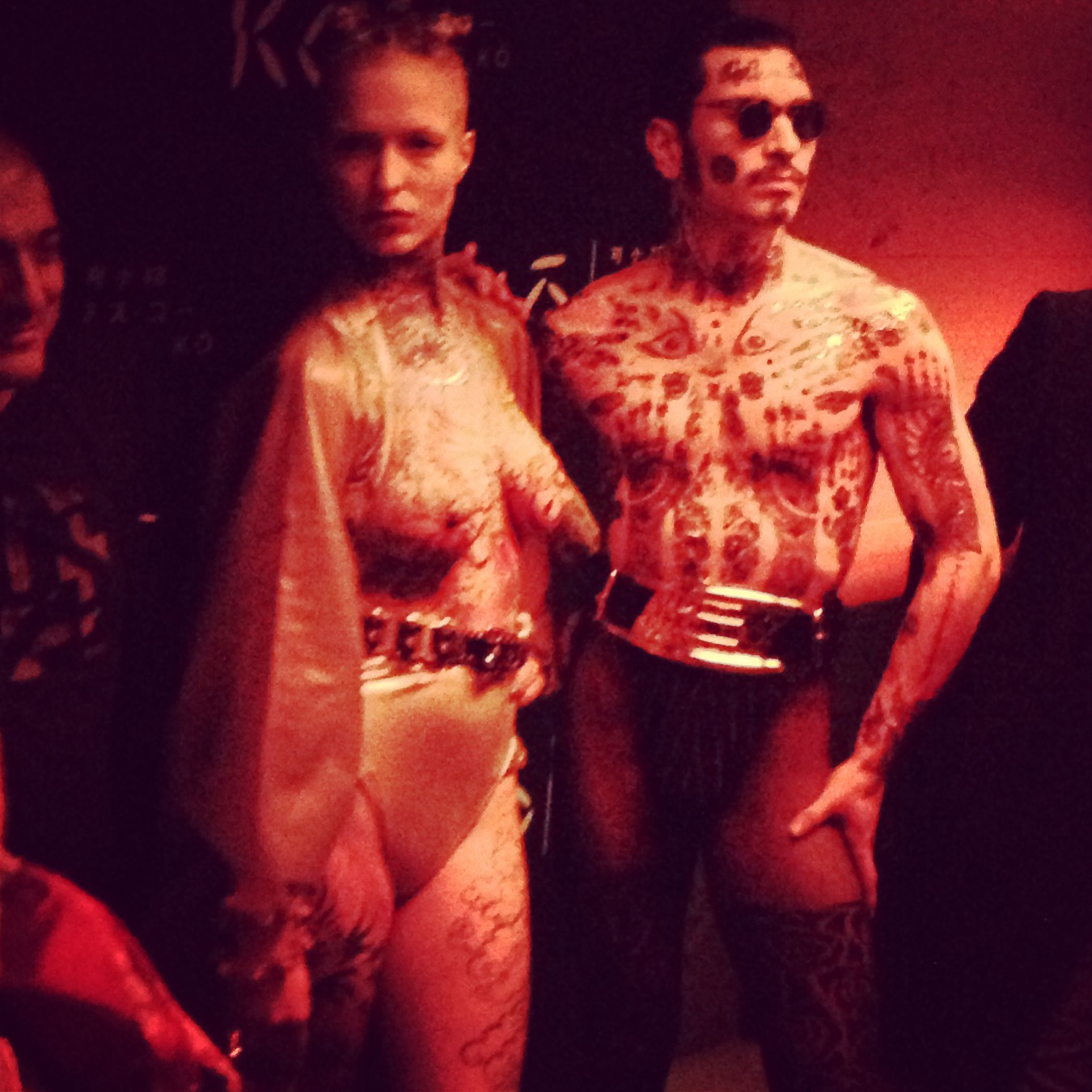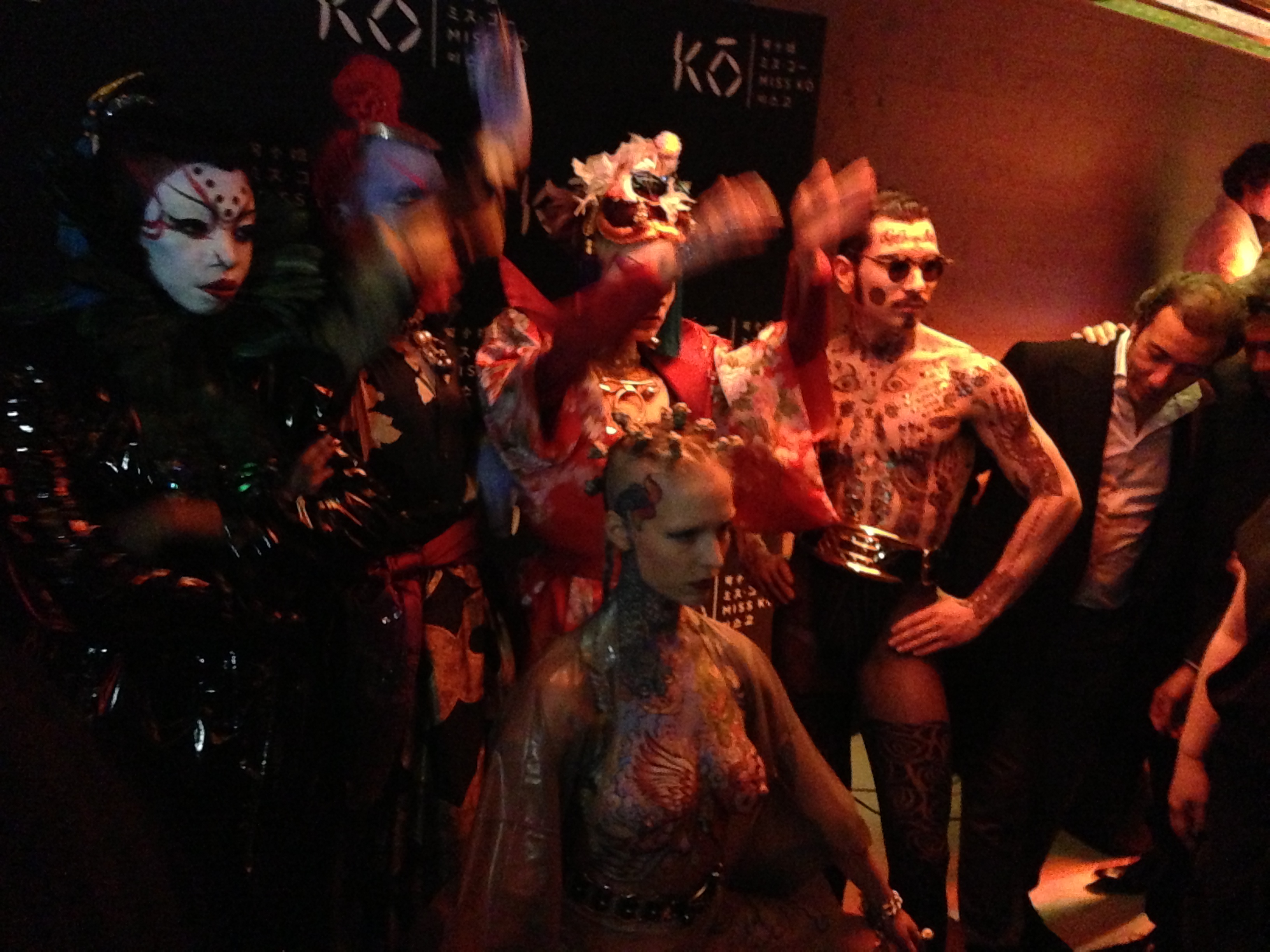 Une eurasienne sans visage, qui se dévoile dans la nudité pudique d’un corps entièrement tatoué. Miss Kō est un mystère qu’estompe la mise en scène orchestrée par le designer. Il développe autour d’elle un environnement total qui mobilise les sens et stimule l’imaginaire.