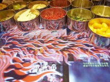 La colonne vertébrale de l’espace est un double bar d’écrans d’une longueur totale de 26 mètres. Identitaire du lieu, incarnation du bouillonnement du lieu, partage convivial et éblouissement hypnotique, c’est une création originale de Philippe Starck qui juxtapose à sa surface des centaines de moniteurs diffusant en continu les journaux des chaînes asiatiques, scandés par le passage nonchalant d’un dragon réalisé par le label Dalbin. Une oeuvre vidéo à part entière où chaque programme devient le pixel d’une vision d’ensemble attentivement composée par le designer.