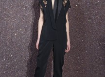 Dentelle et sportswear, à priori tout les opposaient. Pourtant Anne Valerie Hash réinvente pour nous la femme citadine. Le smoking se réinvente brodé à l’extrême et porté avec des baskets. Le tailleur est orné de longues traines qui lui donne un aspect glamour. Les tenues sont déstructurées, le noir est de rigueur à quelques exceptions. Mention spéciale aux broderies magnifiques.