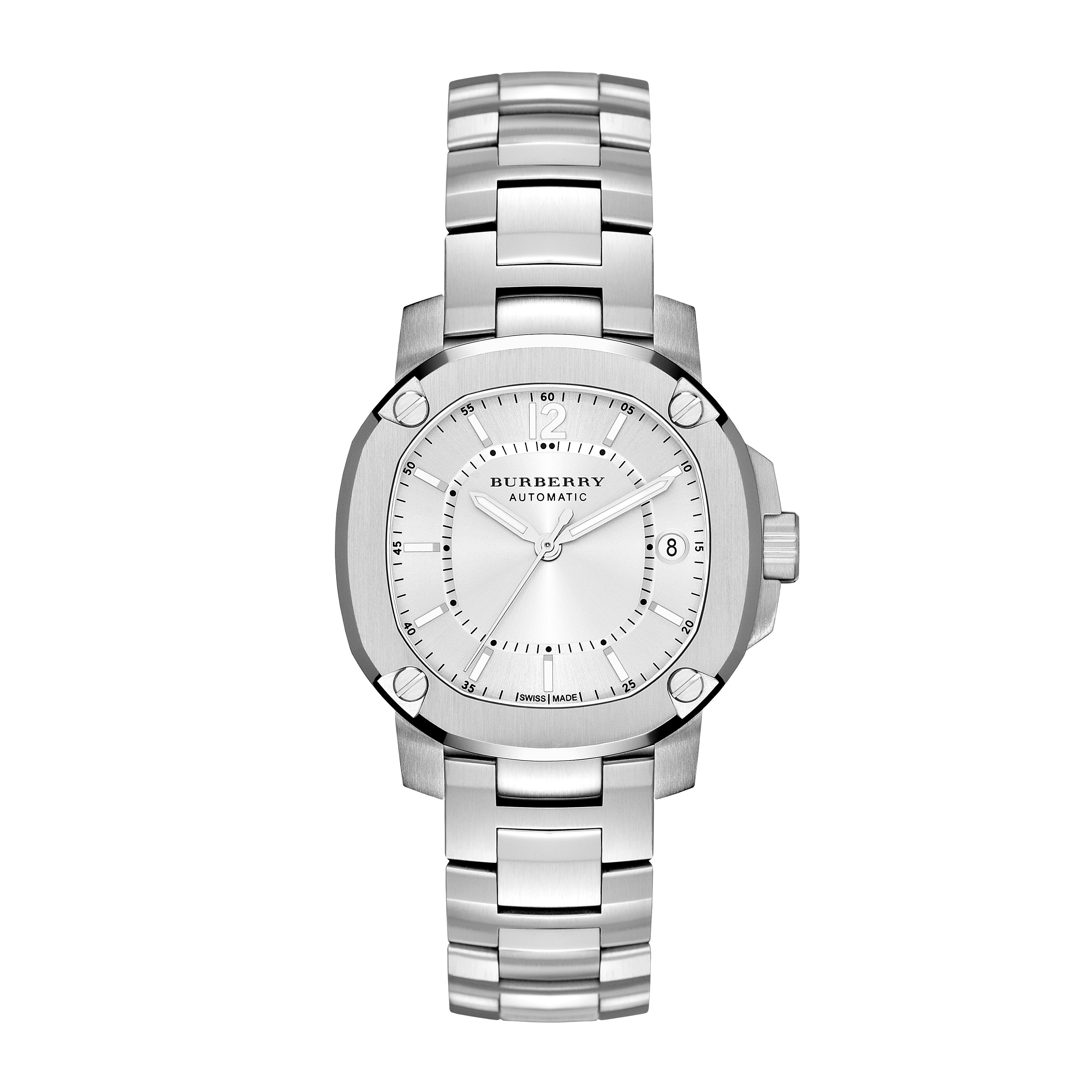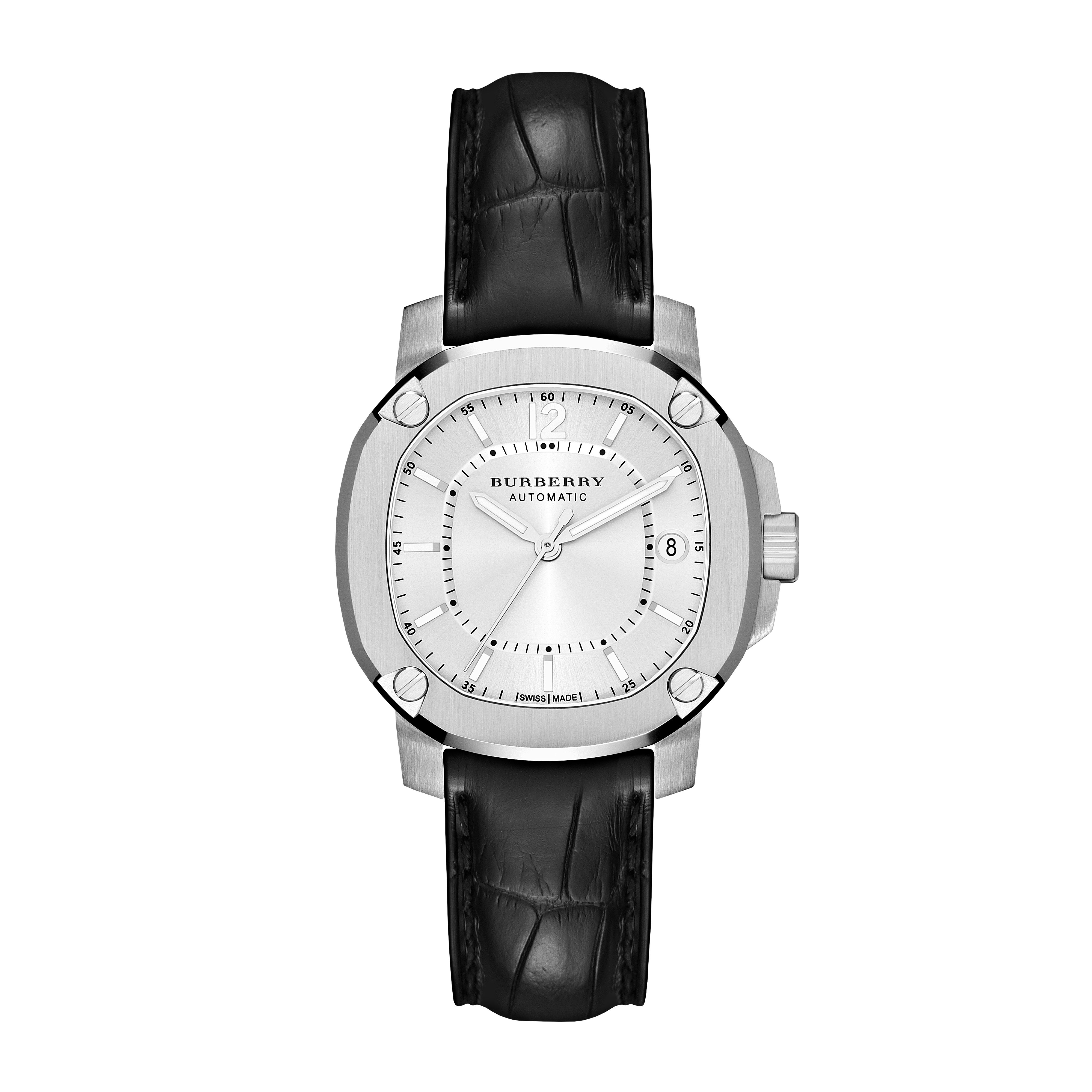 Cadran avec logo Burberry appliqué et cadran frappé du logo Burberry et de la signature « Automatic »