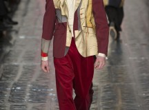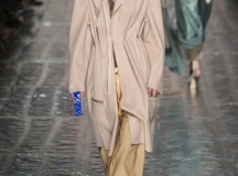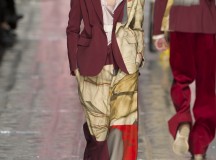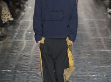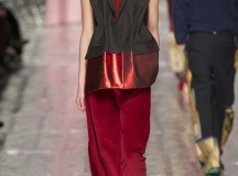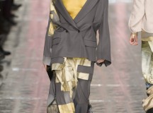 Ce défilé se sépare en plusieurs parties à la manière d’une pièce de théâtre en plusieurs actes et on peut donc voir que différents thèmes de couleurs sont abordés : Noir, bleu, jaune moutarde, rouge, beige, gris. Et autour de chacune de ces couleurs se distille la collection.