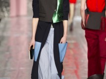 Acne Studios, c’est l’éloge de la modernité avec des coupes strictes et disciplinées. Un paradoxe, me direz-vous, mais c’est un défi que relève avec brio la maison suédoise (j’ai ici à l’esprit sa collection pre-fall 2013 qui est tout bonnement à tomber). Pour cette saison, le layering est roi chez Acne. Les pièces se marient de façon cohérente et ne sont pas en compétition les unes avec les autres. Ainsi sur chaque look, on retrouve une pièce forte accompagnée de basiques.