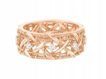 - BAGUE BOIS DE ROSE – OR ROSE ET POINTES DIAMANTS