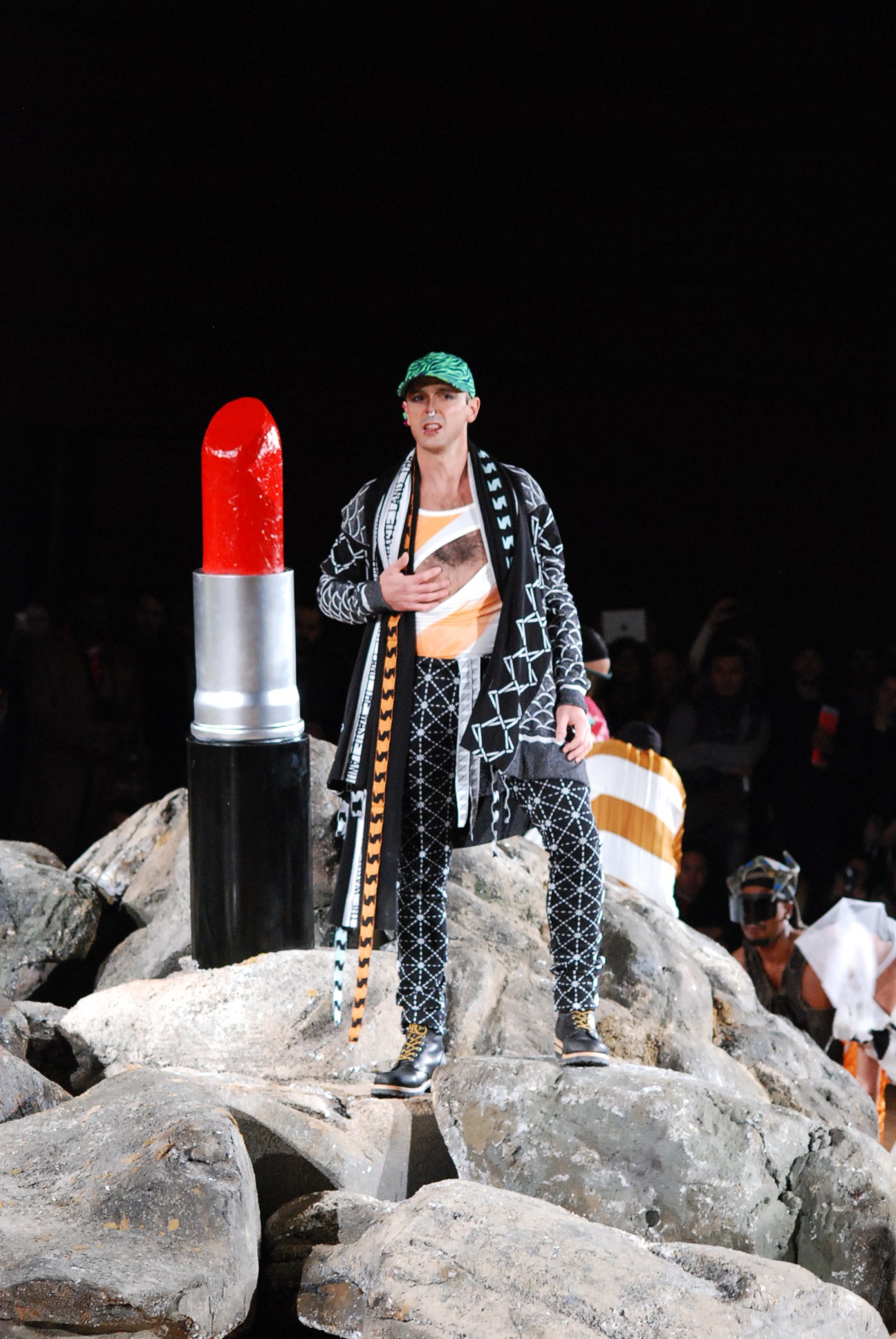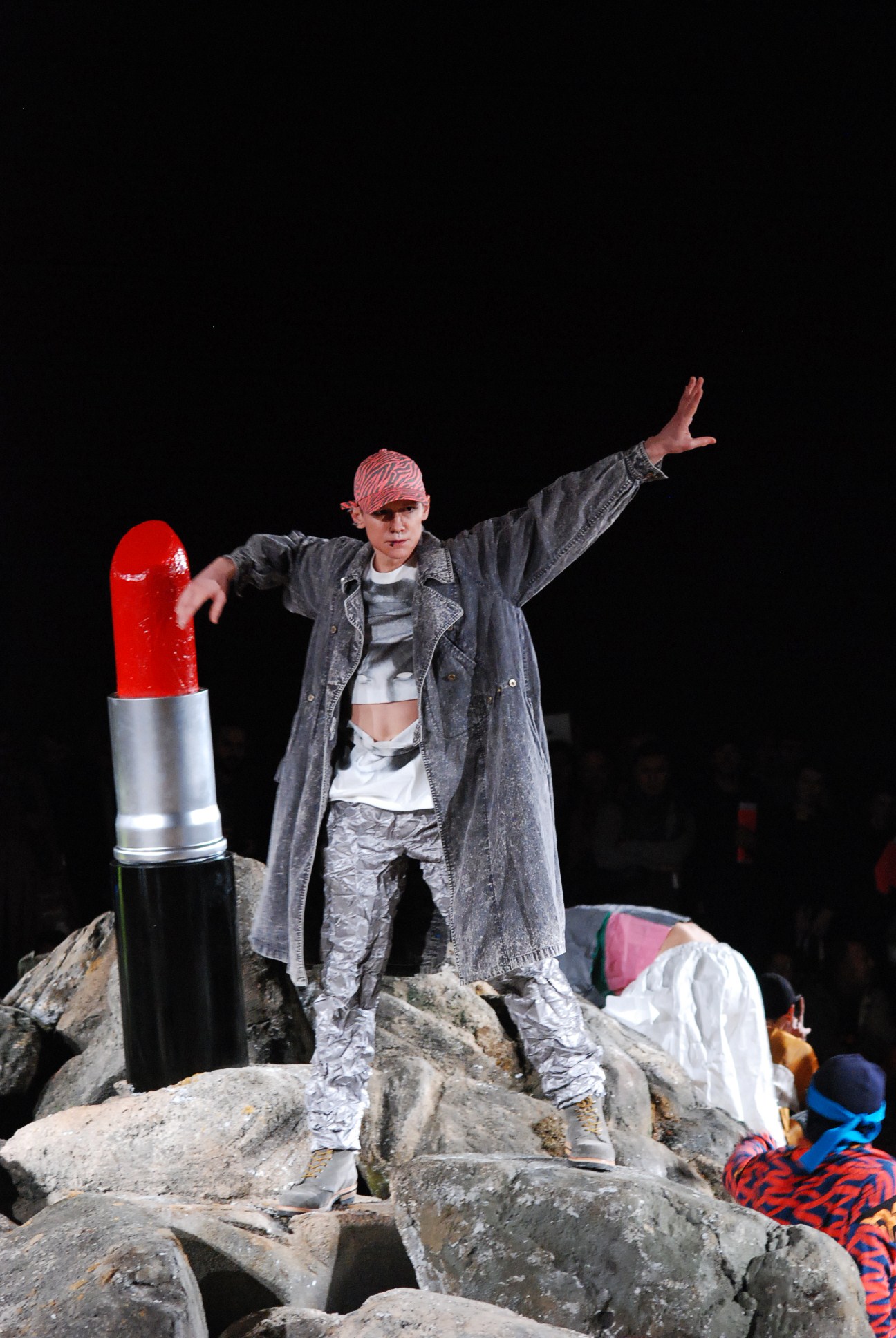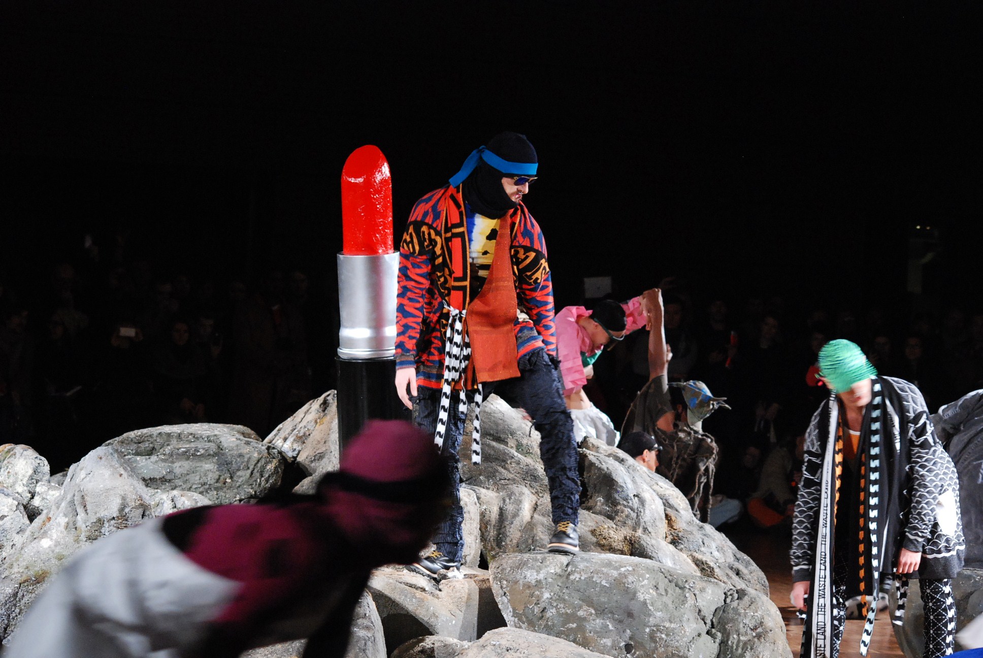 A de nombreux égards, un défilé peut s’apparenter à un spectacle : un public, un podium qui fait office de scène, des photographes et des personnes sous le feu des projecteurs. Bernhard Willhelm, a choisi d’effacer la fine frontière qui existe entre les deux et présenter sa collection automne hiver dans le cadre d’une performance/spectacle.