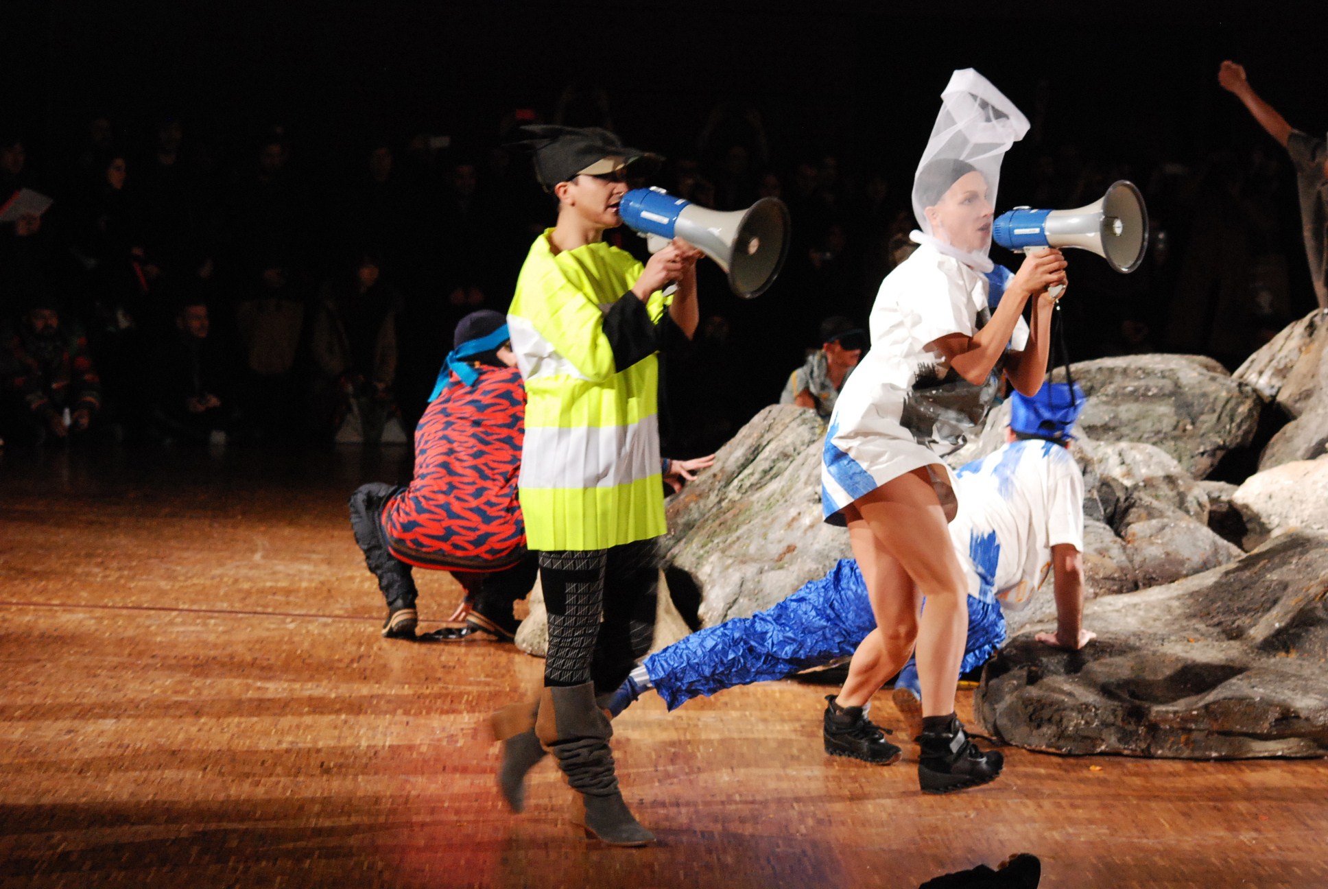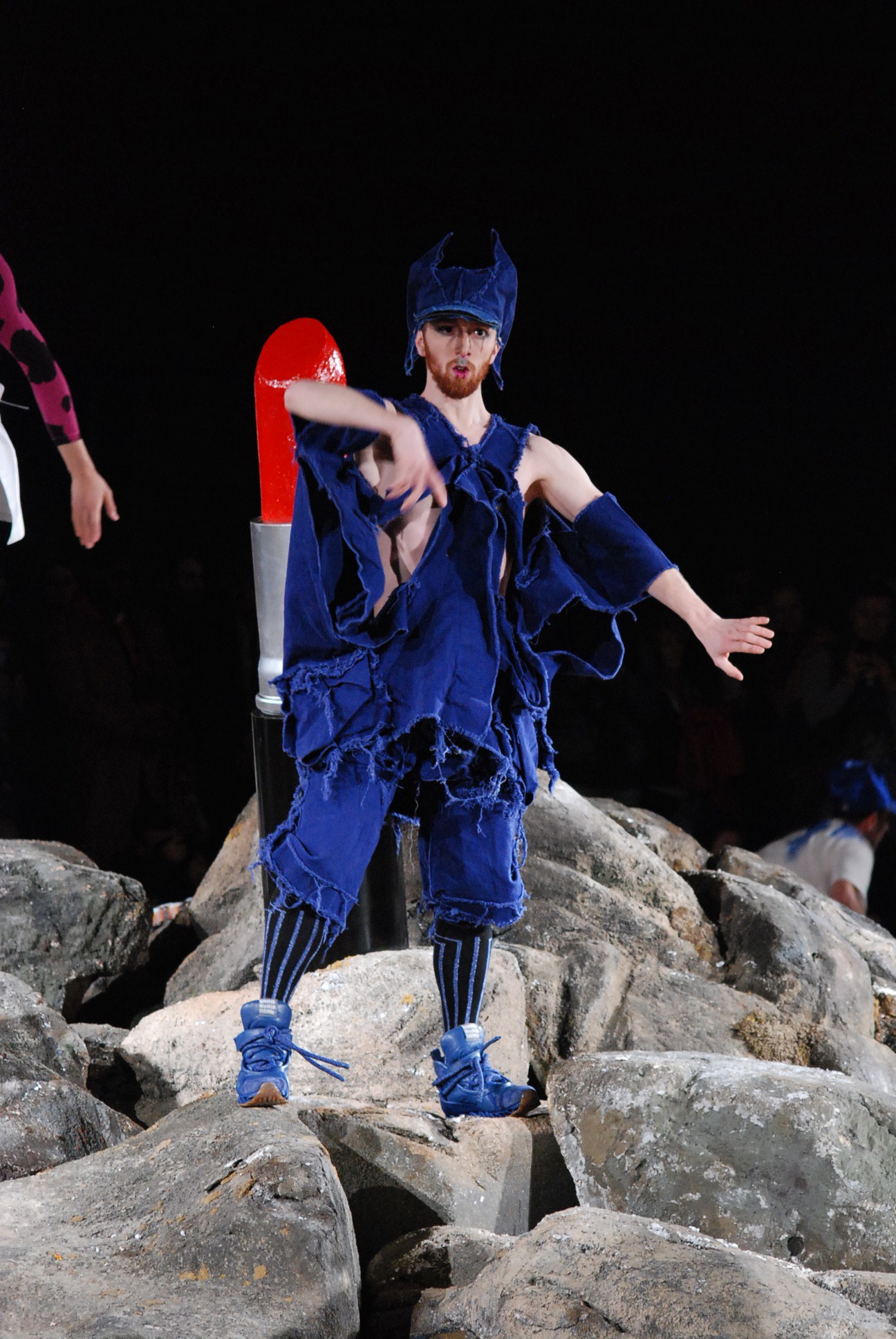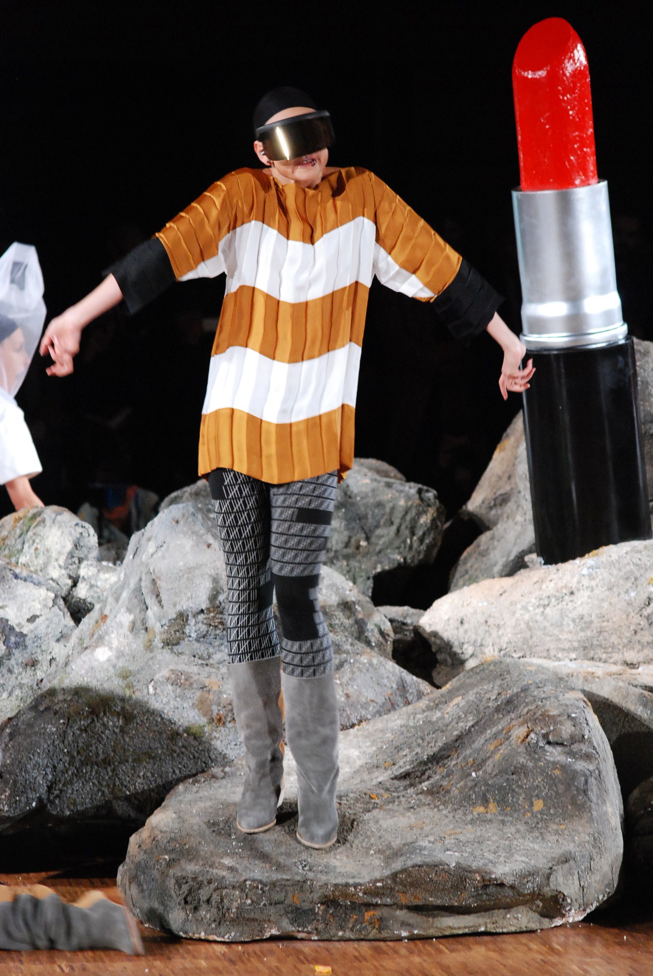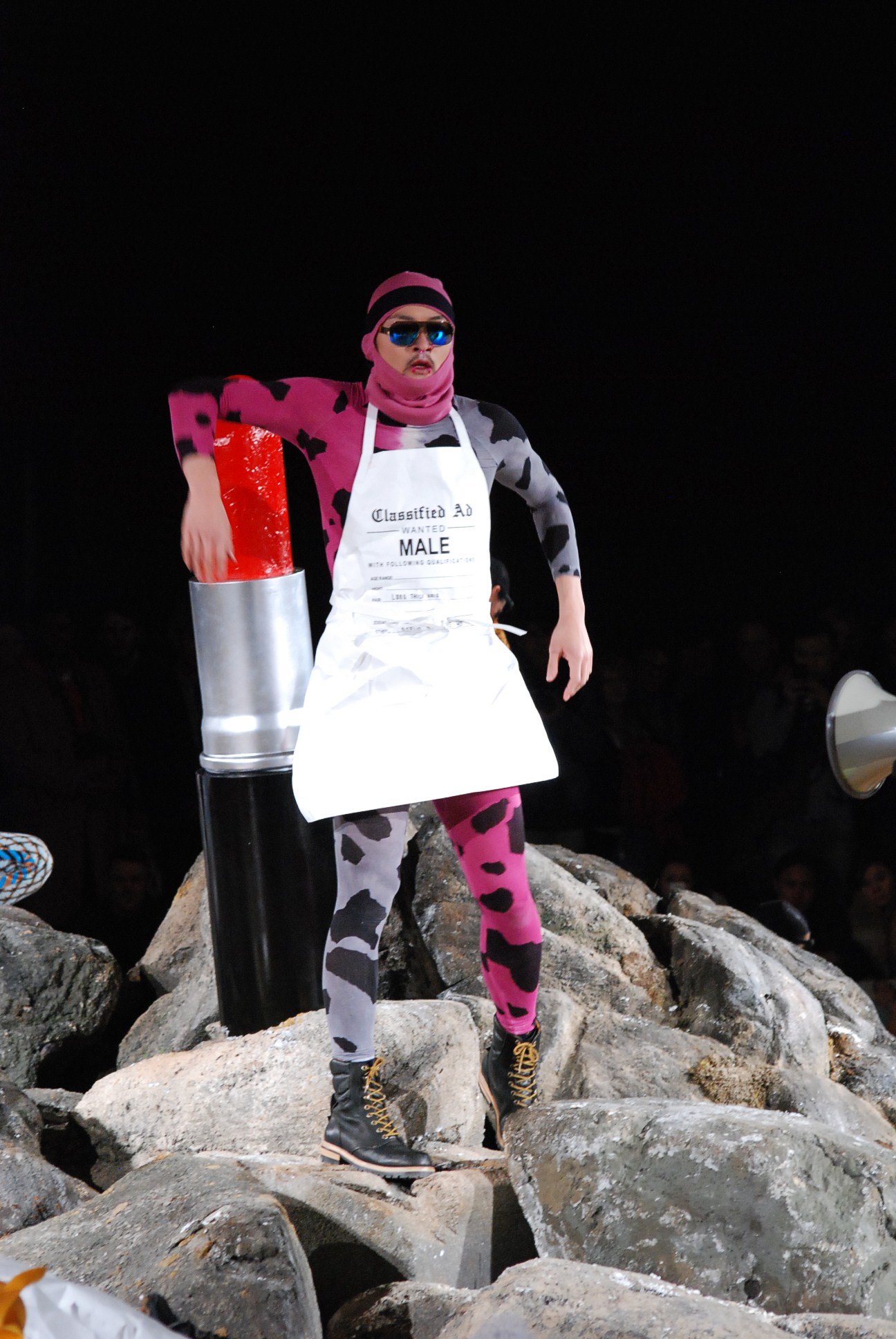 A de nombreux égards, un défilé peut s’apparenter à un spectacle : un public, un podium qui fait office de scène, des photographes et des personnes sous le feu des projecteurs. Bernhard Willhelm, a choisi d’effacer la fine frontière qui existe entre les deux et présenter sa collection automne hiver dans le cadre d’une performance/spectacle.