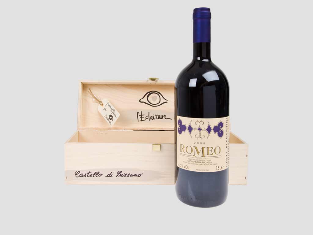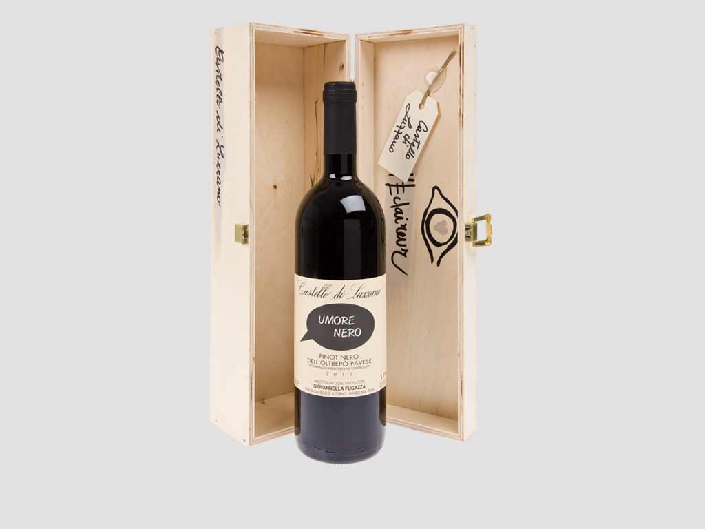 Giovannella Fugazza est une véritable personnalité dans le monde viticole, une Italienne passionnée qui a fait de sa touche féminine un signe distinctif reconnu et apprécié par les connaisseurs. Elle cultive les cépages Barbera, Bonarda, Merlot, Chardonnay et Pinot Noir, mais aussi Malvasia, du Cabernet Sauvignon et du Gutturnio dans un domaine qui s’étend sur 110 hectares, tout en respectant leur histoire et de leur typicité. Giovannella Fugazza animée par la passion de l’art de vivre et sensible à l’image de ses bouteilles y consacre aussi un soin particulier. C’est donc tout naturellement que sa collaboration avec le concept store Parisien L’Eclaireur s’est faite, de cette union est né un produit exclusif et unique, une collection de boites au design graphique, de véritables écrins pour des bouteilles d’exception, portant toutes un nom poétique et une étiquette gracieuse.