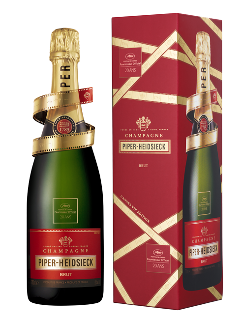 Pour célébrer ses 20 ans de partenariat sur la Croisette, la Maison revisite un de ses grands mythes. La bouteille de Piper-Heidsieck Brut est enlacée par un bracelet symbolisant le lien intime qu’elle tisse année après année depuis 80 ans avec le cinéma. Son étui est enlacé par une pellicule symbolisant le 7ème art.C’est le coffret Cannes VIP Edition