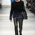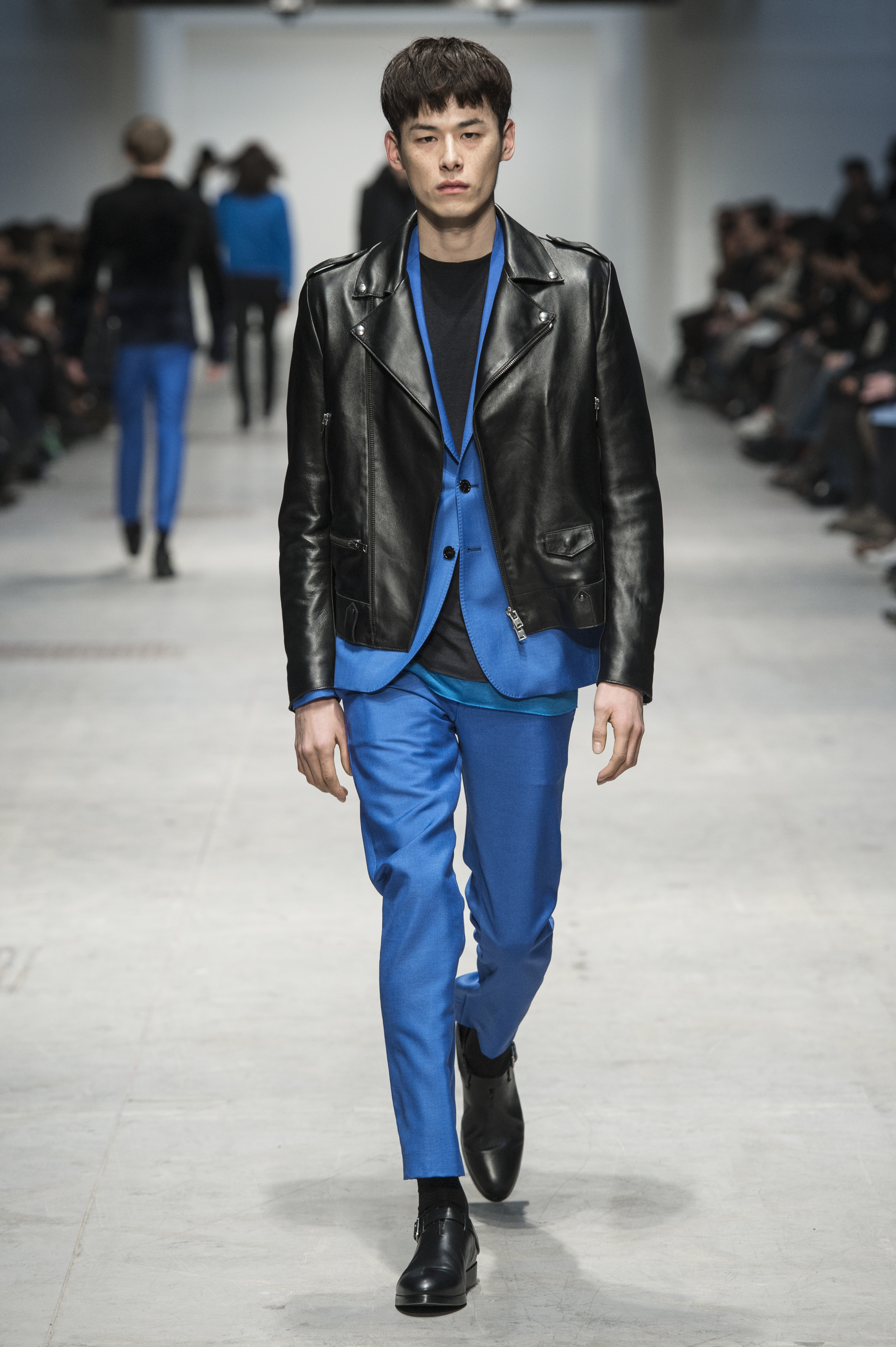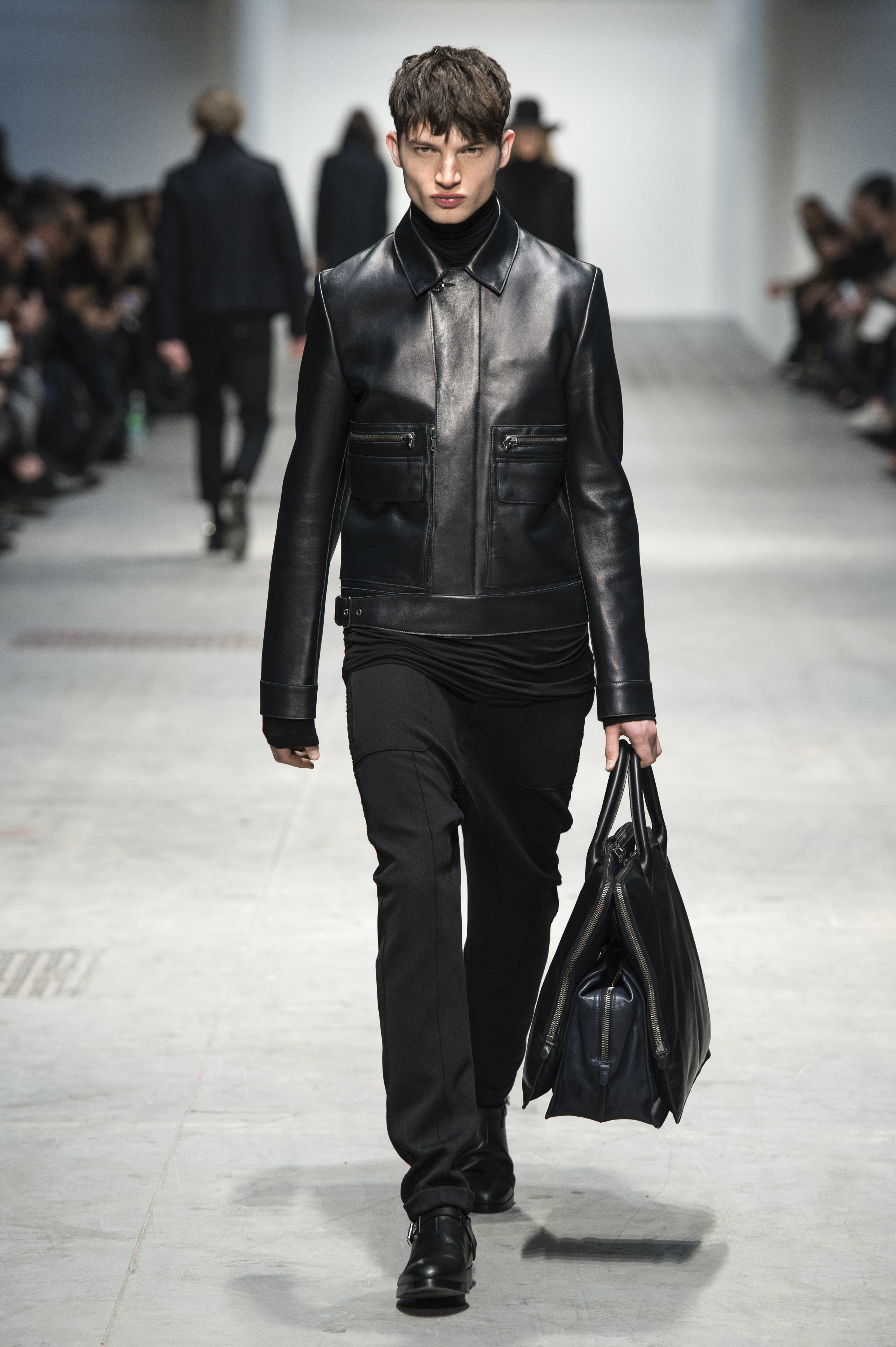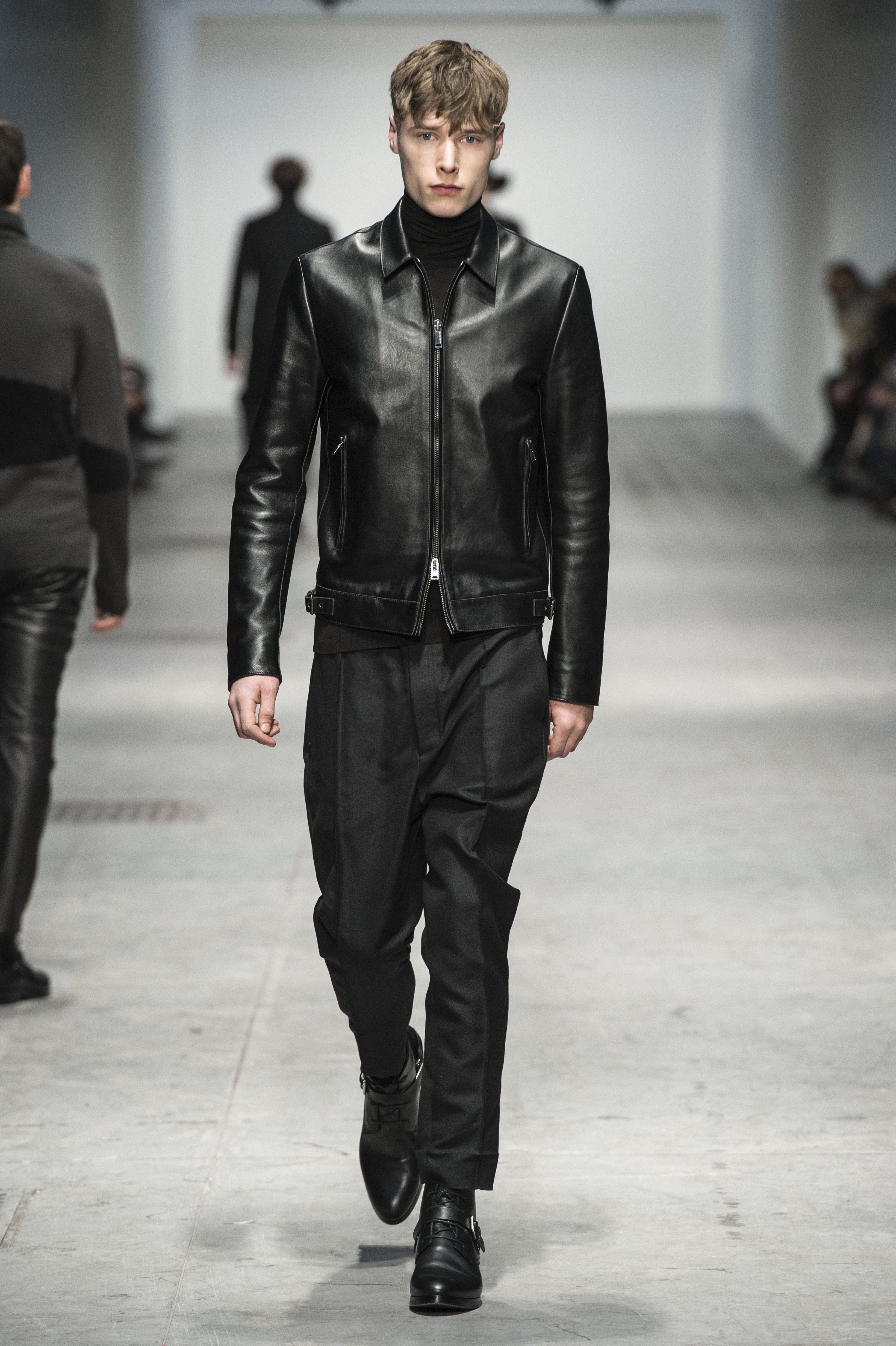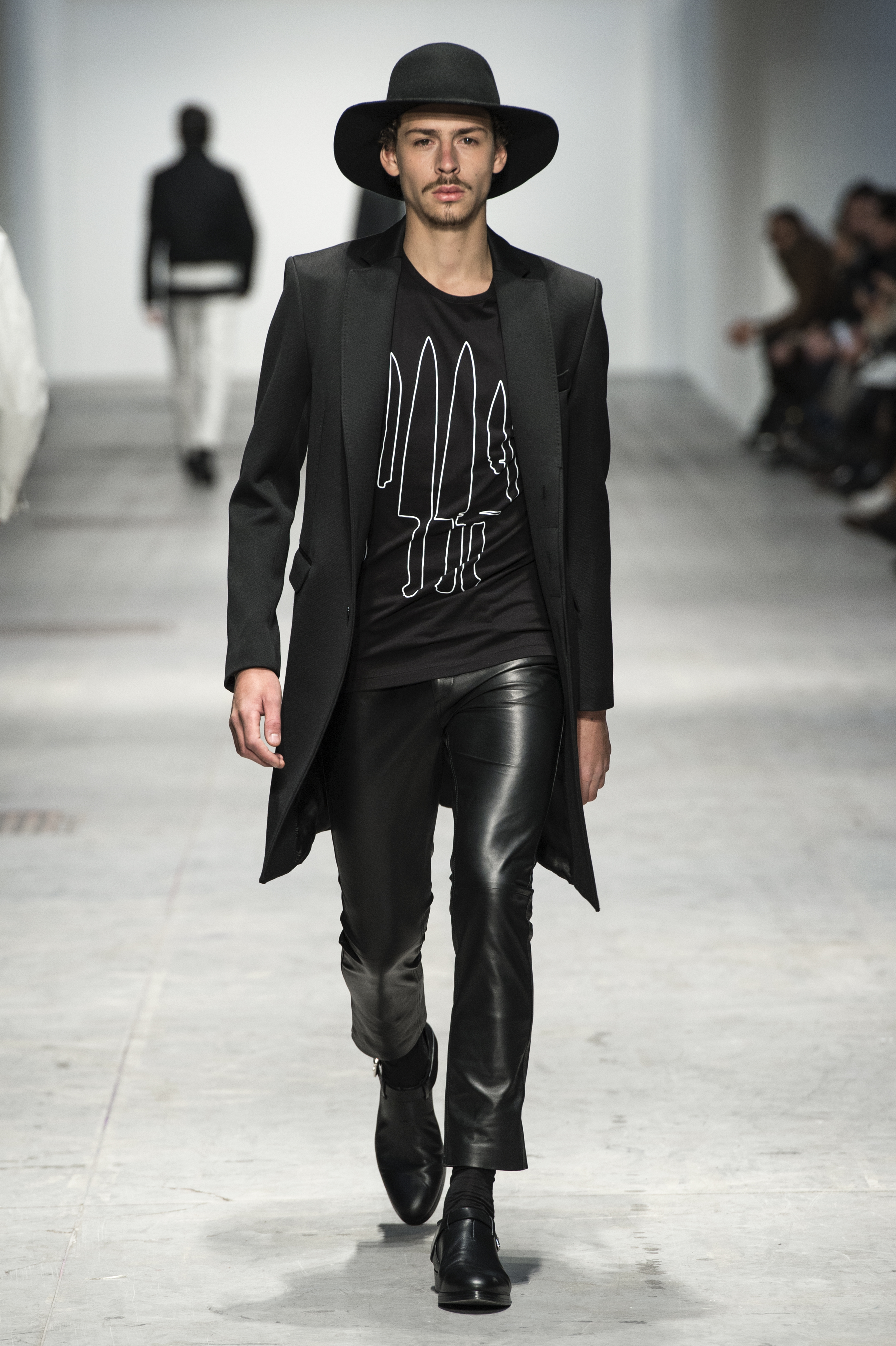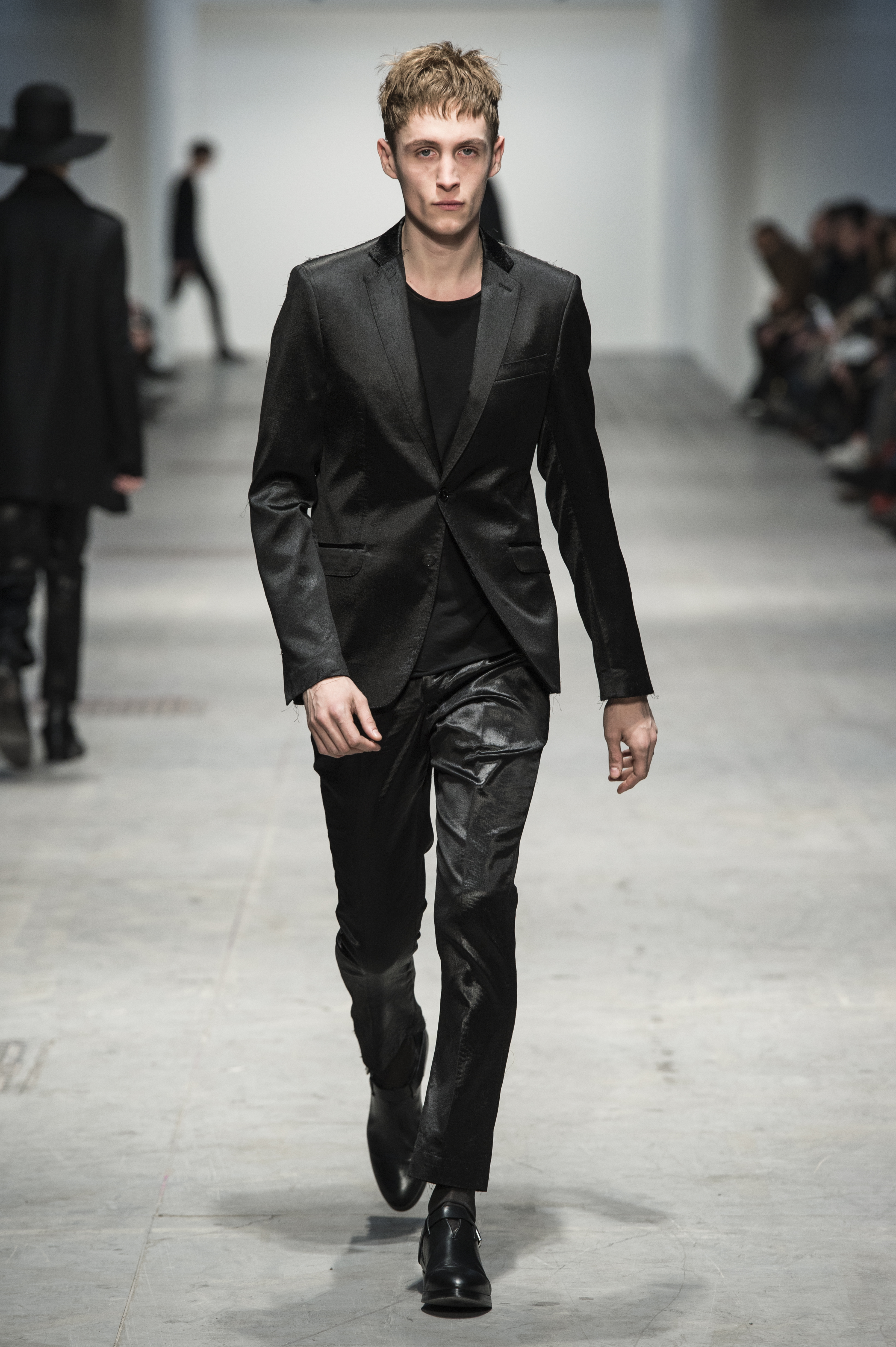 Alors oui le noir est omniprésent mais est-ce que cela rend la collection ennuyeuse ? Pas du tout! Le designer italien est passé maitre dans l’art subtil du mélange de matière et nous propose dès ses premiers looks de la laine mariée avec du cuir. Les zips sont partout, aussi bien sur les vestes que les manteaux et le créateur derrère CoSTUME NATIONAL s’amuse des longueurs et fait se recontrer ces deux pièces de la garde robe.