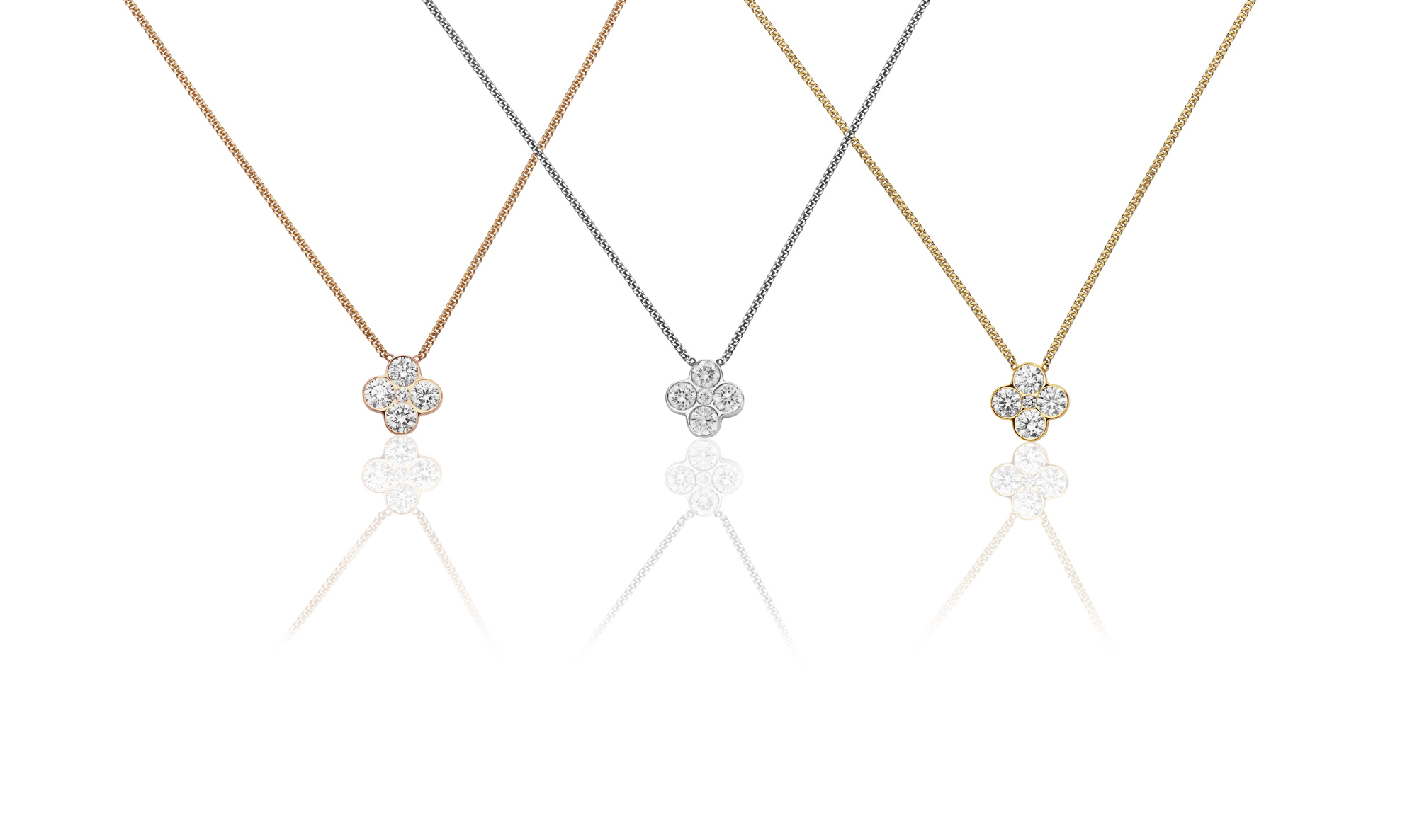 La collection Fleuri évoque le bourgeonnement, les jeunes filles en fleur, le renouveau. Le myosotis esquissé au nom italien évocateur « No ti scordar di me » signifie « ne m’oublie pas » c’est ça que Lucia Ariotti a voulu révéler, ne pas oublier notre part d’enfant, la jeune fille que nous sommes ou qui sommeille en nous. Un ligne déclinée en bague, collier et bracelet, or jaune, or blanc et diamants.