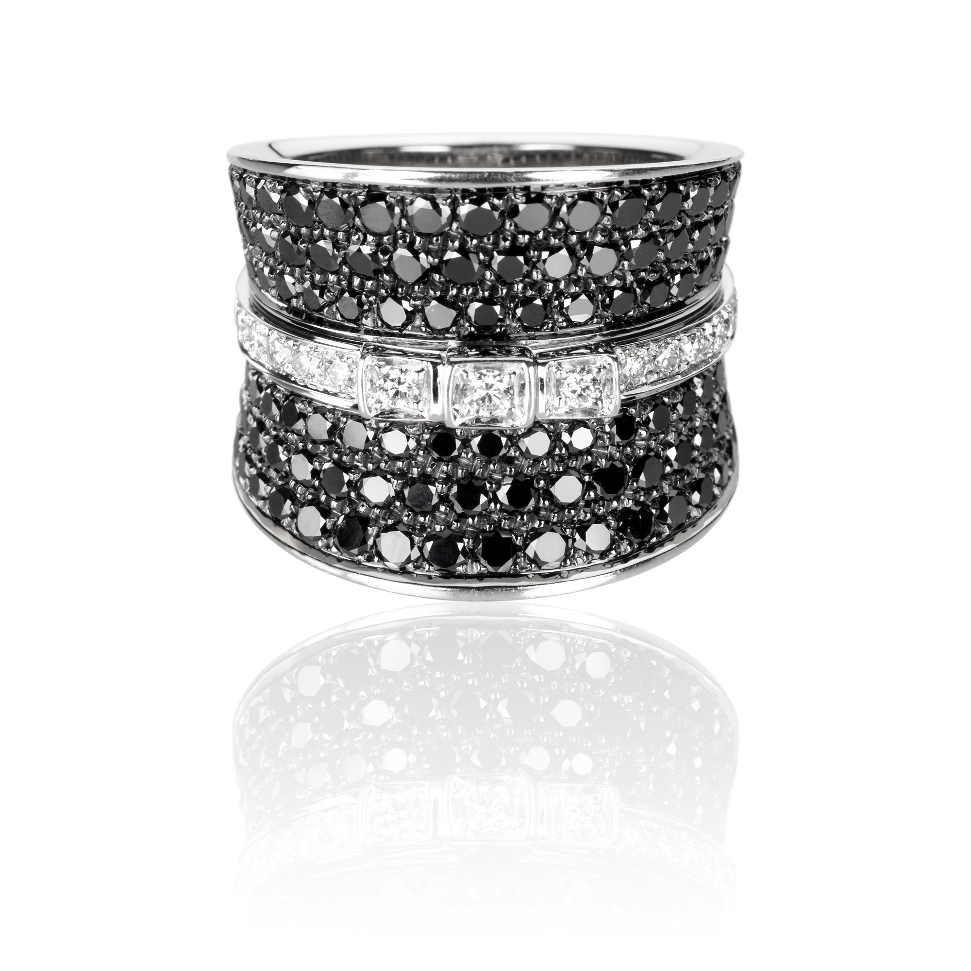 La bague Smoking Girl rappelle le corset d’antan, les diamants gris et blanc confèrent un aspect distingué et féminin à cette bague. Cette pièce habille véritablement le doigt et s’intègre comme un classique de la garde robe. La Smoking Girl est une pièce phare de la collection qui a été créée dès les prémices d’IO&ES. Ce modèle existe également en édition spéciale à l’occasion des 5 ans de la marque, les Smoking Girl Gold : en or jaune serties de diamants blanc et son alter-égo avec des diamants brown, allant du jaune or au brun intense.