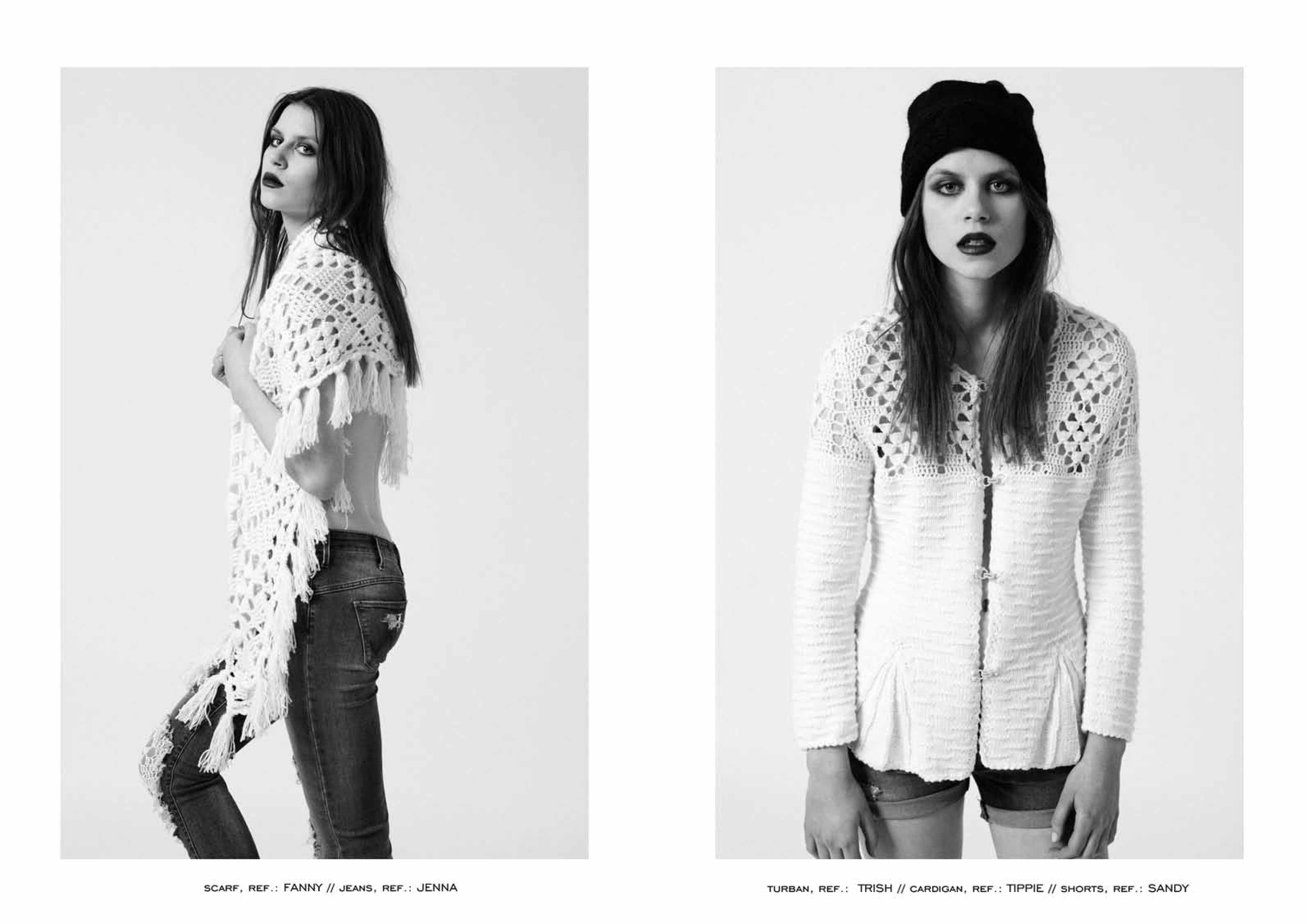 Le thème de la collection s’adresse à la femme grunge et romantique. Travaillant sur des jeans slim et skinny, un short en jeans et une veste en jeans mais aussi des mailles, pulls, gilets, jupes, robes. Les deux modèles phares seront le jeans Jenna et la veste Sienna. Micheala Buerger a créé des ruptures sur les jeans pour leurs donner un effet grunge, crochetant des fils de laine en toile d’araignée par dessous comme pour créer un jeans raccommodé. Le côté romantique de la démarche donne un effet rock et western à la fois.